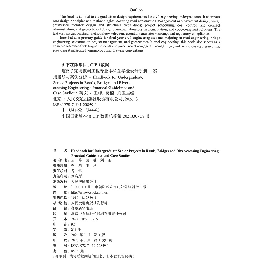 书名:Handbook for Undergraduate Senior Projects in Roads, Bridges and River-crossing Engineering:Practical Guidelines and Case Studies