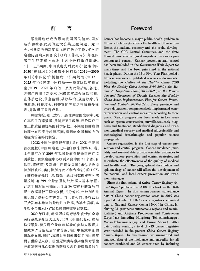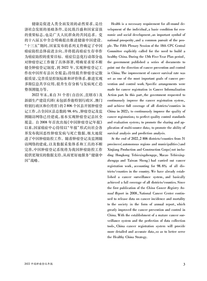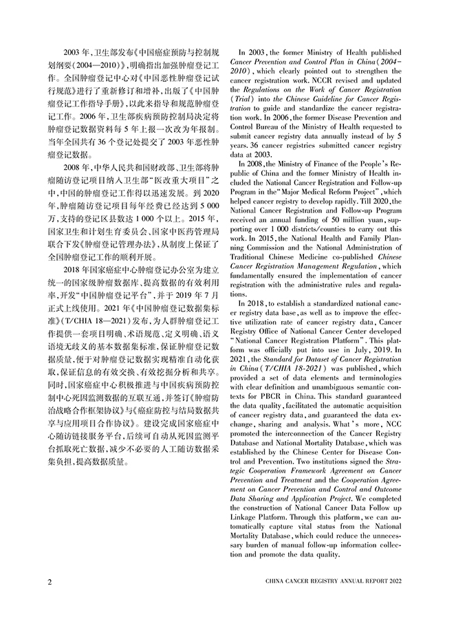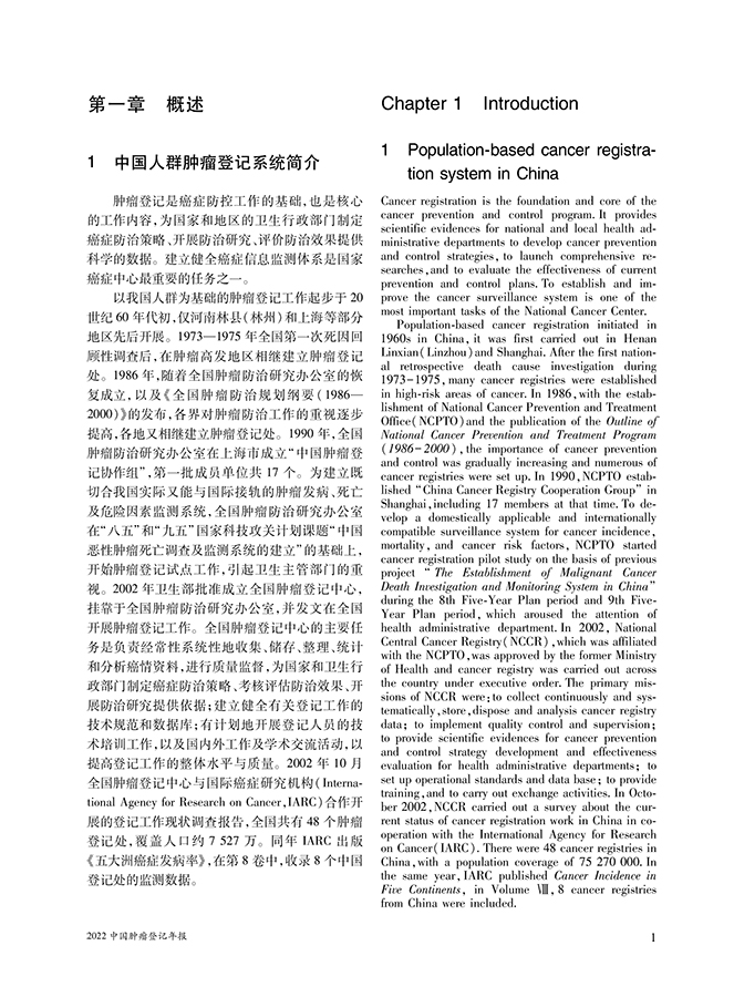 2022中国肿瘤登记年报 汉英对照 赫捷 魏文强主编 包括我国肿瘤登记的历史与发展 肿瘤登记建设规划 肿瘤登记年报数据覆盖地区等