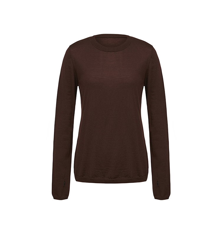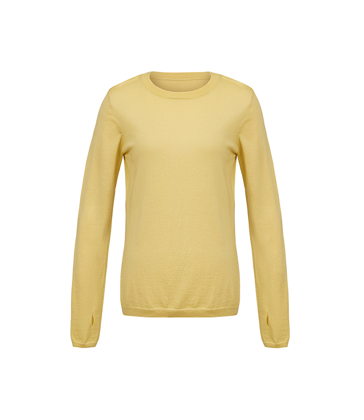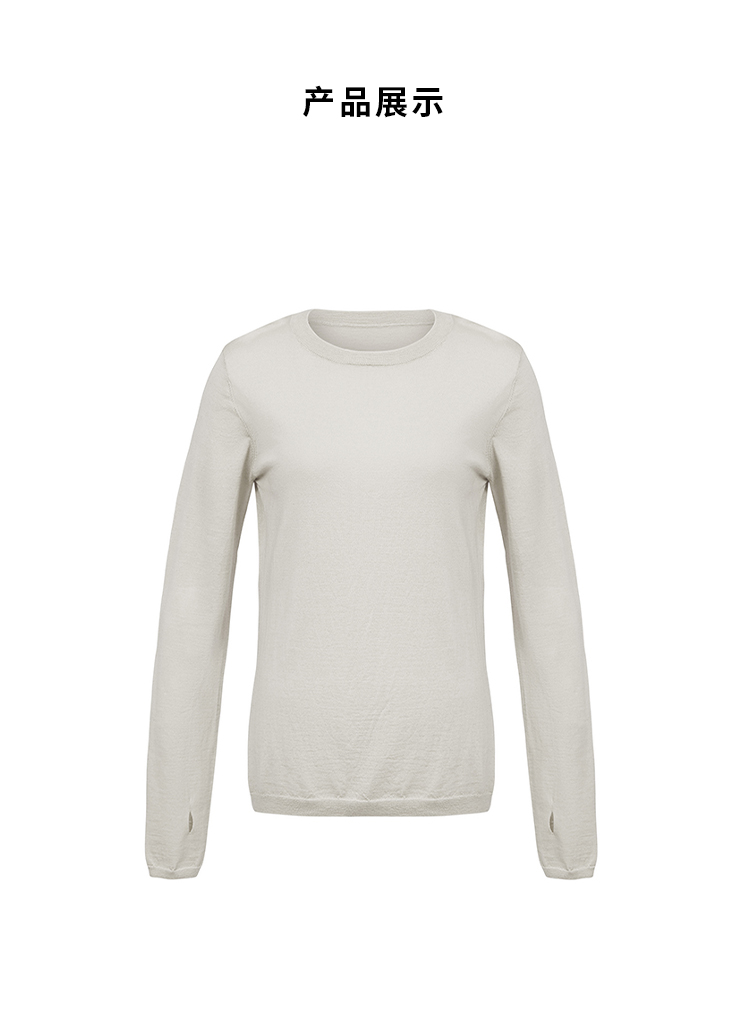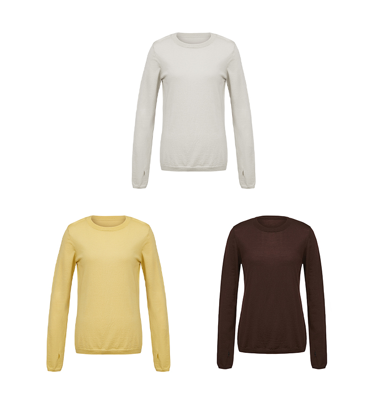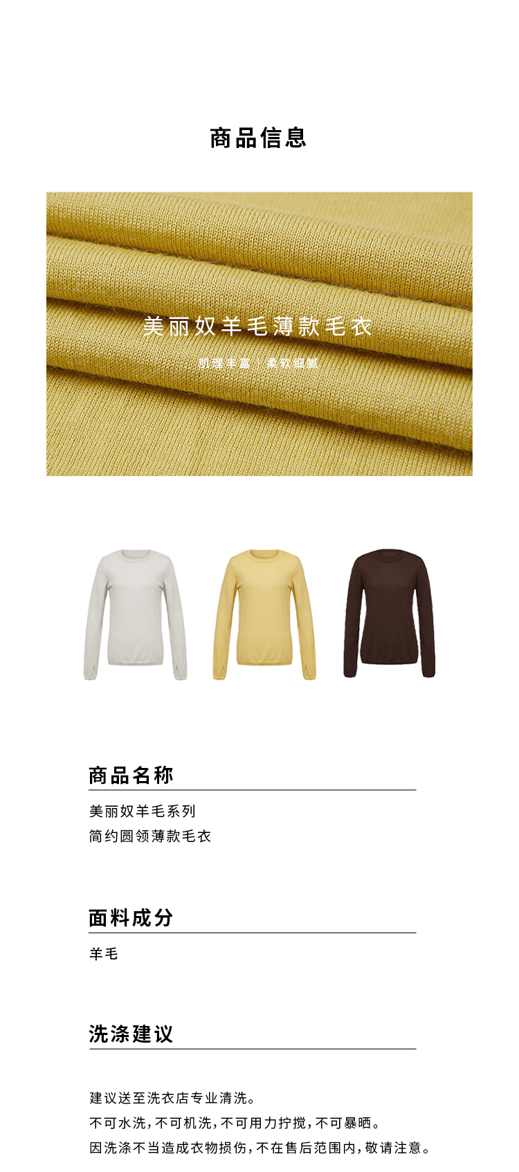 HIDEMI 美丽奴羊毛系列简约圆领薄款毛衣 鹅蛋黄/深棕色/灰白色