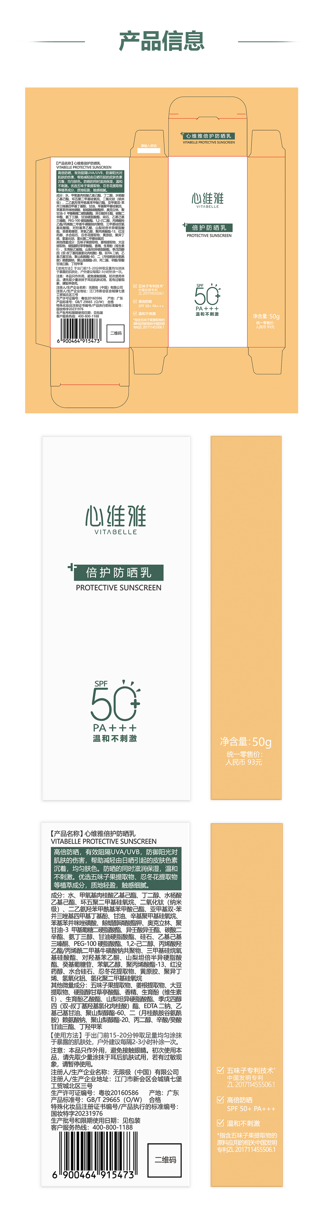 【预售 急单慎拍】无限极心维雅倍护防晒乳SPF50+PA+++ 50g 原价93元