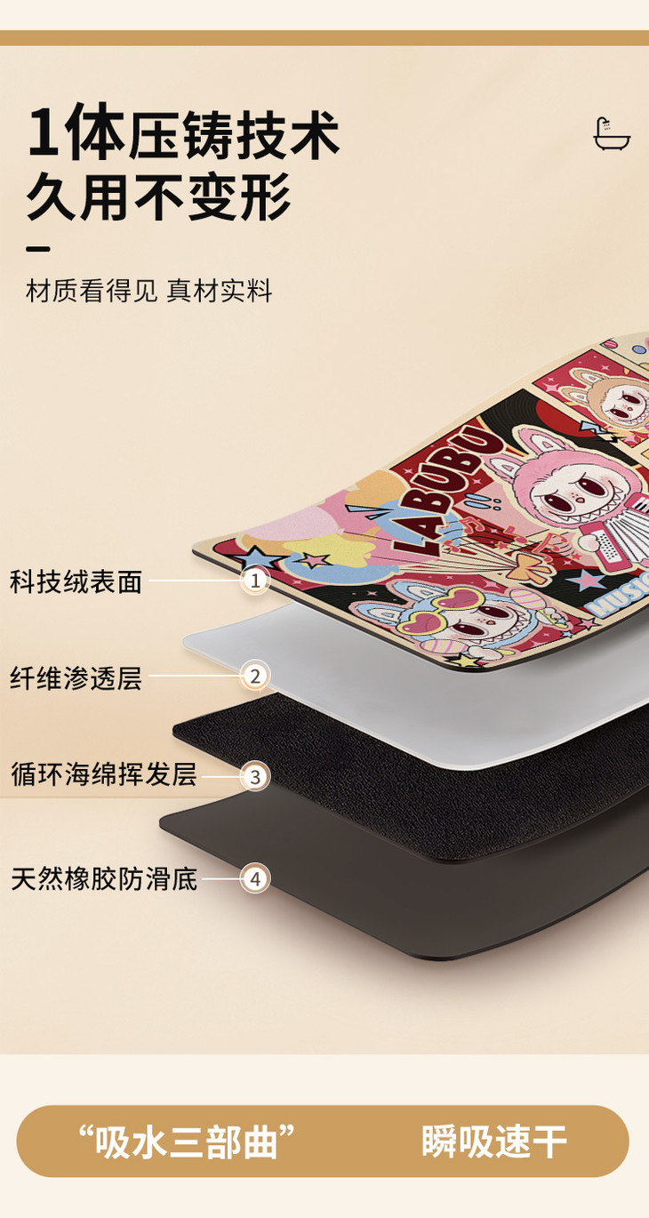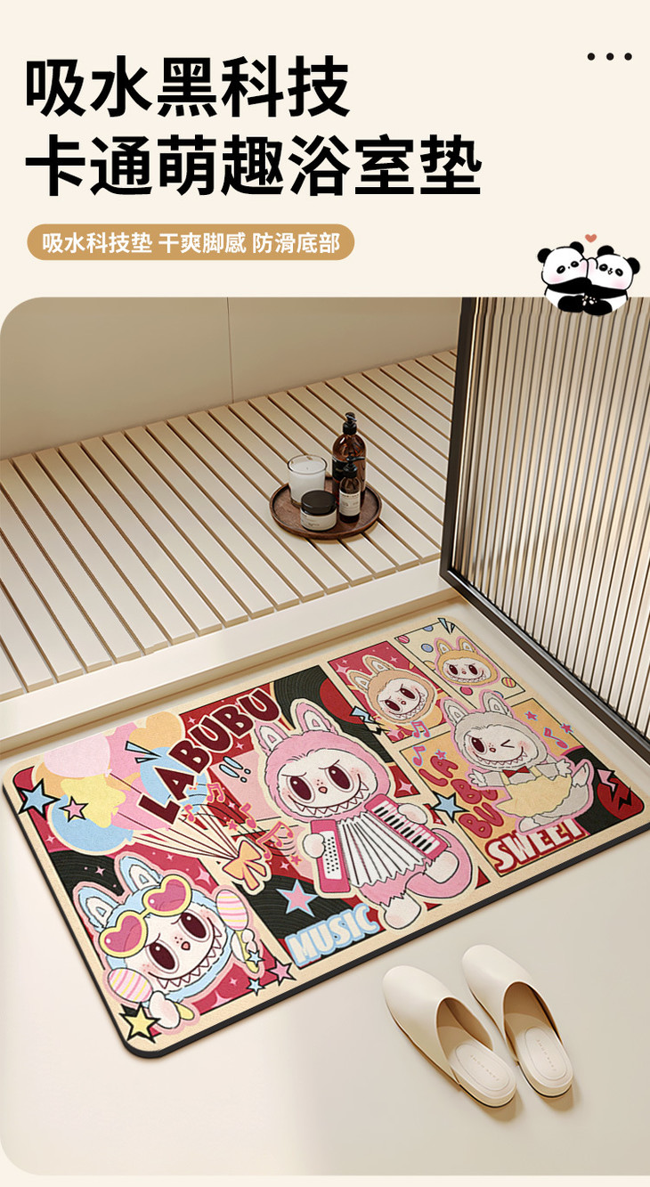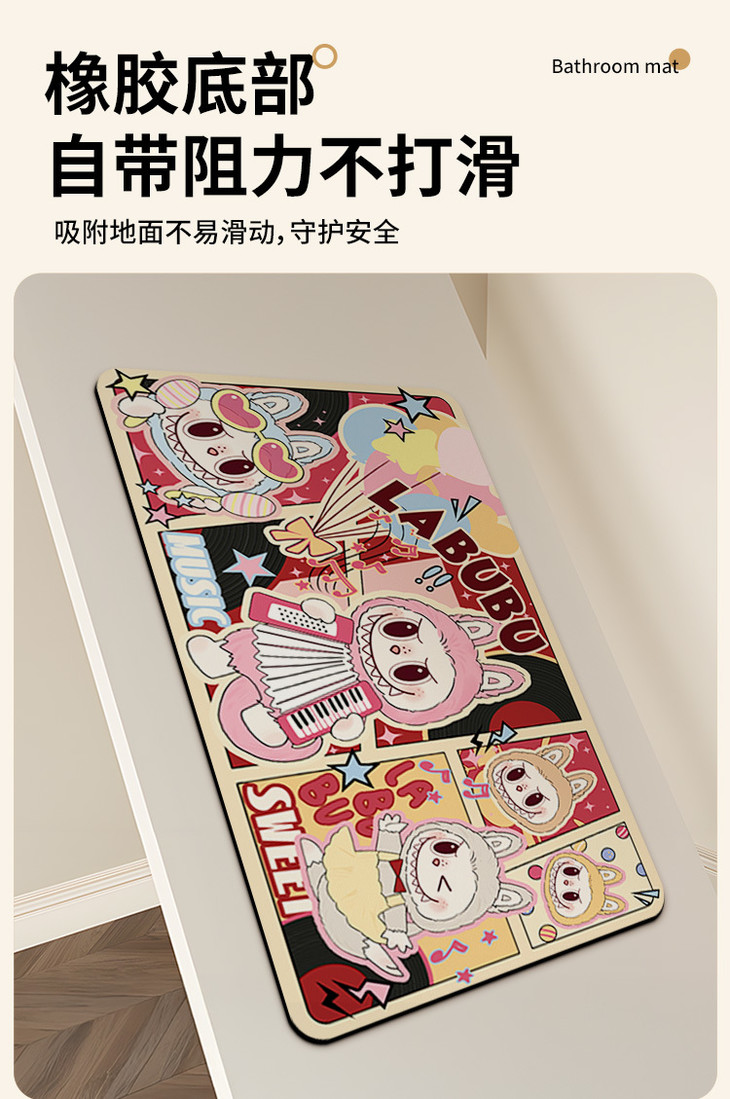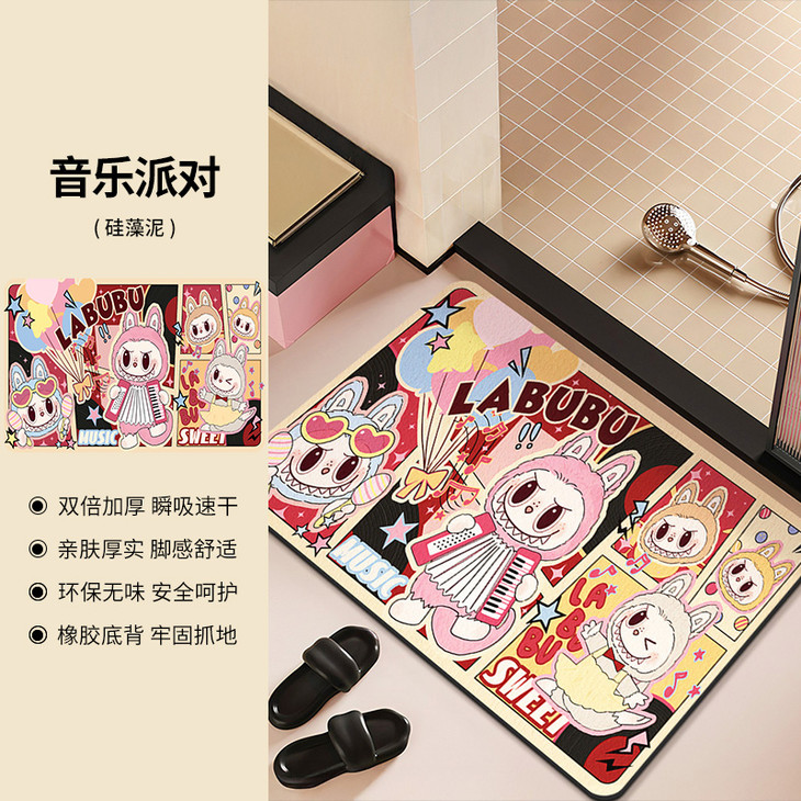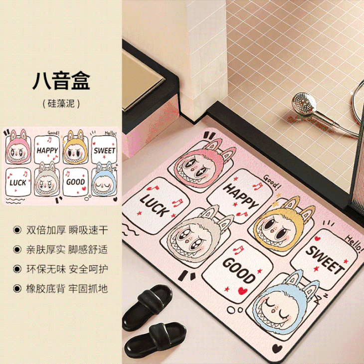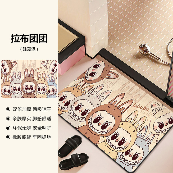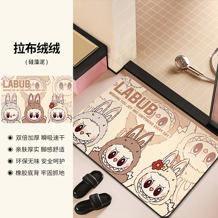 ✅ 垚森之家神还原软萌Labubu造型,颜色饱满持久,可爱暴击每一天!🎉 ✅ 升级加固橡胶防滑底,浴室湿滑?玄关进击?统统稳如磐石,守护安全每一步!🌷 ✅ 科技速干芯:高密度硅藻泥快速吸水,科技绒面一秒导湿,懒人清洁福音!🍀 缤纷色彩随心选,每天看到TA,嘴角自动上扬~活力满满,快乐速递到家!❄️