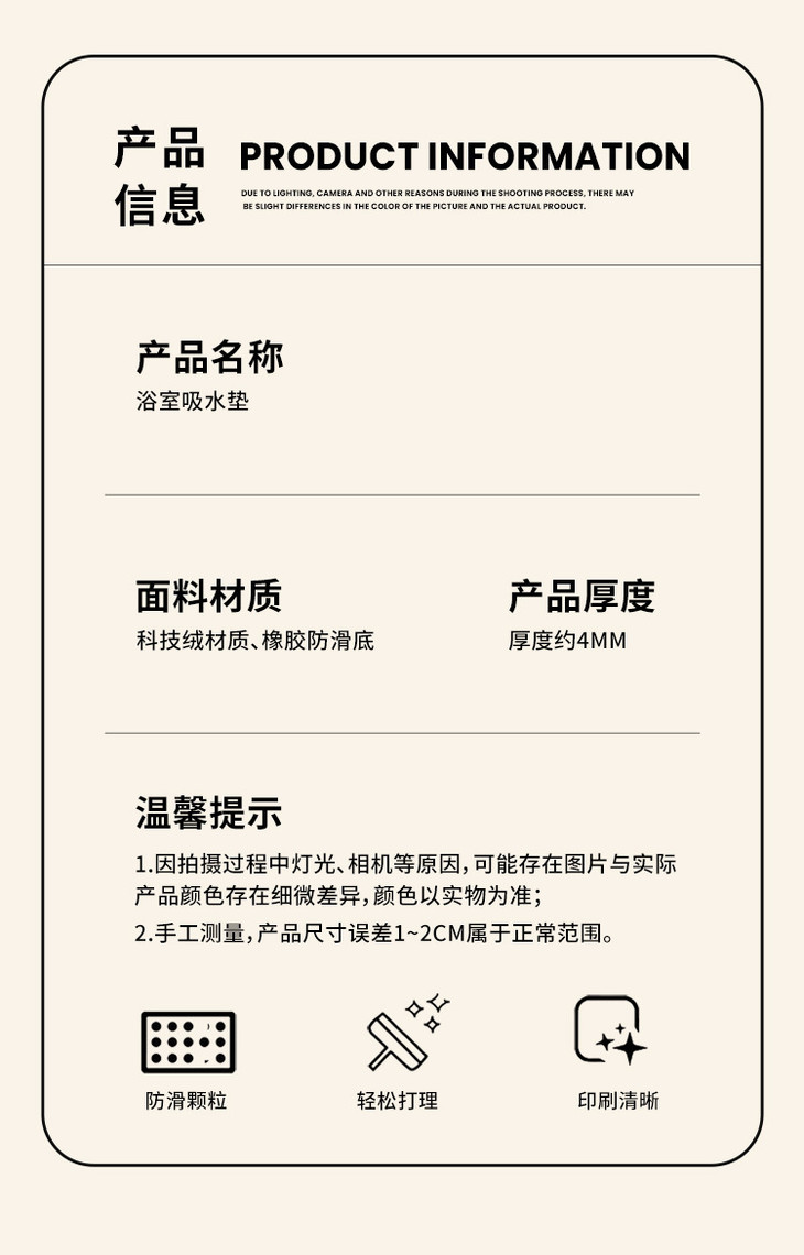 ⭐️「踩塌水渍嚣张气焰!」4MM加厚核弹专治不服! ✅ 「4MM暴力加厚」 → 卷边实拍见真章!是普通地垫 2倍厚度(对比图直接怼)🌷 → 紧实高弹内芯:反复踩踏不变形√ 卷边自动复原√ ✅ 「安全细节控必入」 激光精裁边缘 → 光脚狂奔不刮皮💗