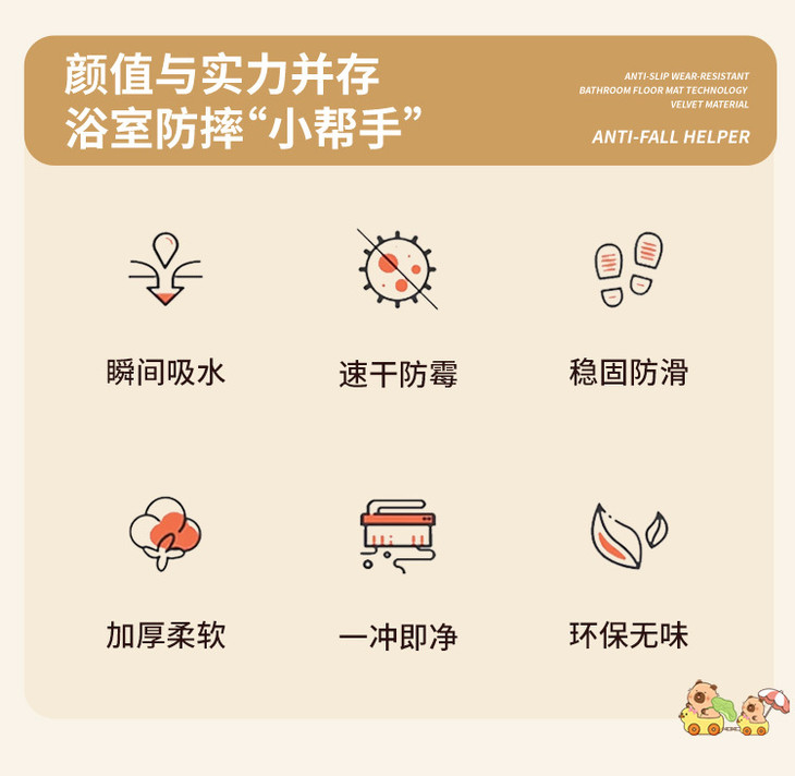 「浴室死亡三连终结者」 ❶ 湿脚出浴滑旱冰 → ✘ ❷ 地垫积水养蘑菇 → ✘ ❸ 丑垫拉垮装修格调 → ✘ 懒人快乐公式 =(吸水+防滑+速干)² × 日抛级清洁体验🌈 ☑ 清水一冲=焕然如新|☑ 0伺候不矫情