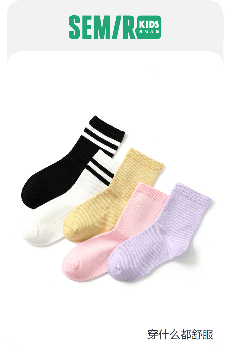 森马童装儿童袜子年新款男童女童舒适基础日常百搭长袜5双装