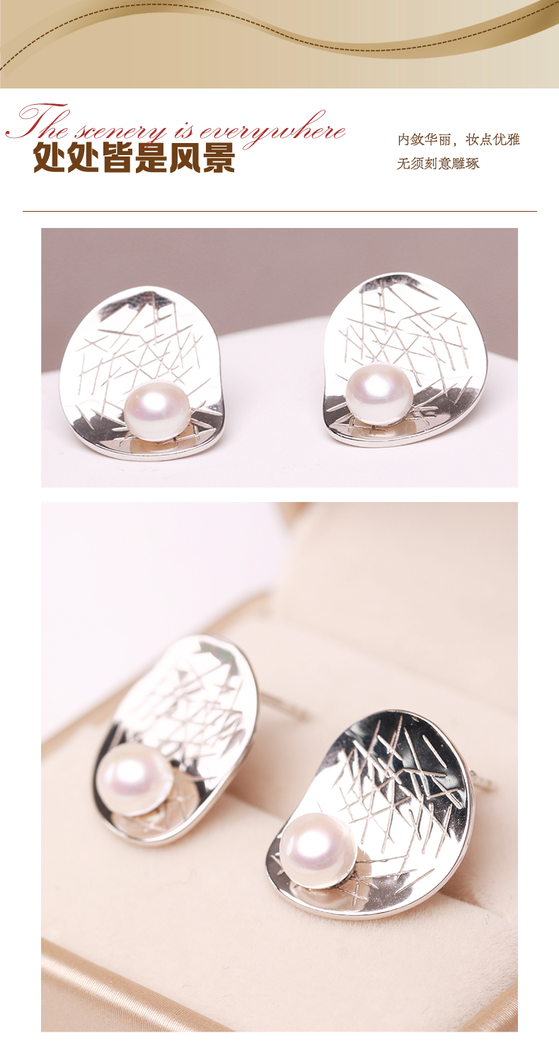 美裕 银925淡水珍珠耳钉5-6mm白 107892