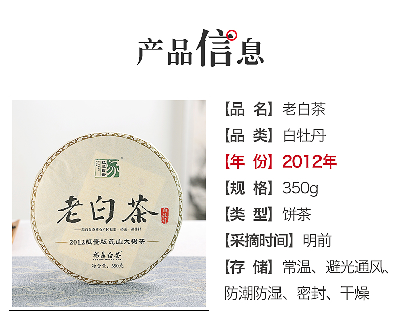 家天下丨 2012年 限量荒山大树老白茶 350g