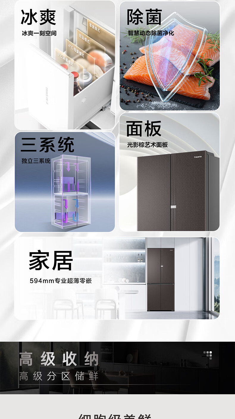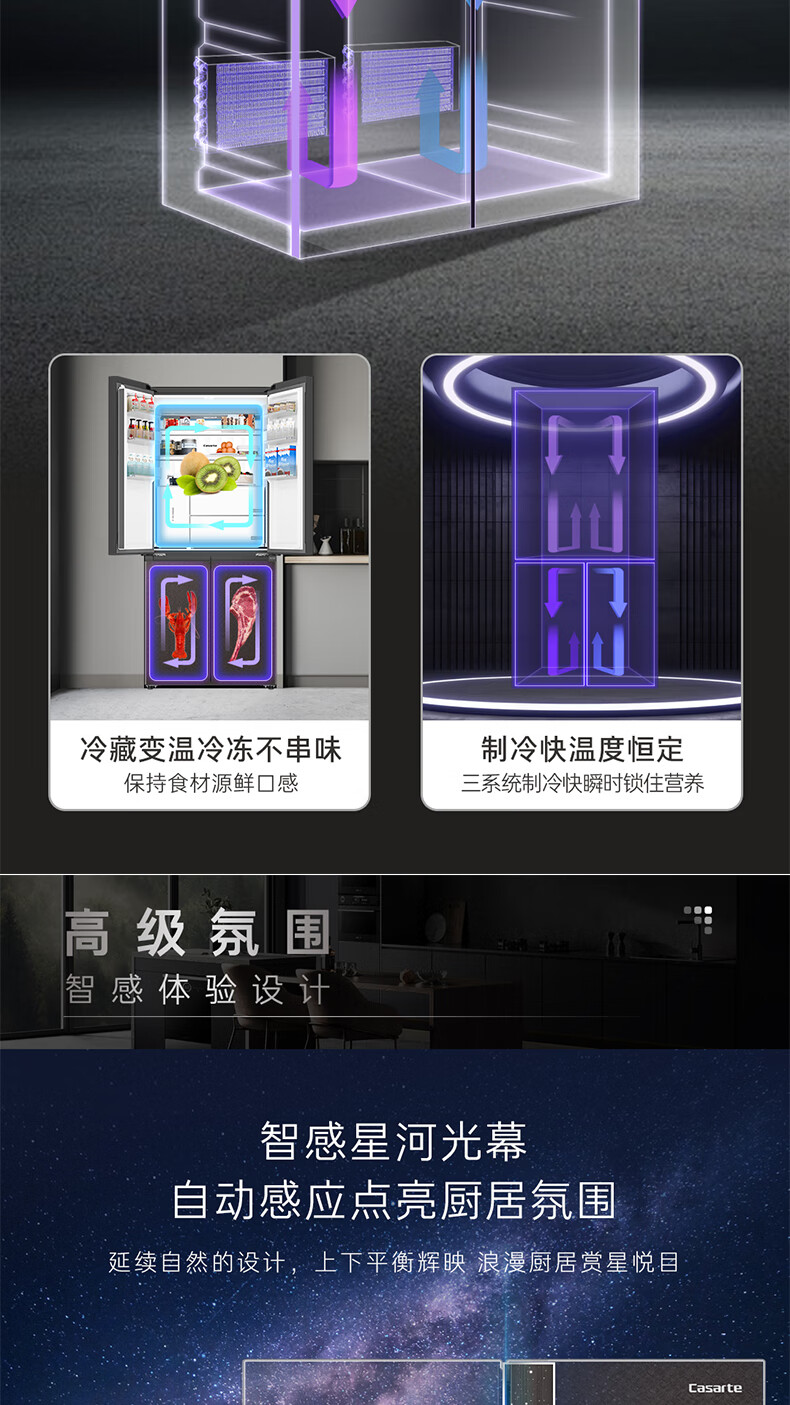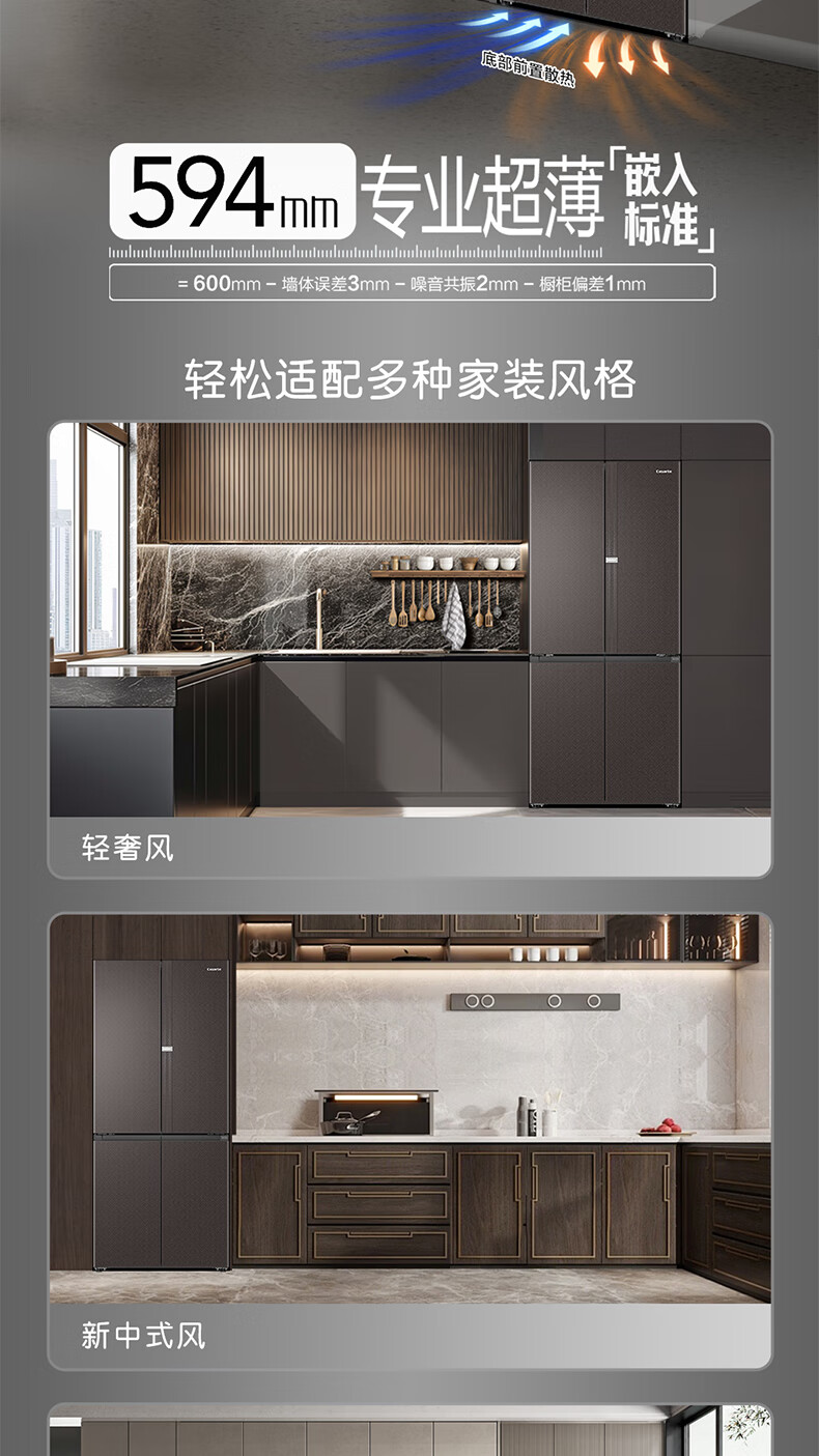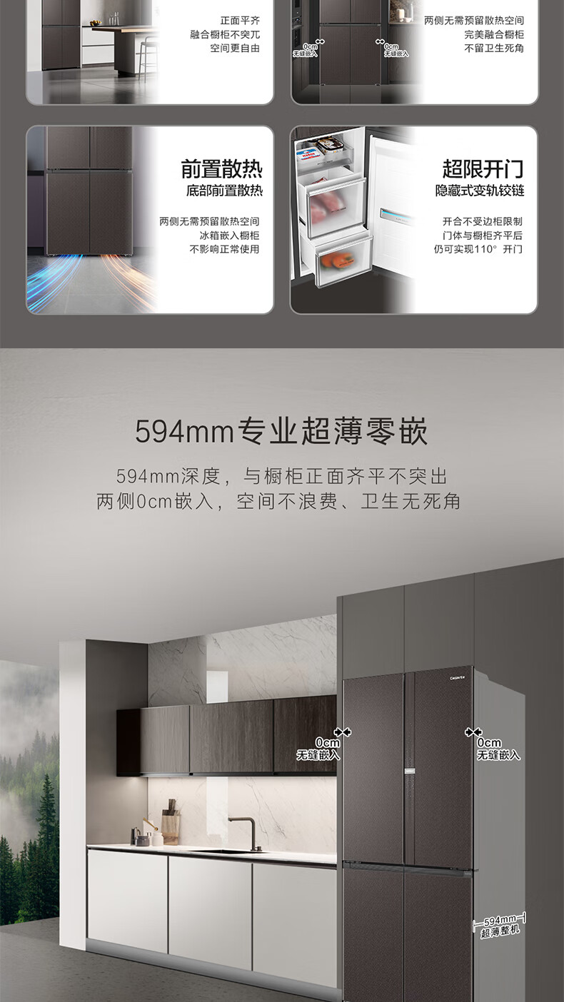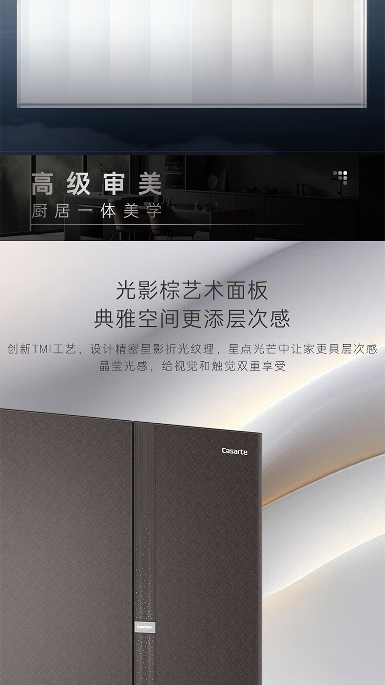 卡萨帝540升冰箱594mm超薄零嵌入式三系统十字对开门一级能效 高分智感系列+540升BCD-540WGCTDMGZHU1棕