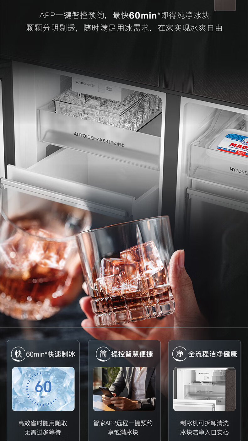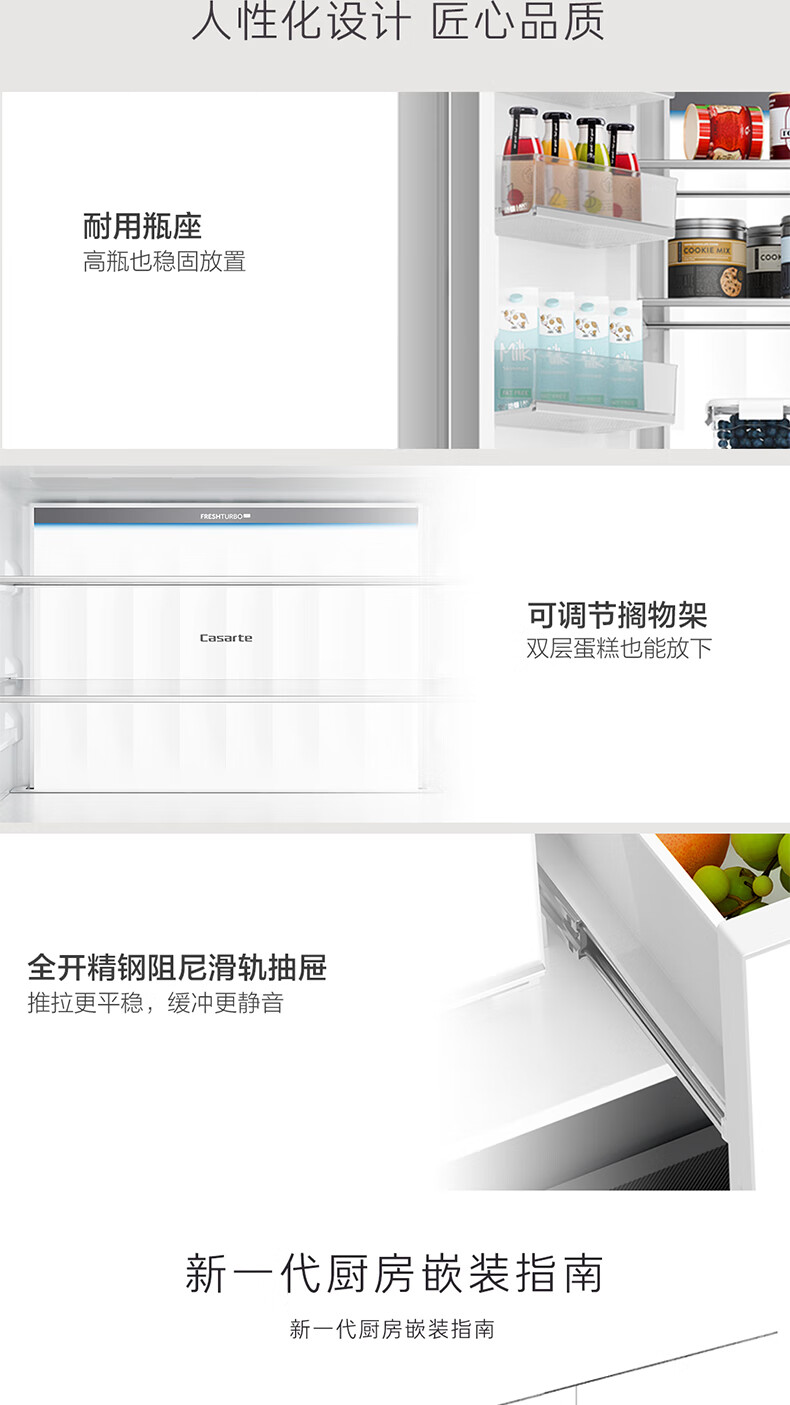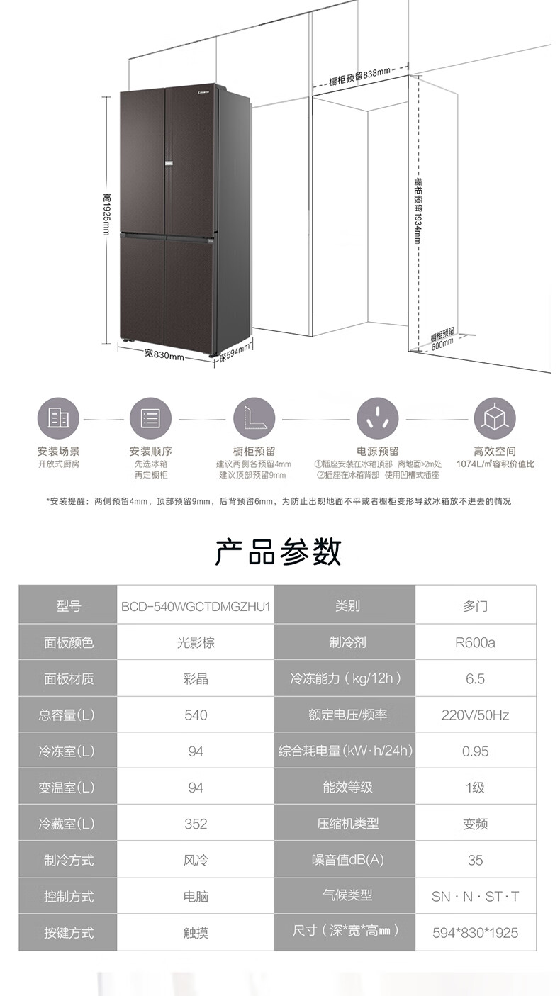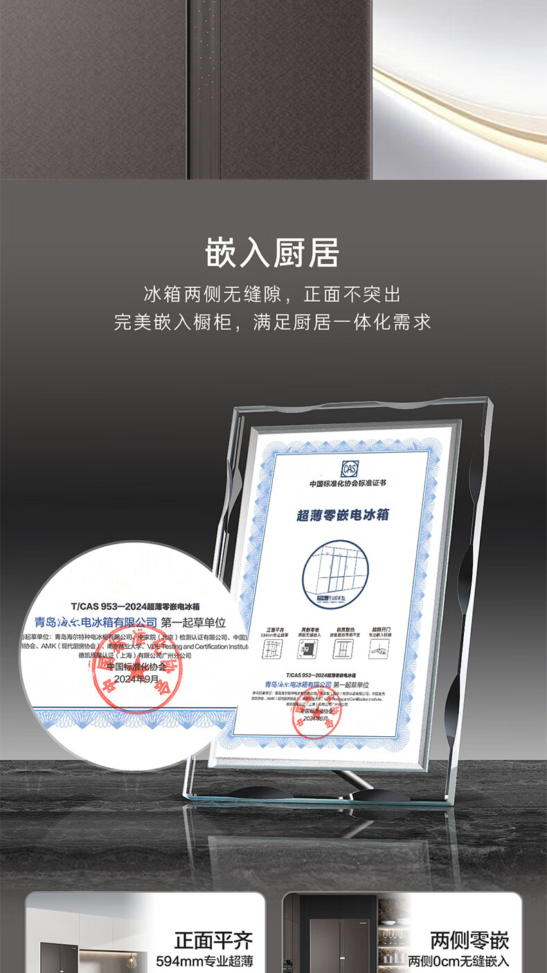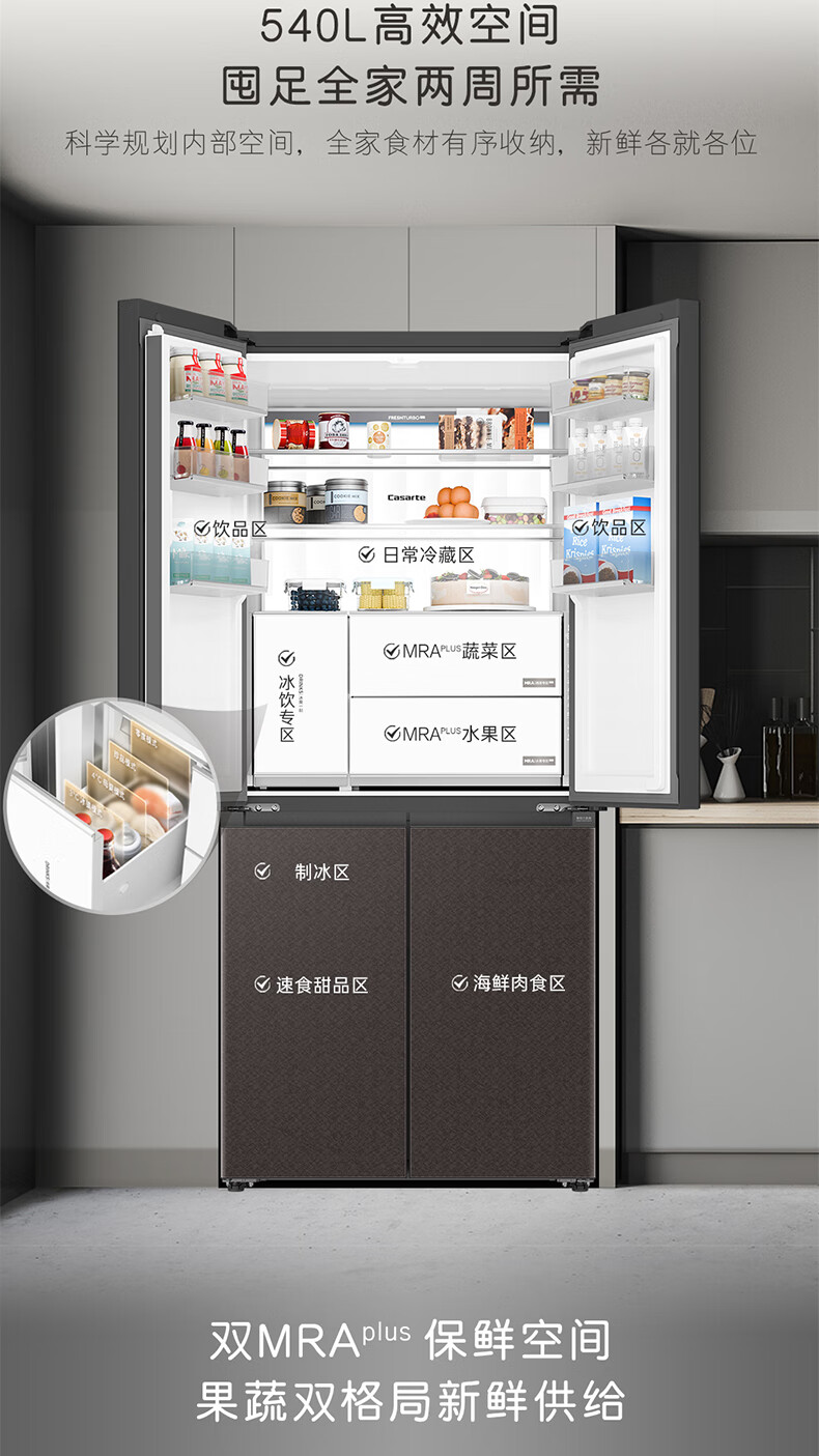 卡萨帝540升冰箱594mm超薄零嵌入式三系统十字对开门一级能效 高分智感系列+540升BCD-540WGCTDMGZHU1棕