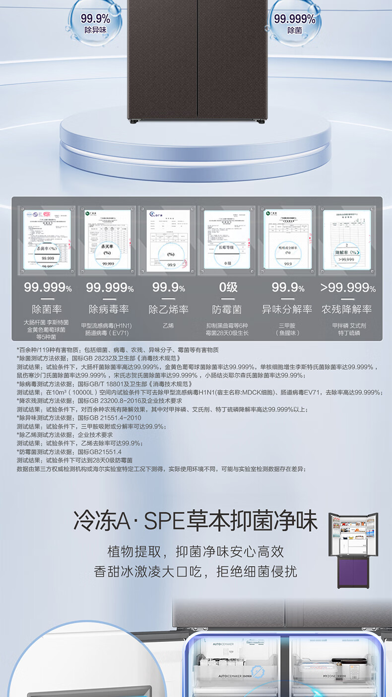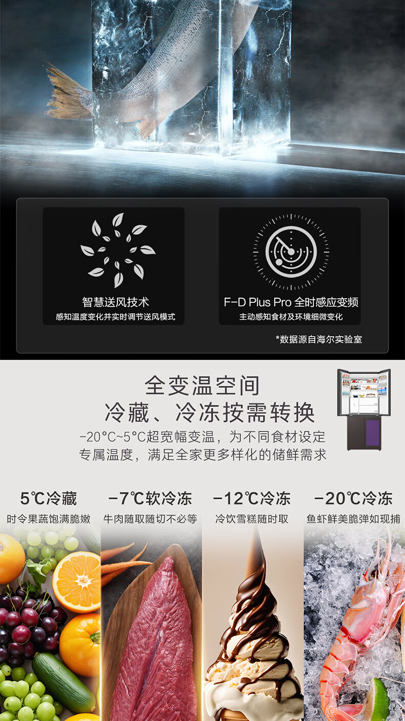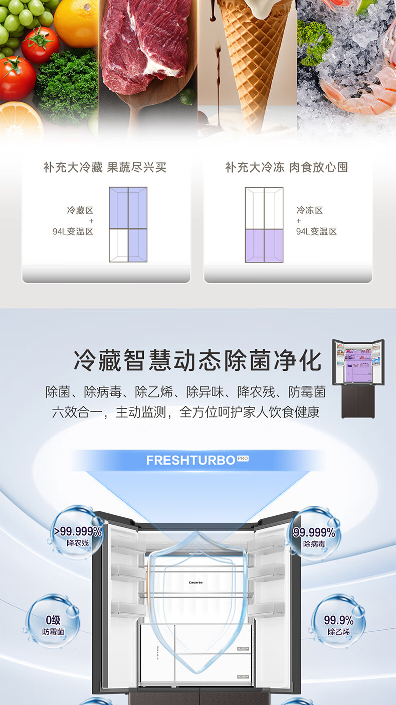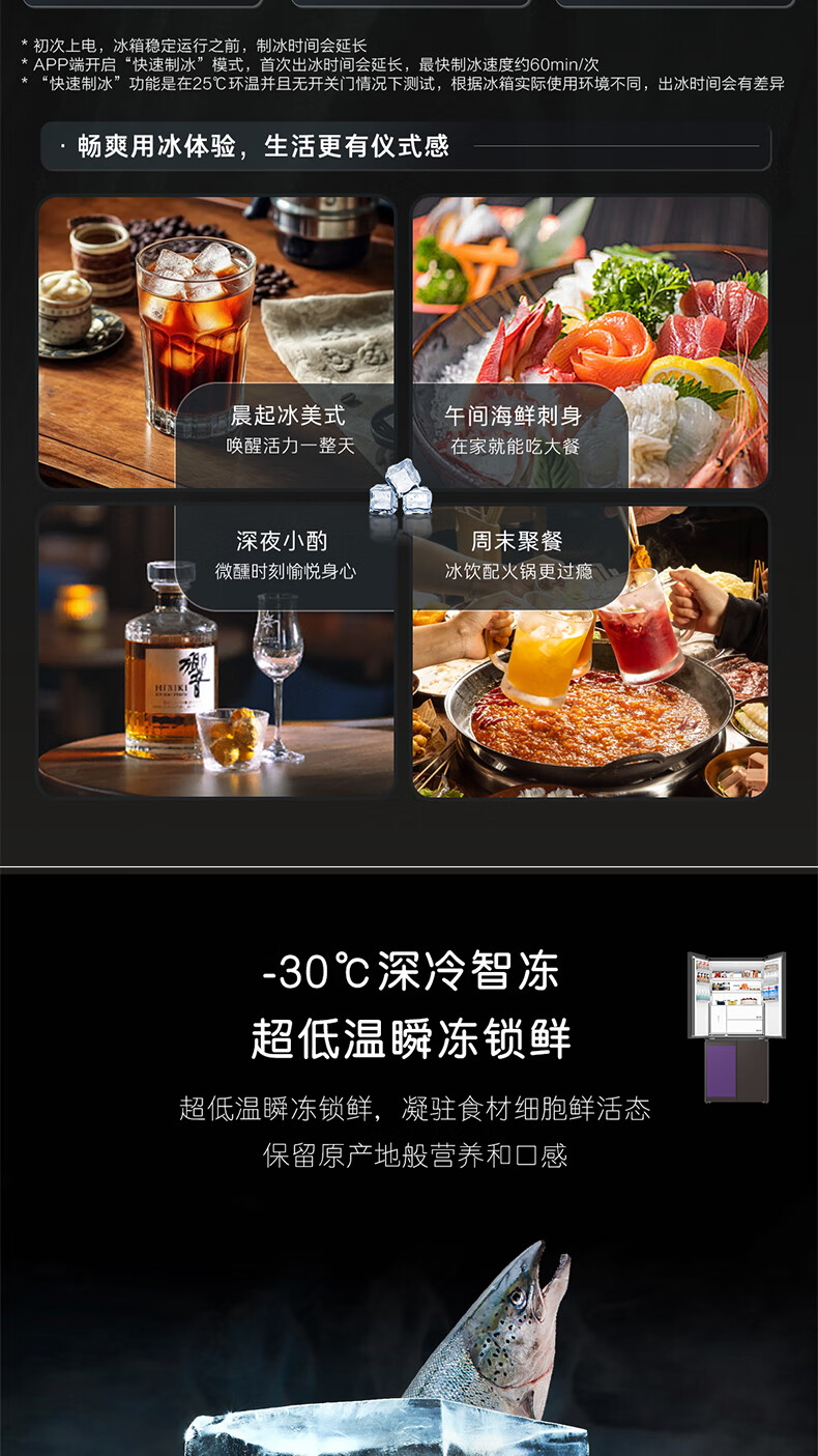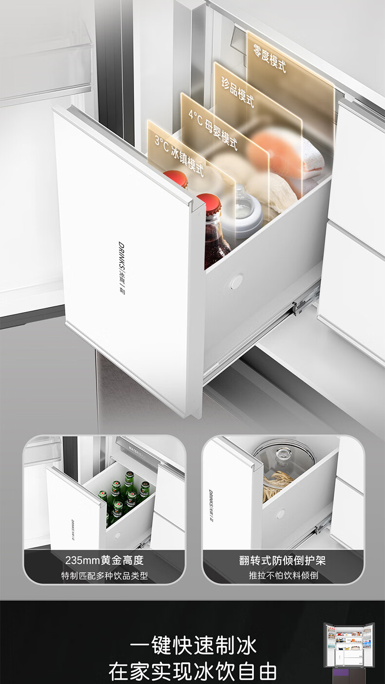 卡萨帝540升冰箱594mm超薄零嵌入式三系统十字对开门一级能效 高分智感系列+540升BCD-540WGCTDMGZHU1棕