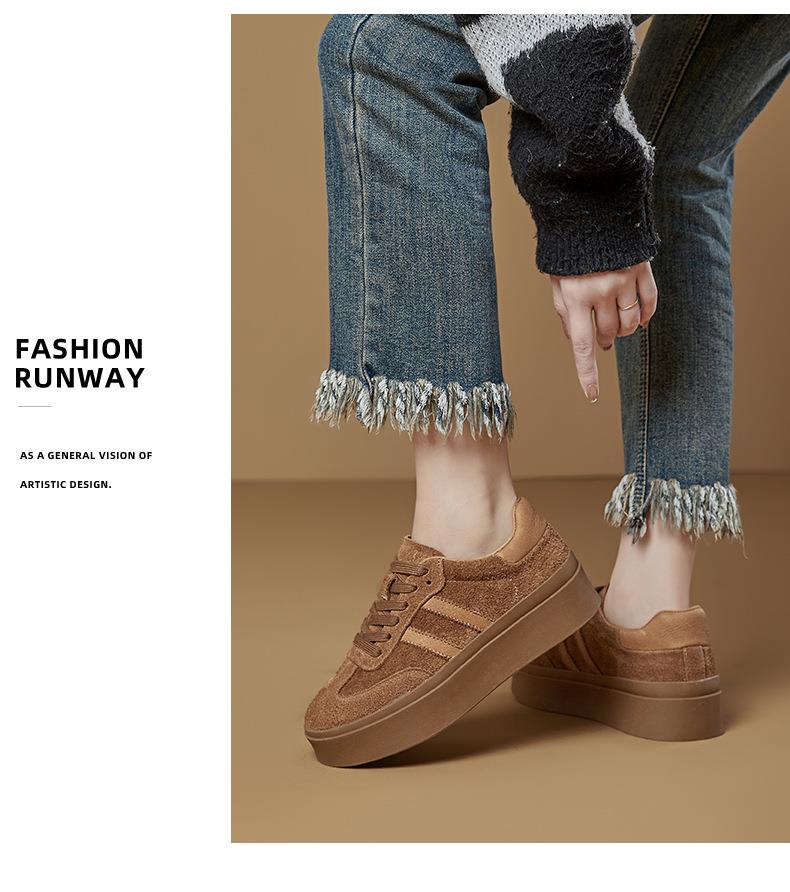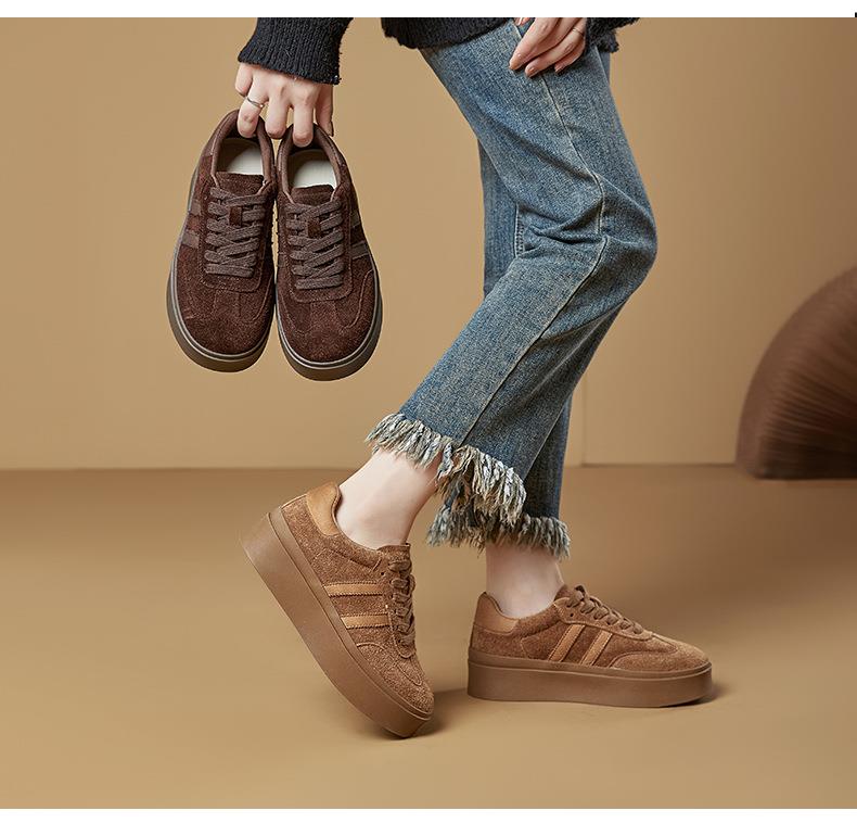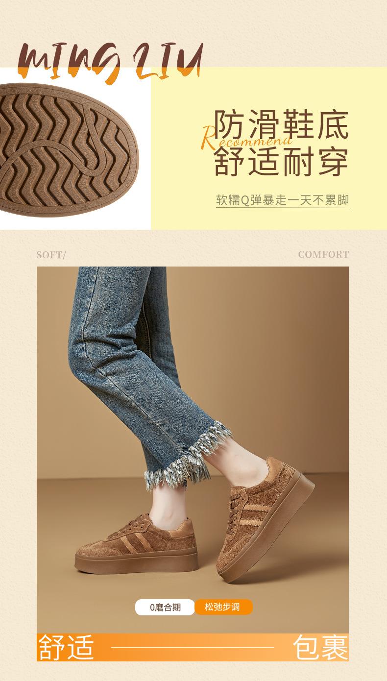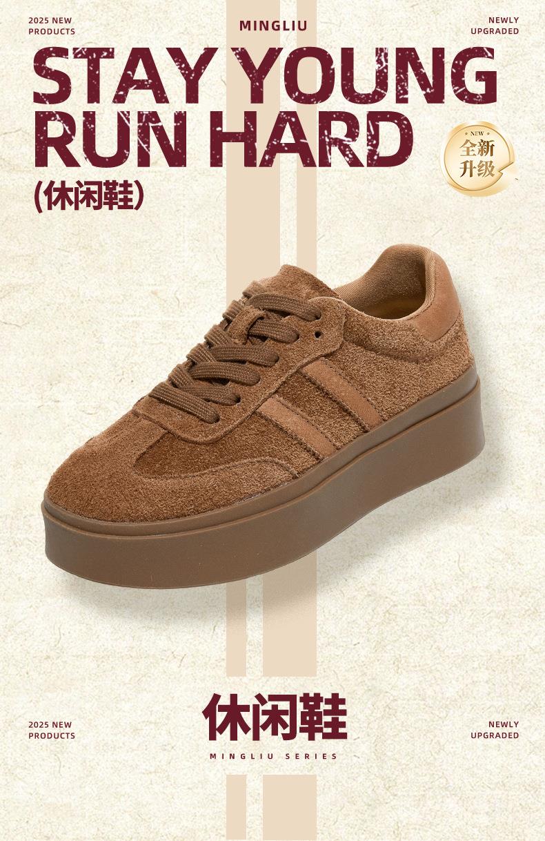 头层牛皮乌拉草猪皮鞋垫德训鞋2026春季新款休闲阿甘鞋厚底运动鞋