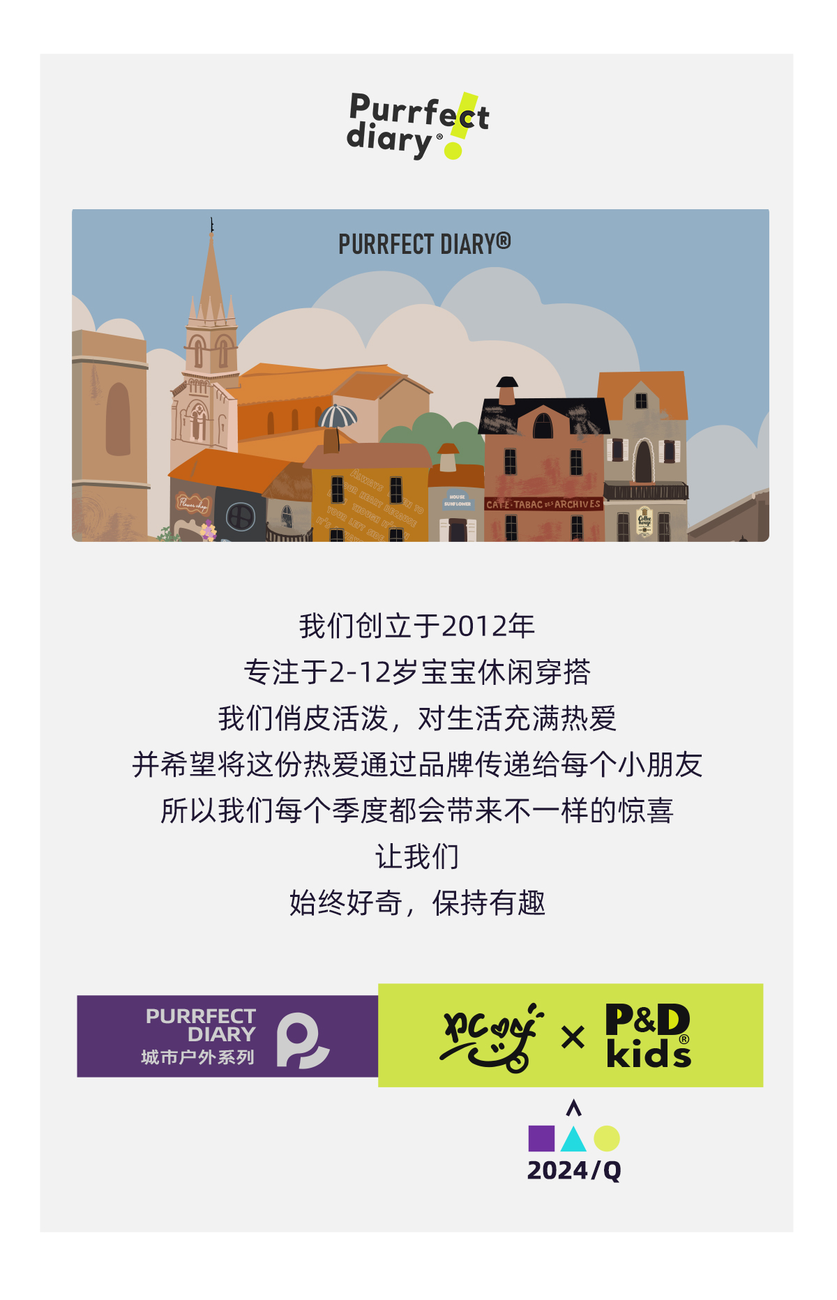 - Purrfect-Diary专注于贴近自然随性的穿着概念,轻奢平价的童装文化传播,在产品设计上更加注重婴童穿着的舒适性、安全性、更出众的国际化品牌,将欧美的育婴文化在中国进行深入的传播与推广。