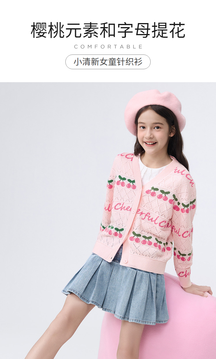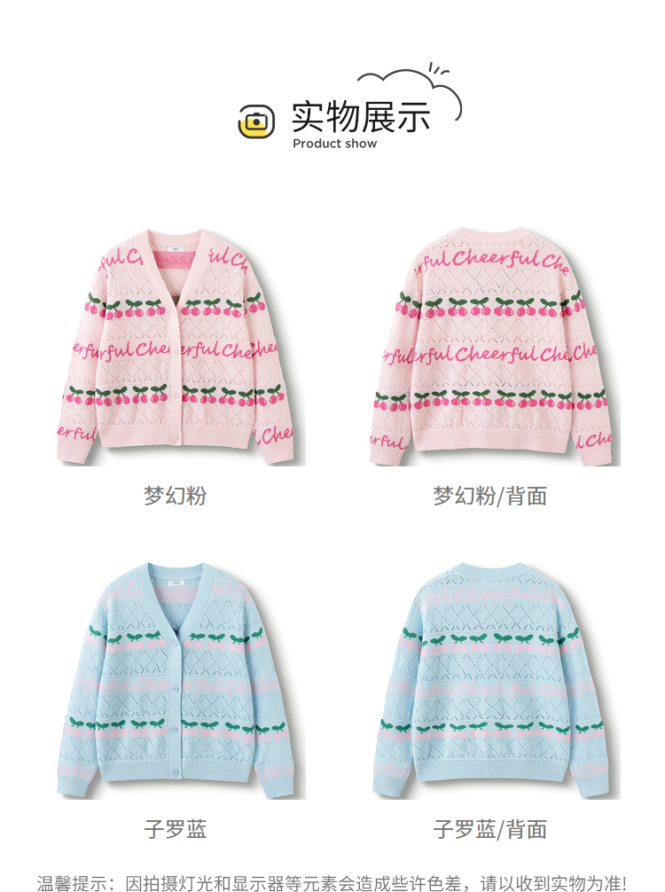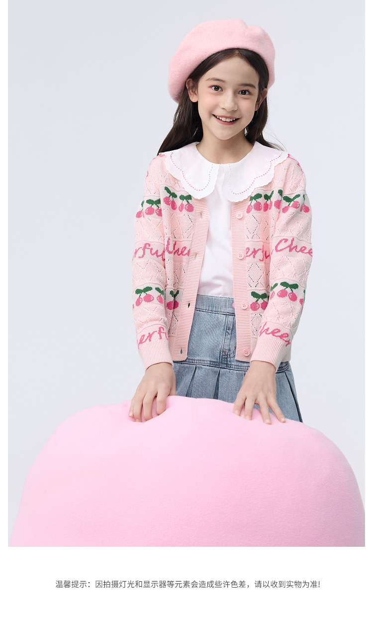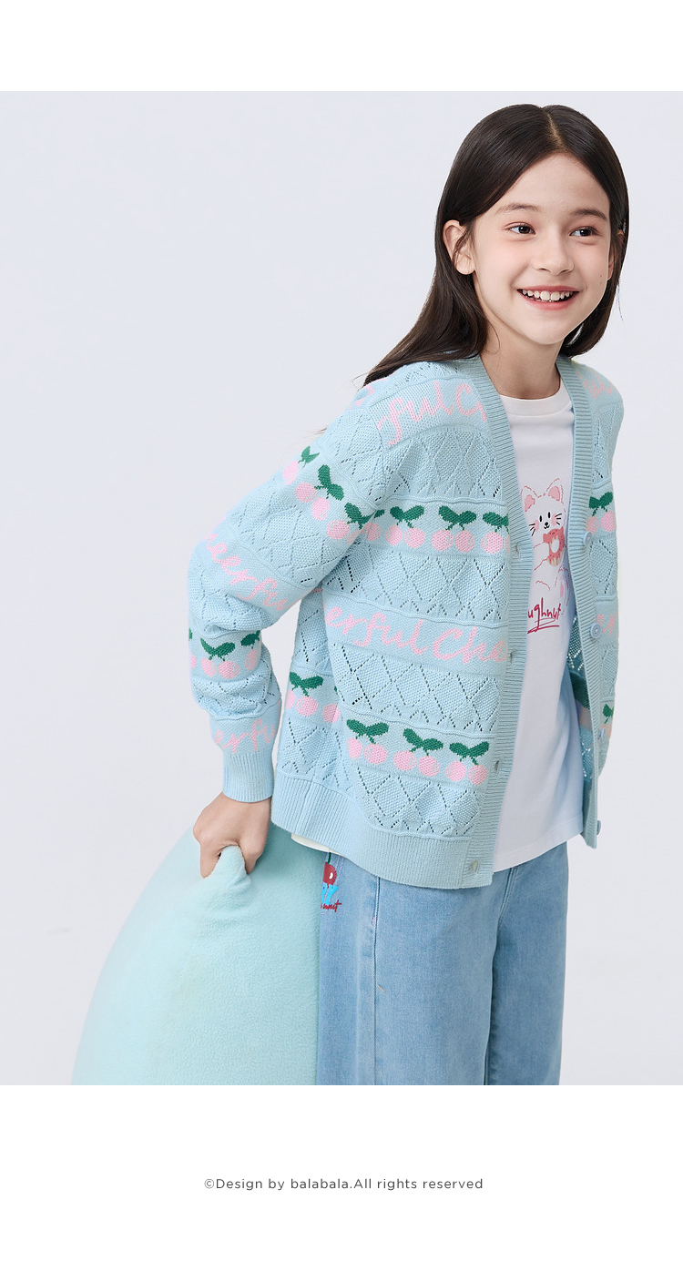 巴拉巴拉女童毛衣儿童针织衫新款春装中大童开衫甜美樱桃时尚
