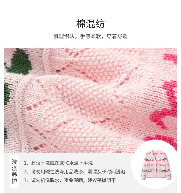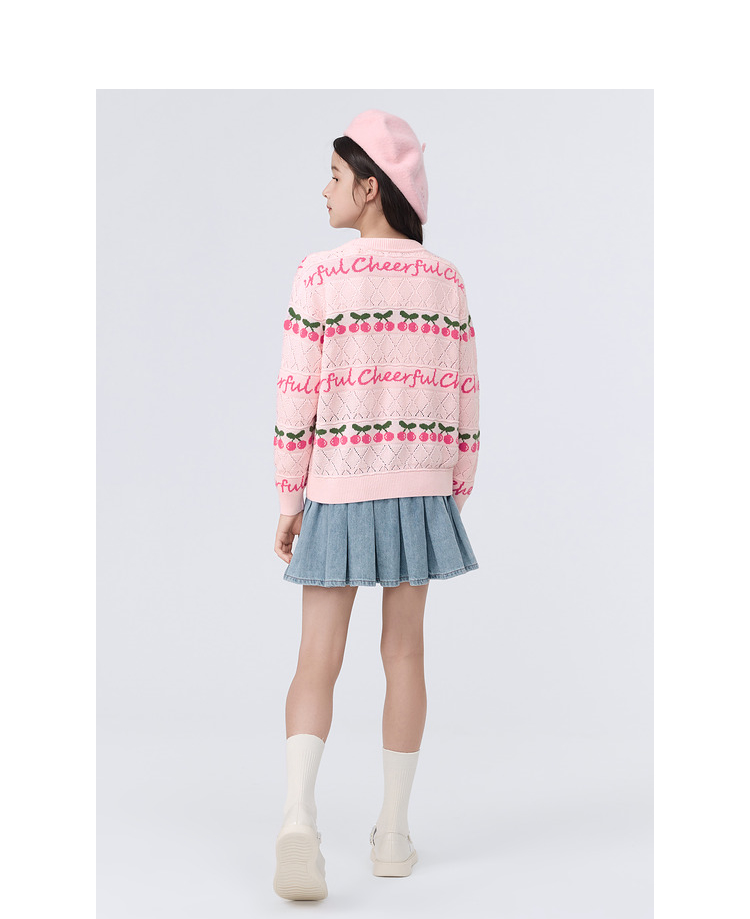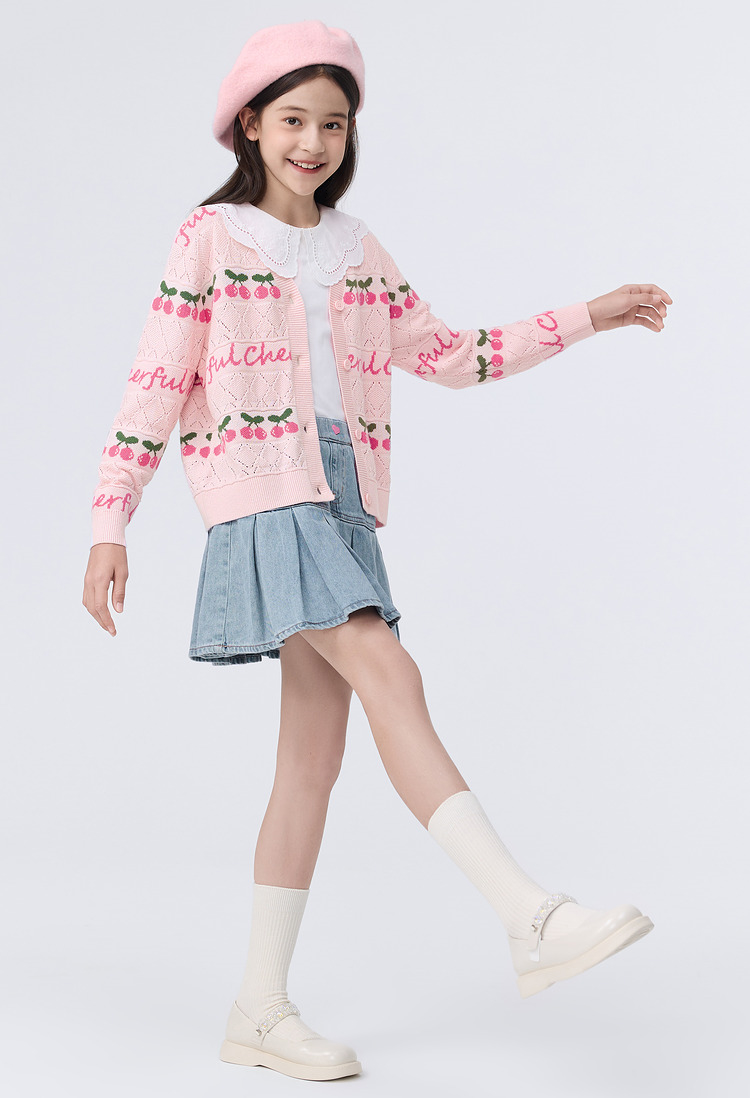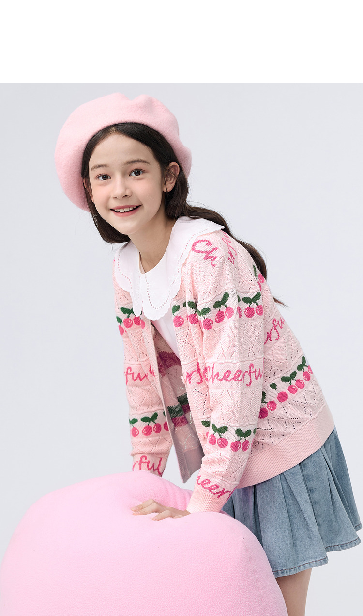巴拉巴拉女童毛衣儿童针织衫新款春装中大童开衫甜美樱桃时尚