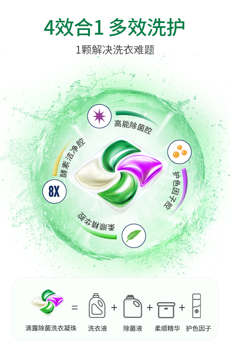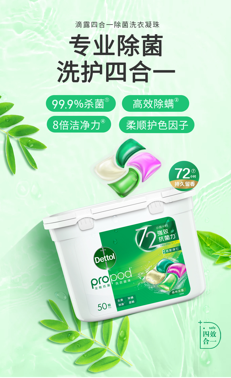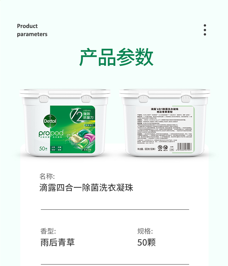 滴露洗衣物除菌柔顺清洁四合一清新雨后青草味洗衣凝珠50颗