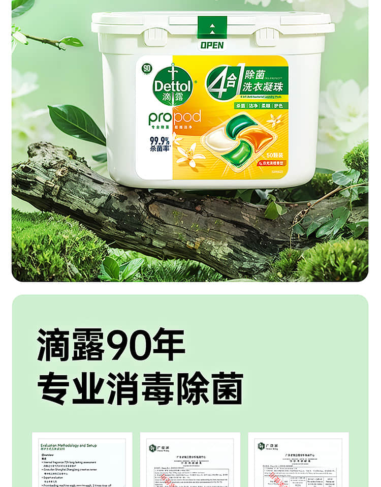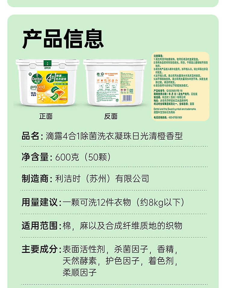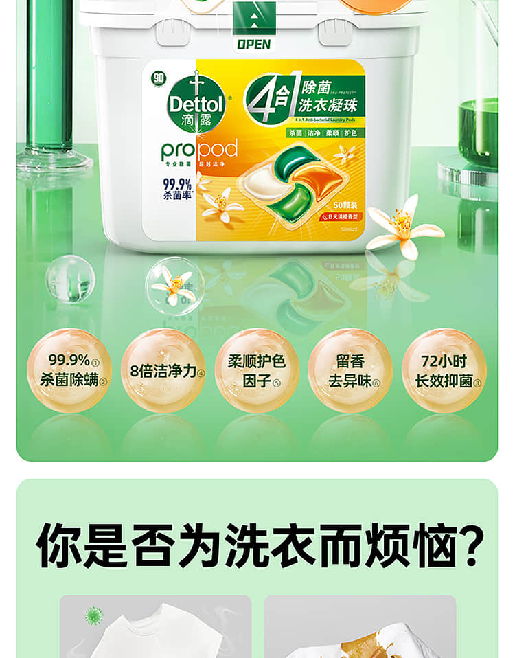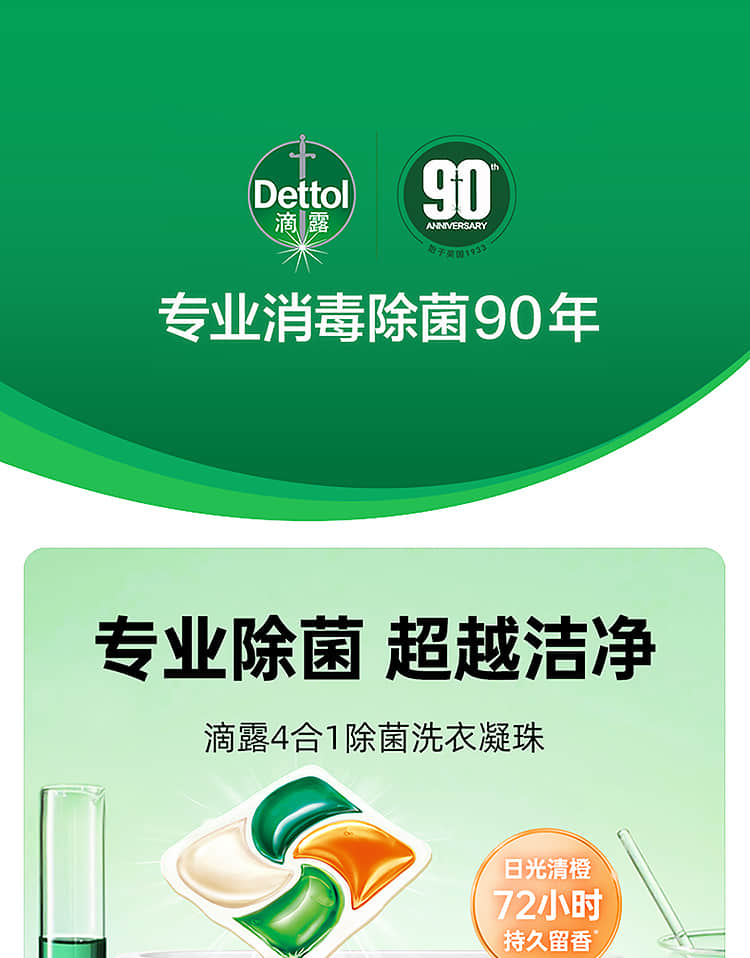 【滴露】4合1除菌洗衣凝珠日光清橙香型50颗