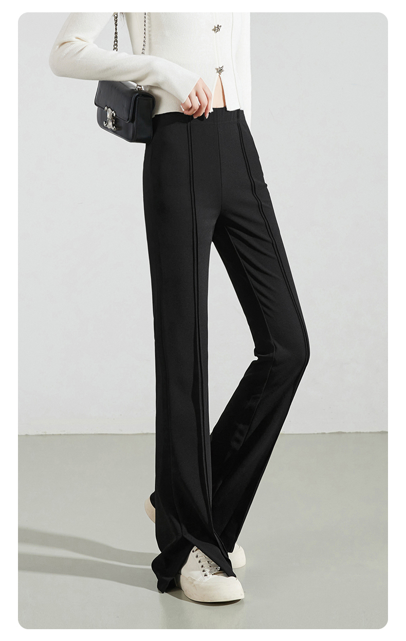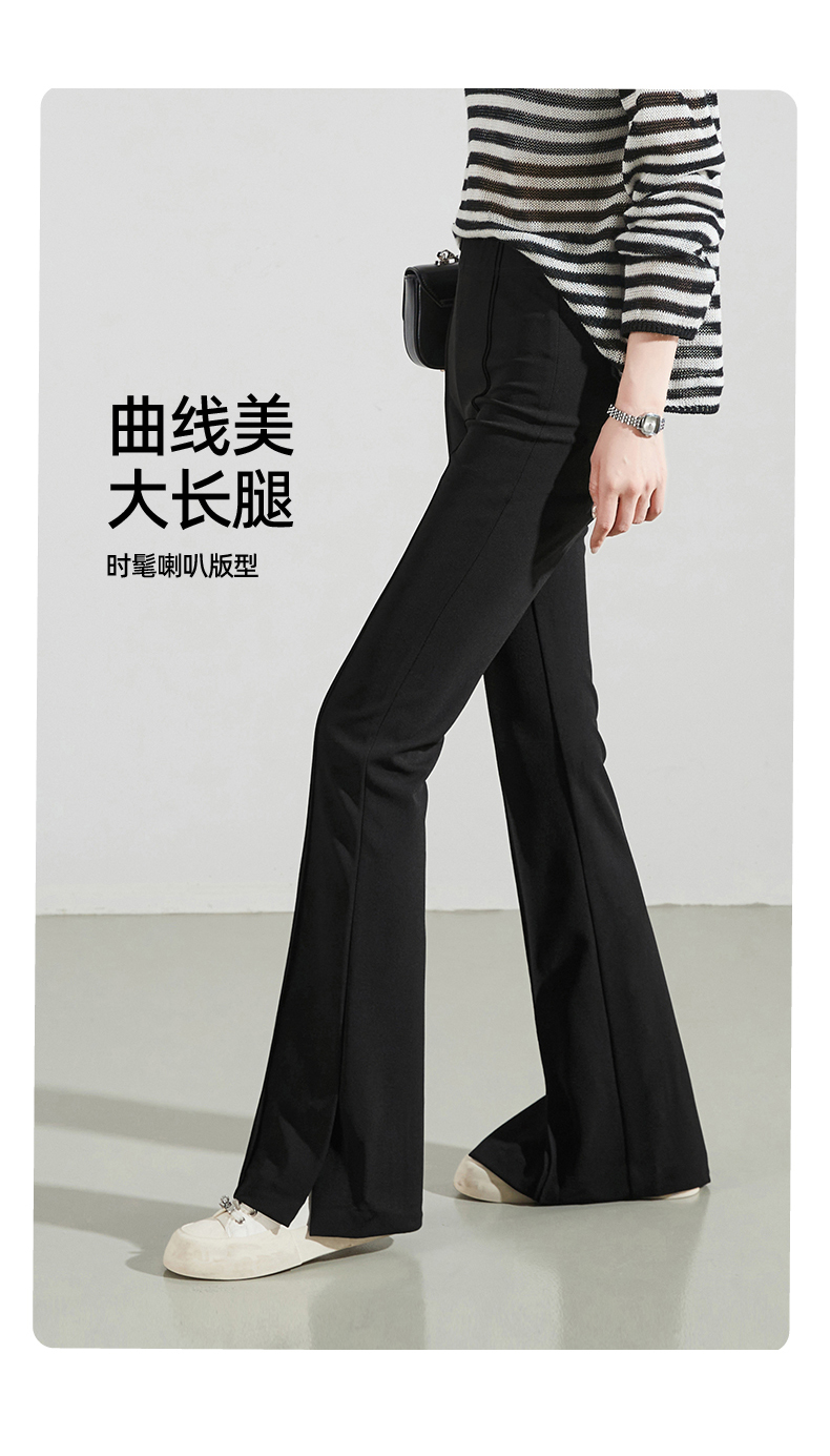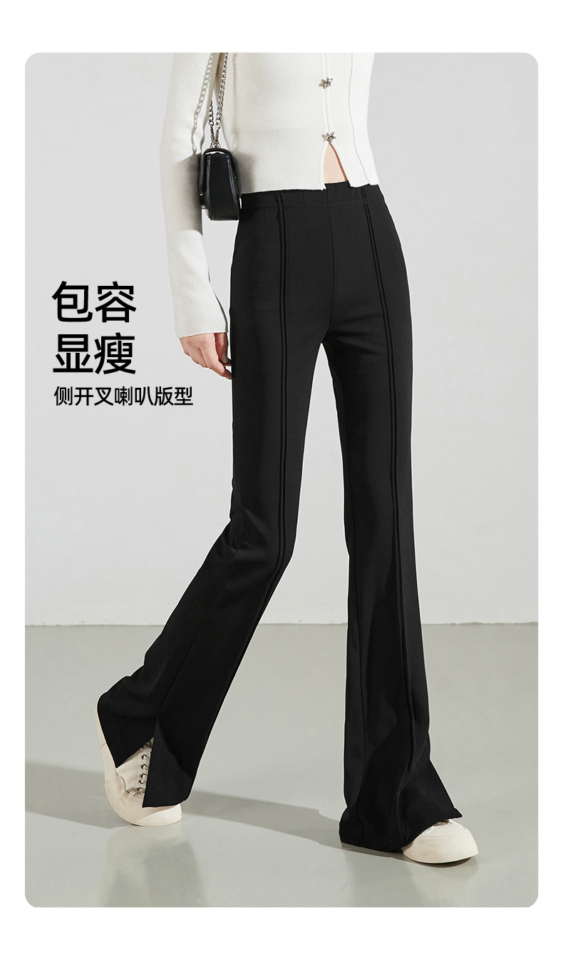 逸阳黑色侧开叉微喇裤女2024年秋季弹力修身高腰显瘦喇叭马蹄长裤9914