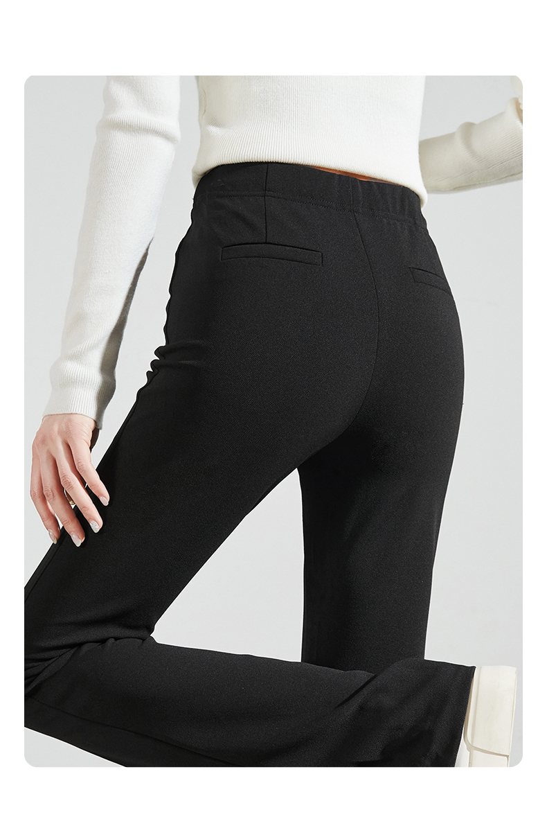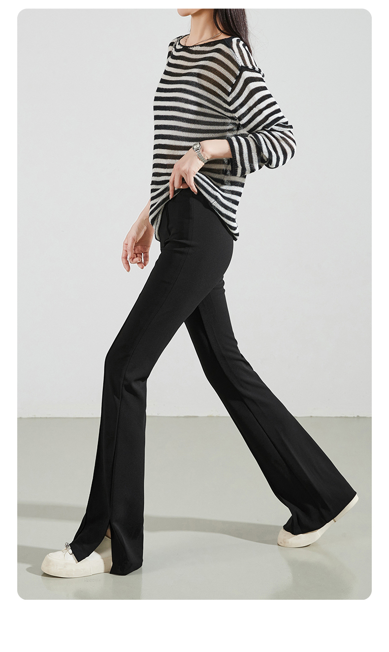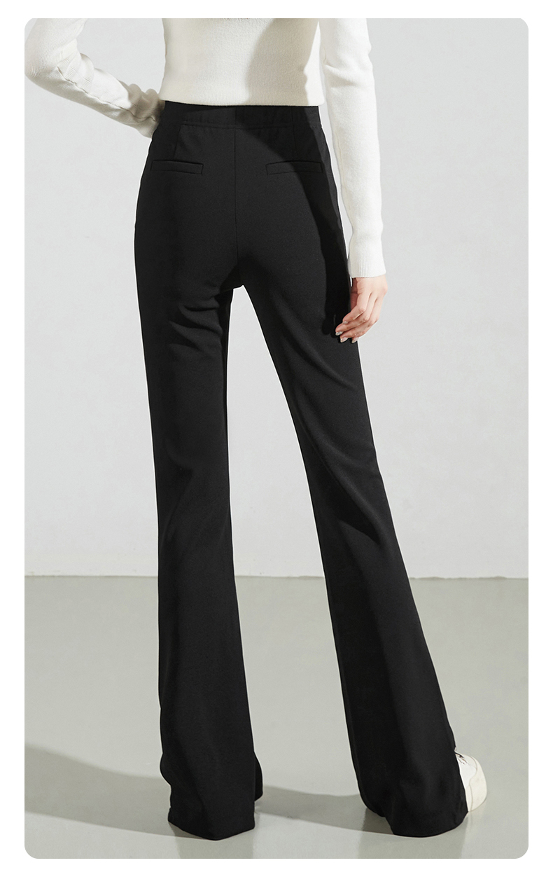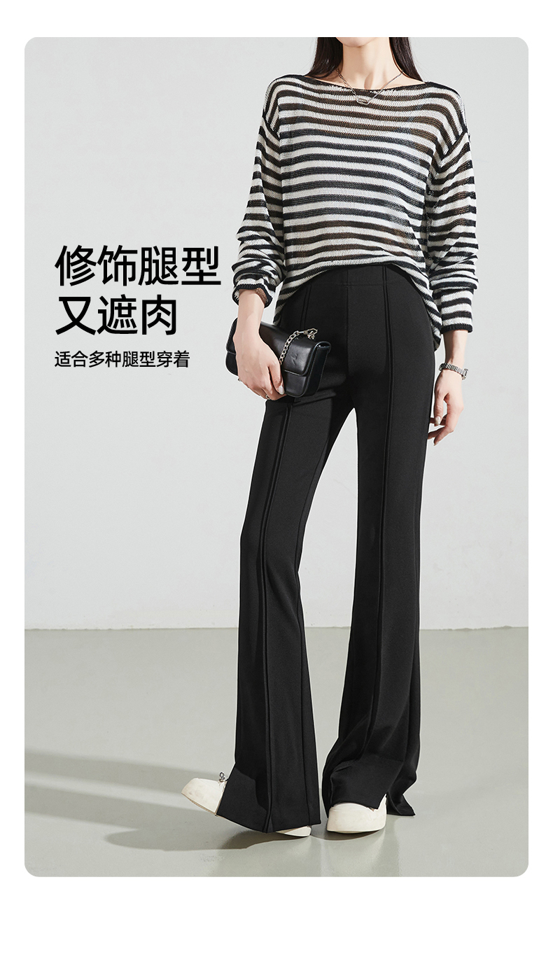 逸阳黑色侧开叉微喇裤女2024年秋季弹力修身高腰显瘦喇叭马蹄长裤9914
