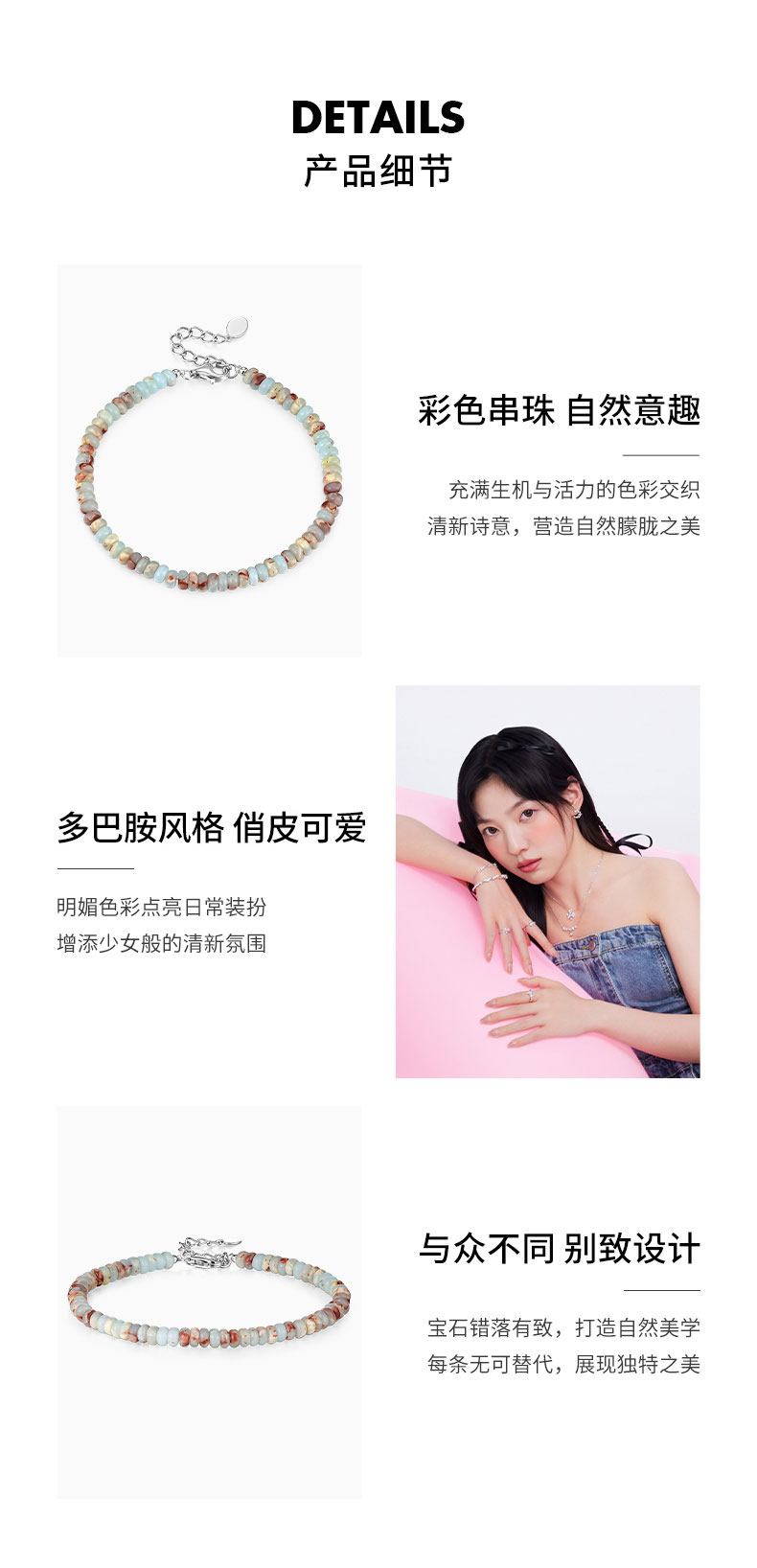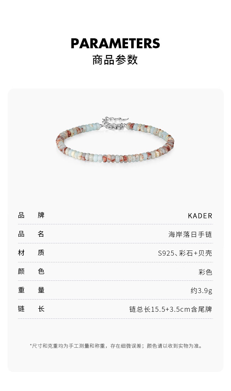 卡蒂罗KADER 薄荷曼波系列 925银海岸落日手链 原创彩石串珠民族风多巴胺波西米亚 复古设计高级感独特创意轻奢品质小众风格个性 手链 女款