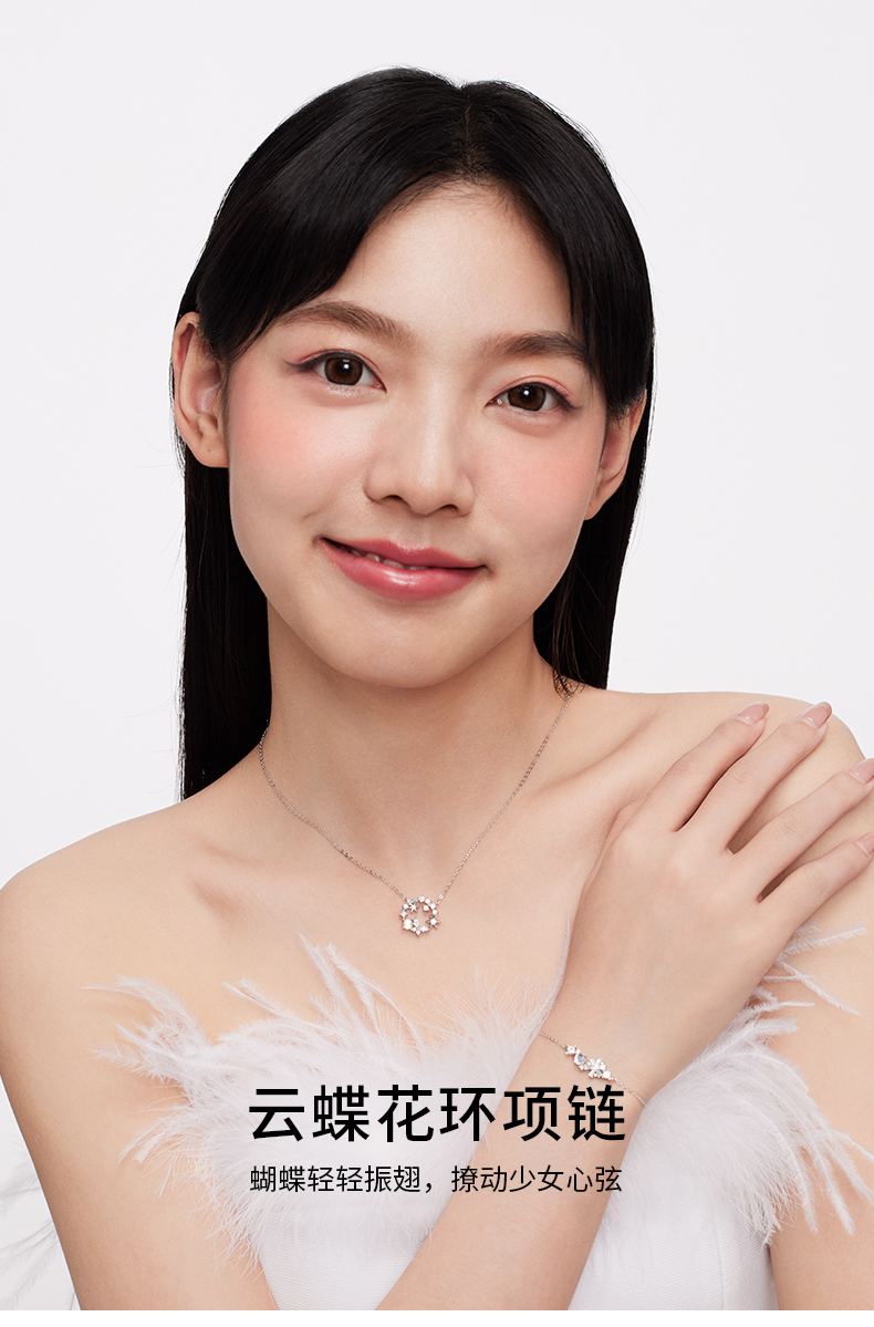 KADER卡蒂罗 云蝶花环项链 女925银小众设计高级锁骨链生日礼物2023新款