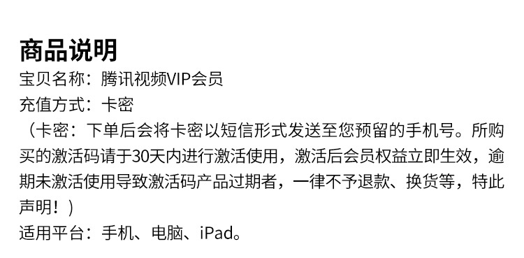腾讯视频会员VIP卡密形式