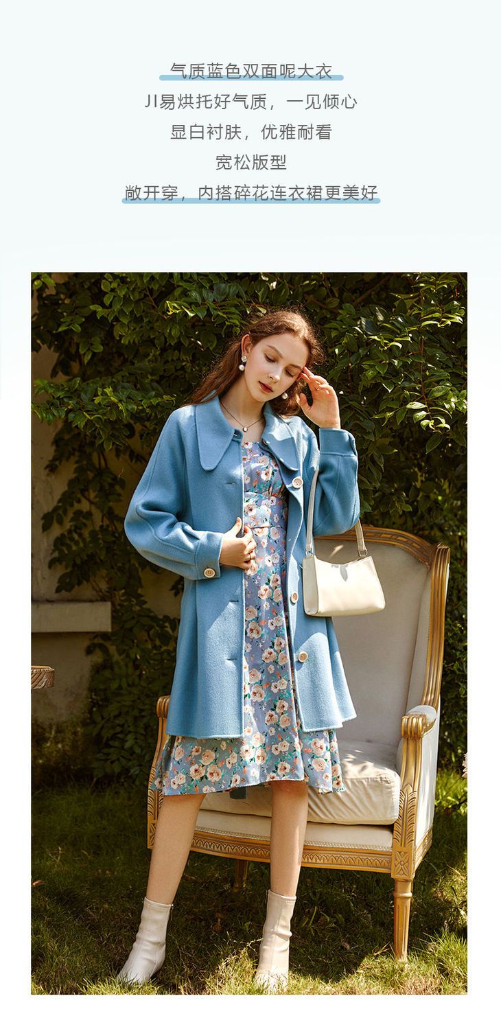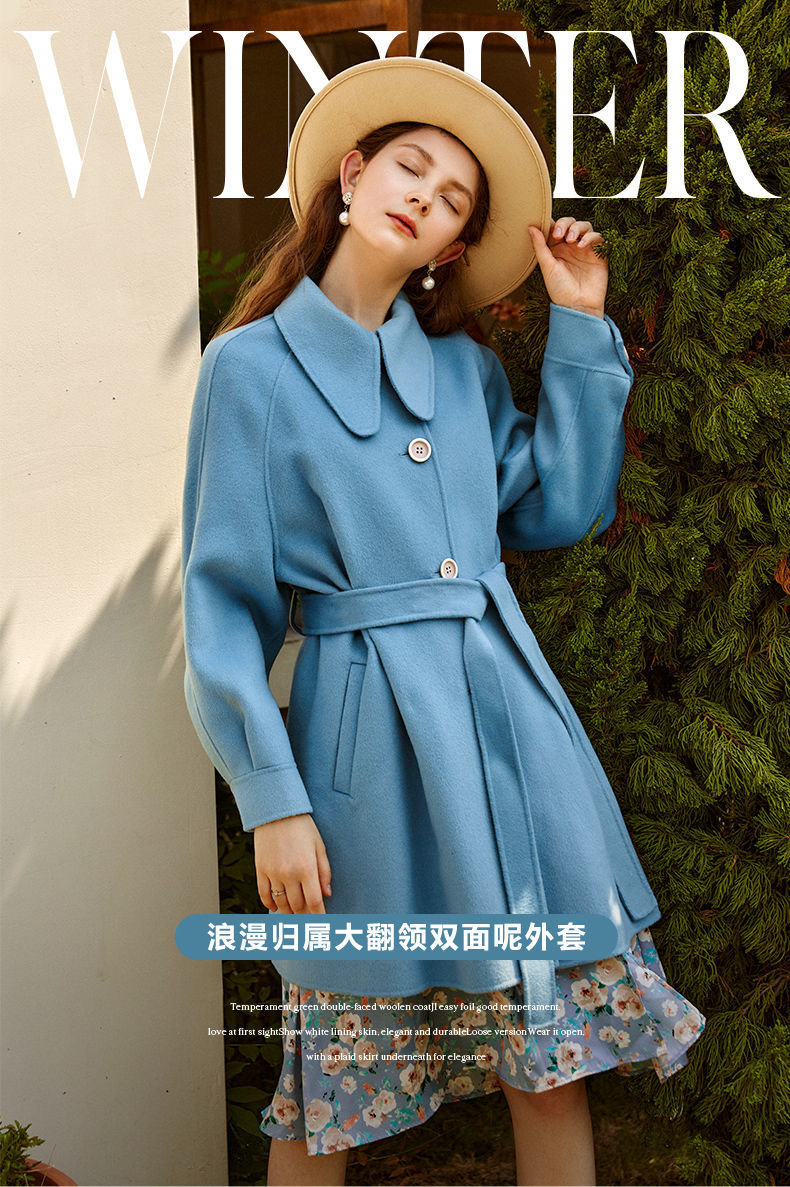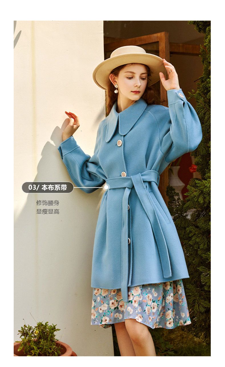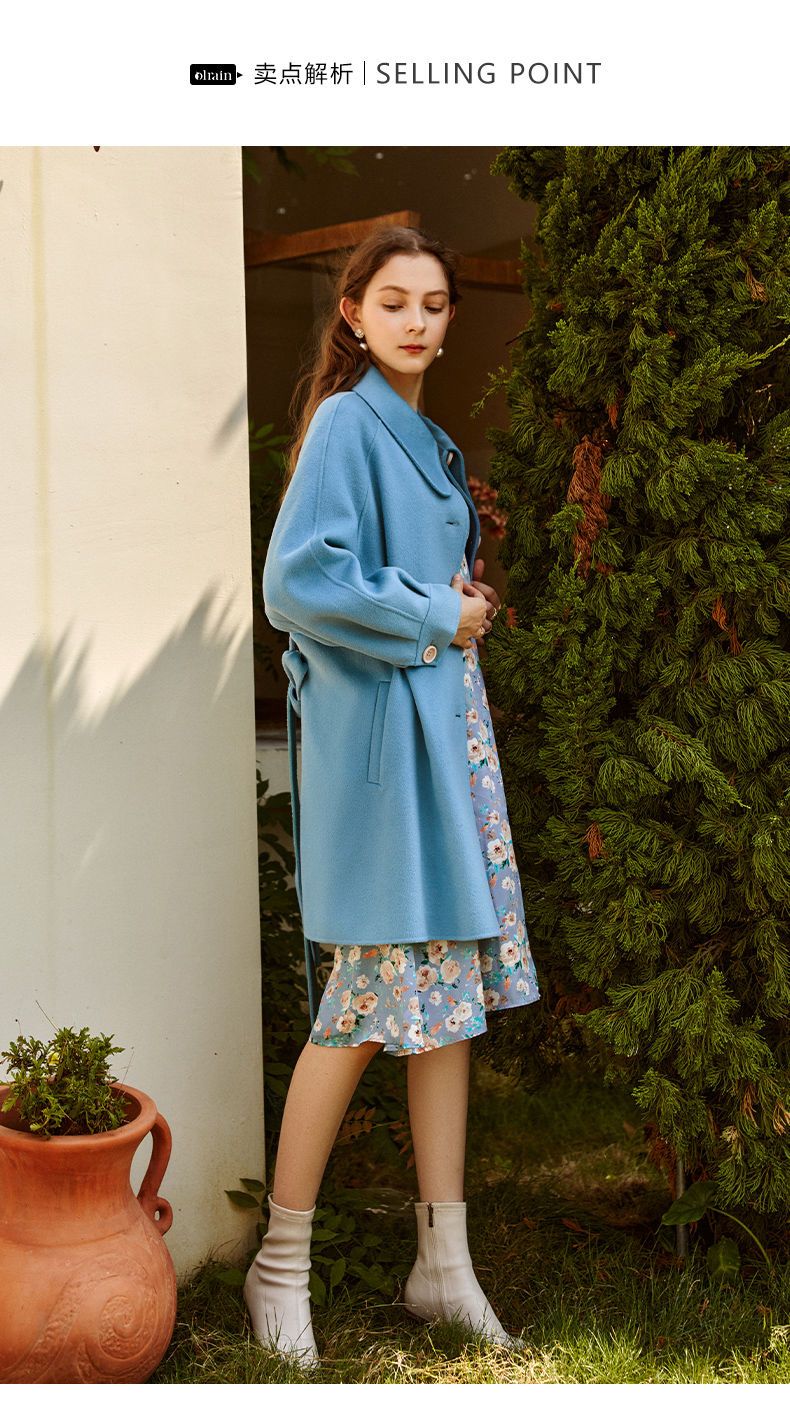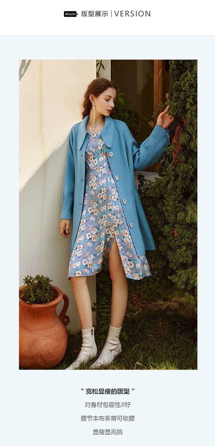 OLrain欧芮儿法式双面呢毛呢外套女春2025年新款翻领中长款大衣