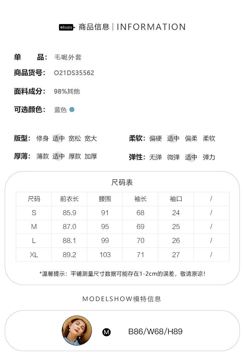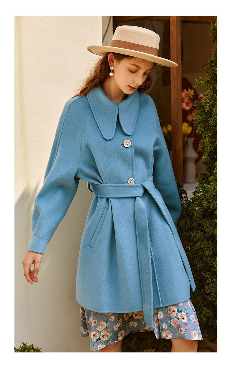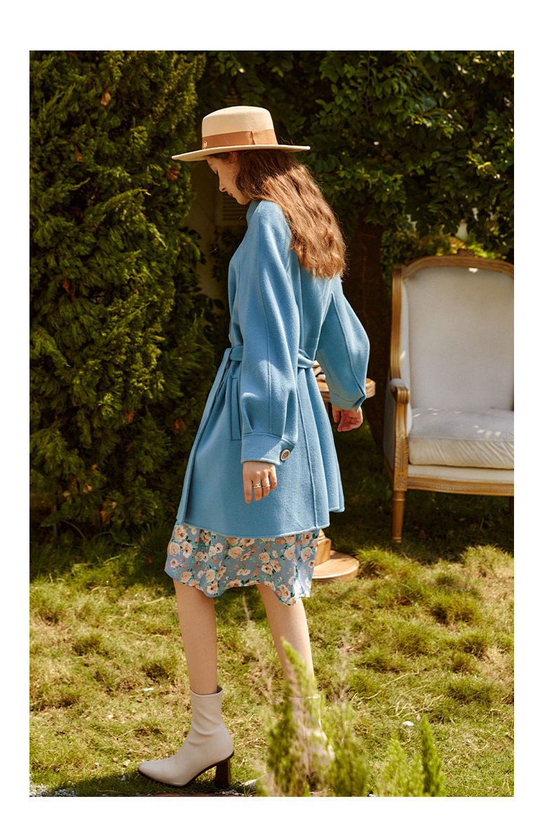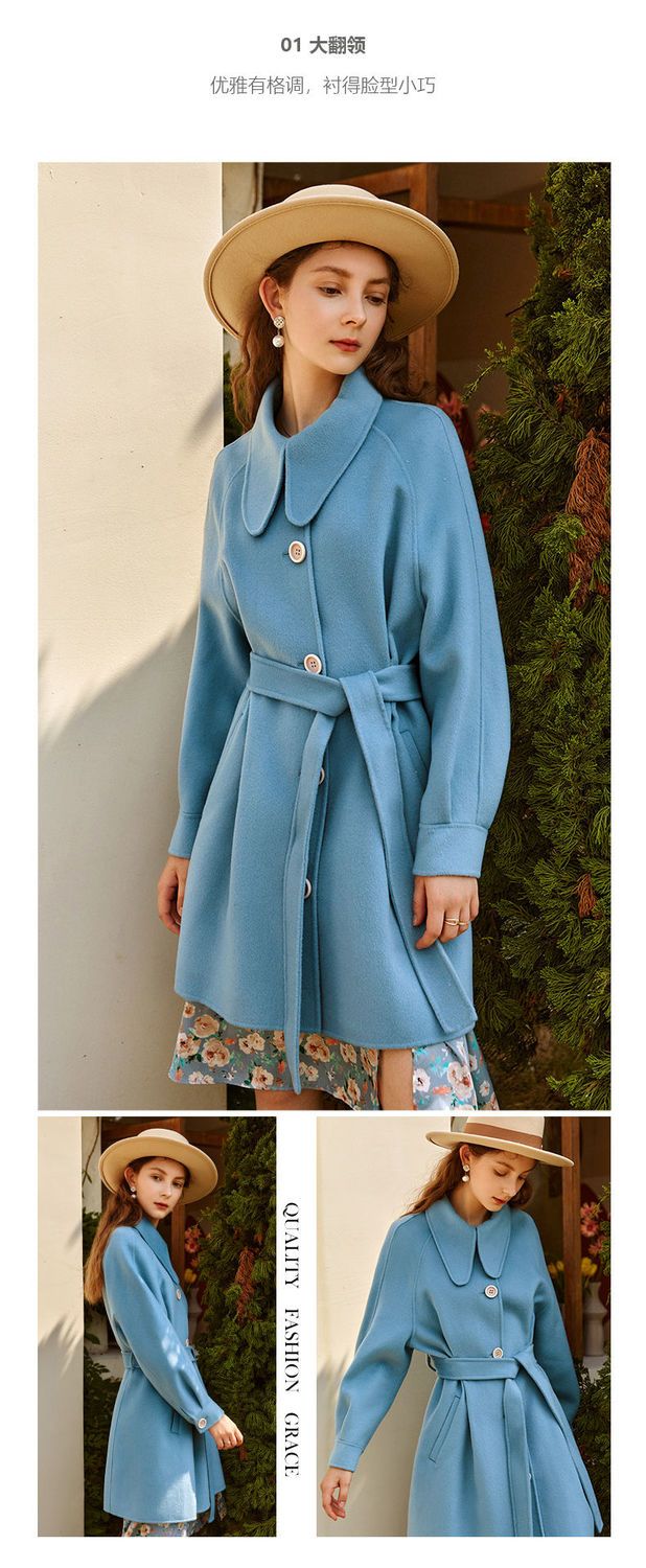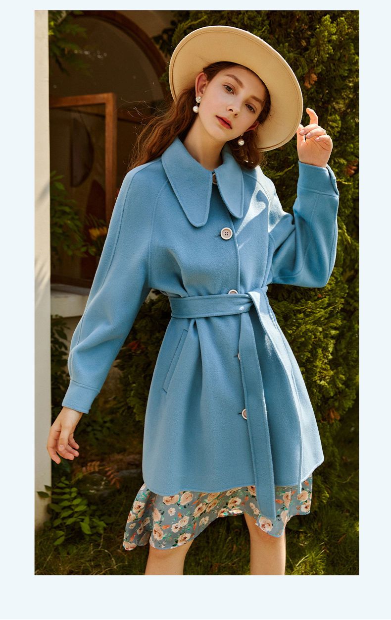 OLrain欧芮儿法式双面呢毛呢外套女春2025年新款翻领中长款大衣