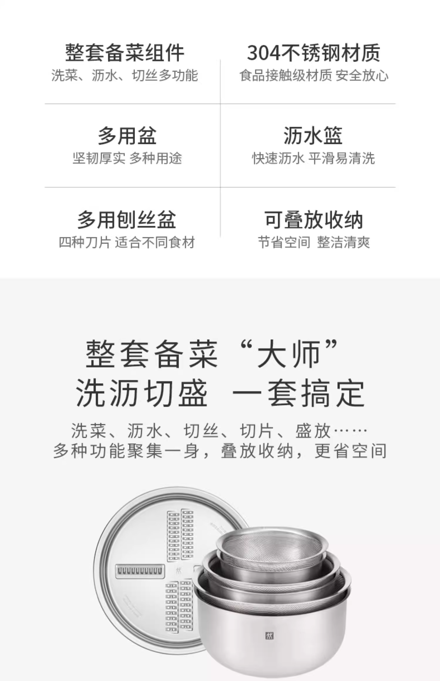 【柏联B1】双立人沥水蓝套装不锈钢创丝器多功能创丝盆(满2000元包邮)