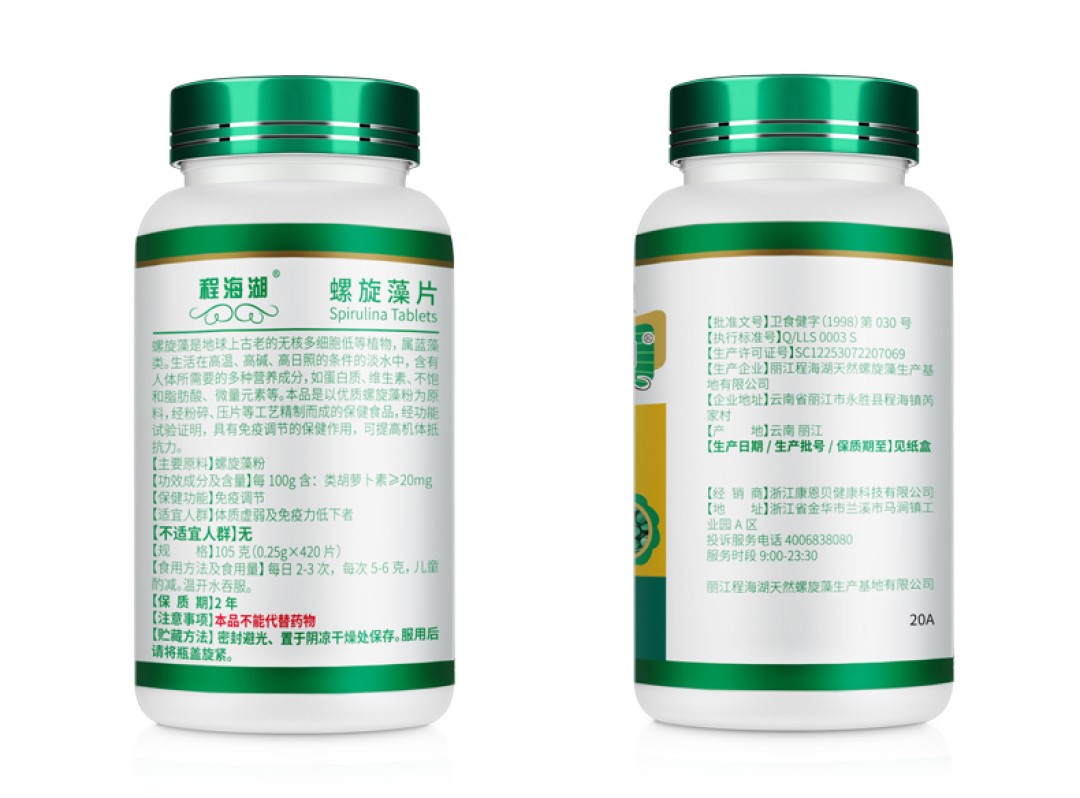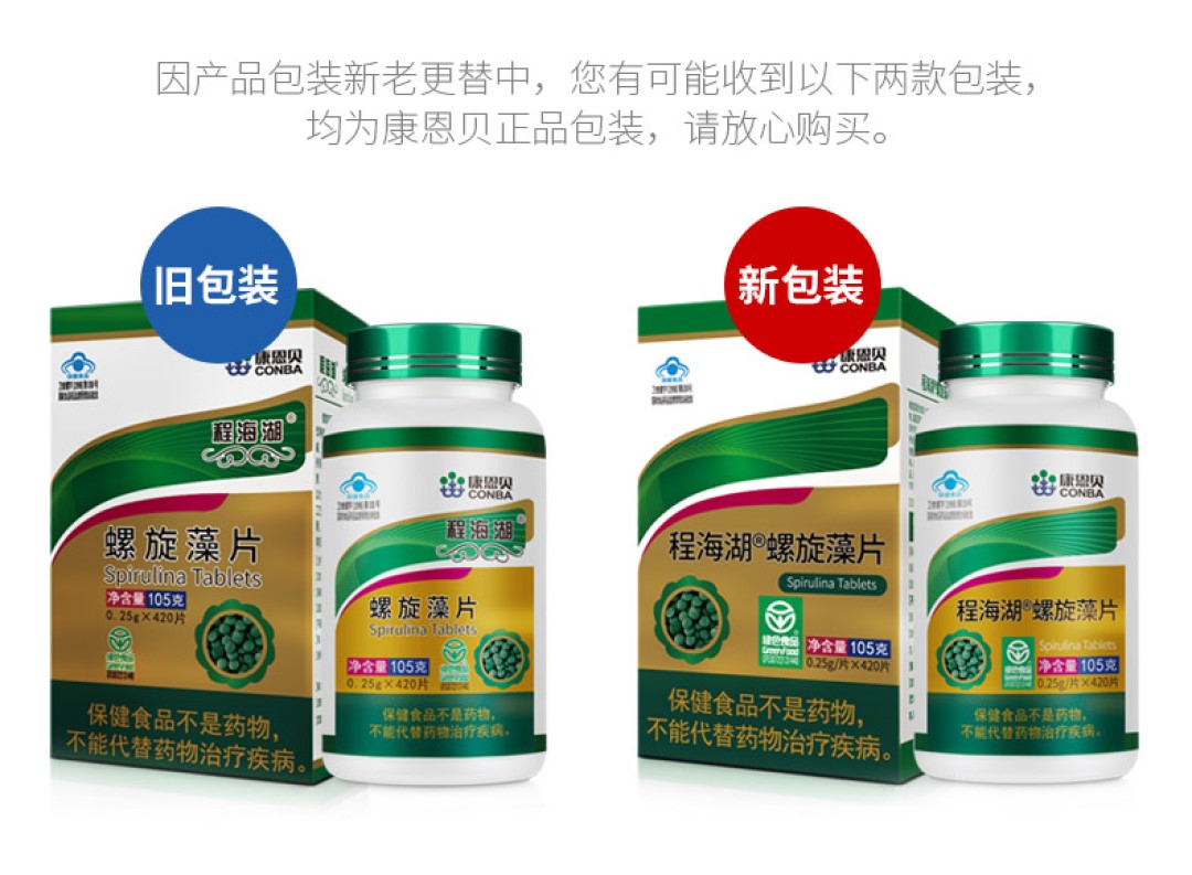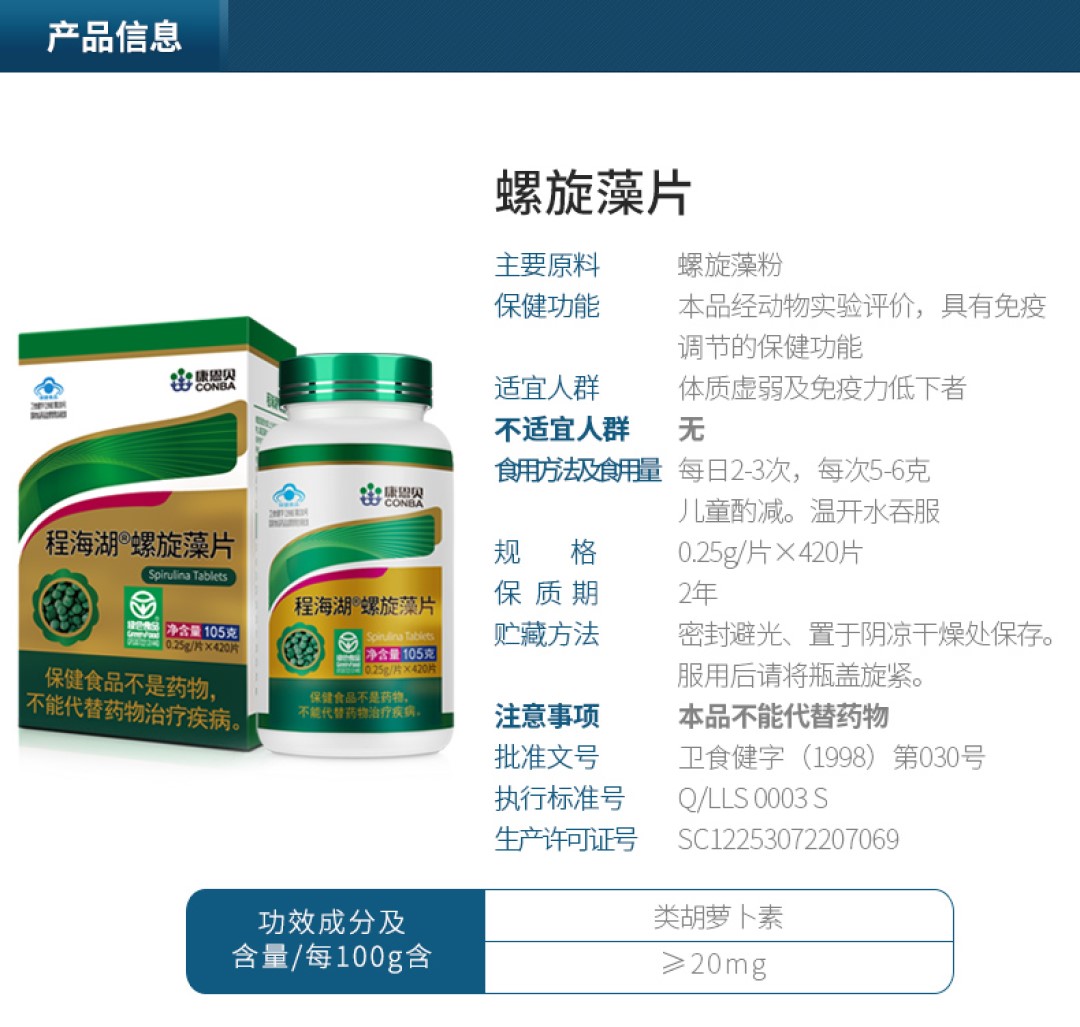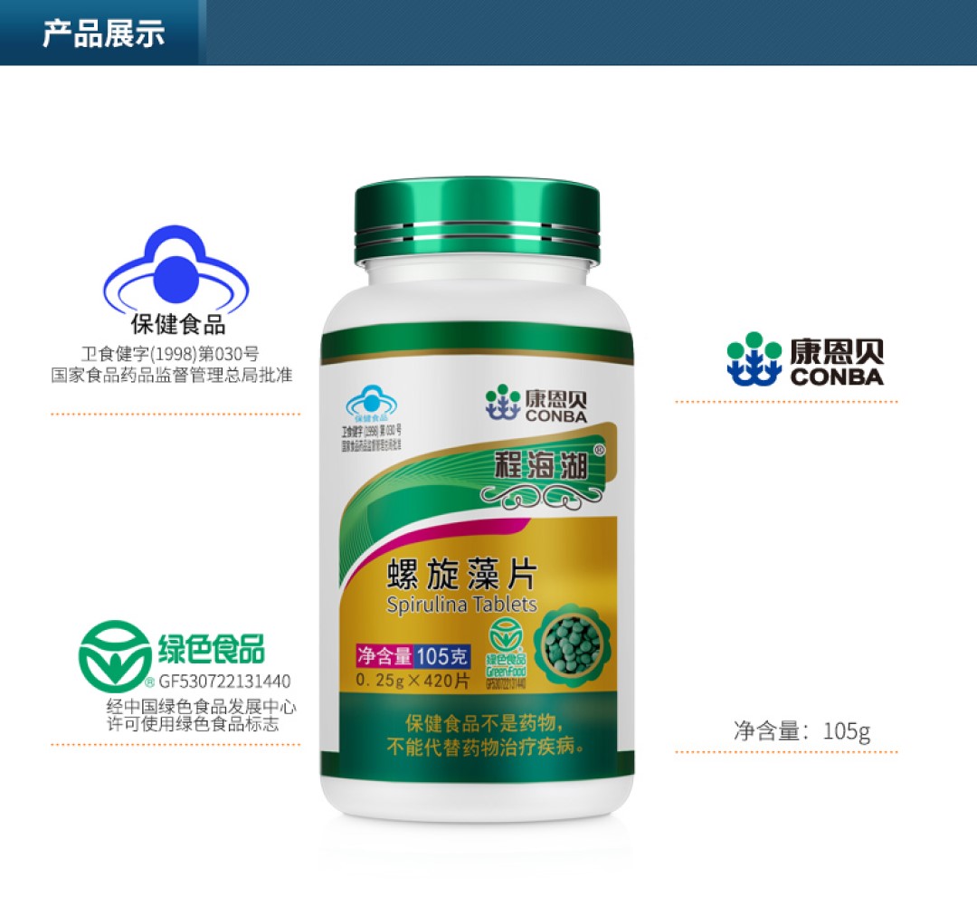 康恩贝程海湖螺旋藻片420片 免疫调节正品儿童青少年中老年成人
