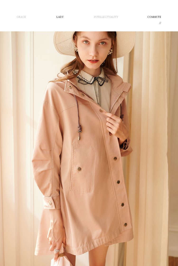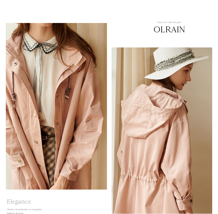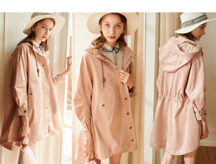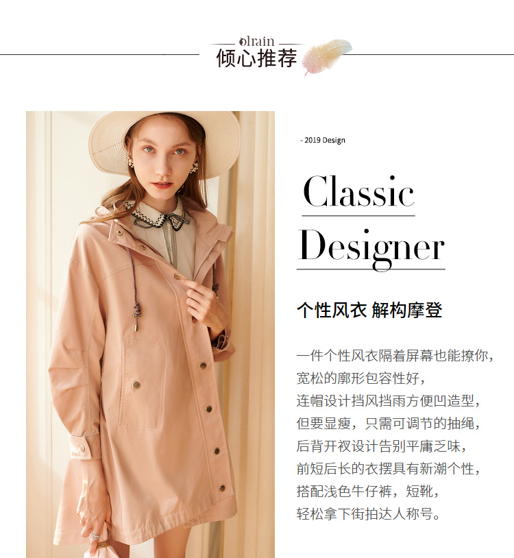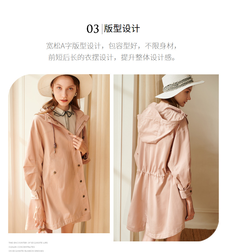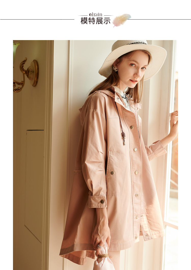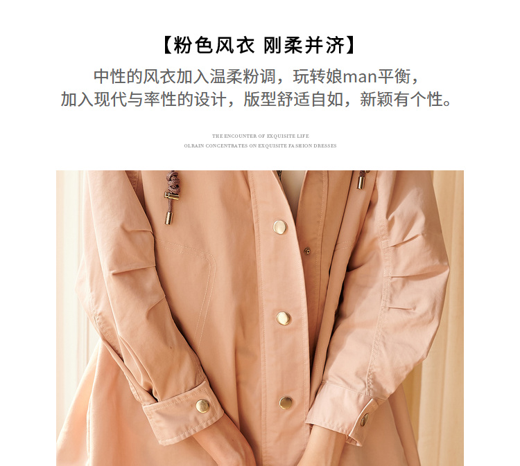 欧芮儿2020春新款流行小个子风衣女中长款大衣外套薄款连帽森女
