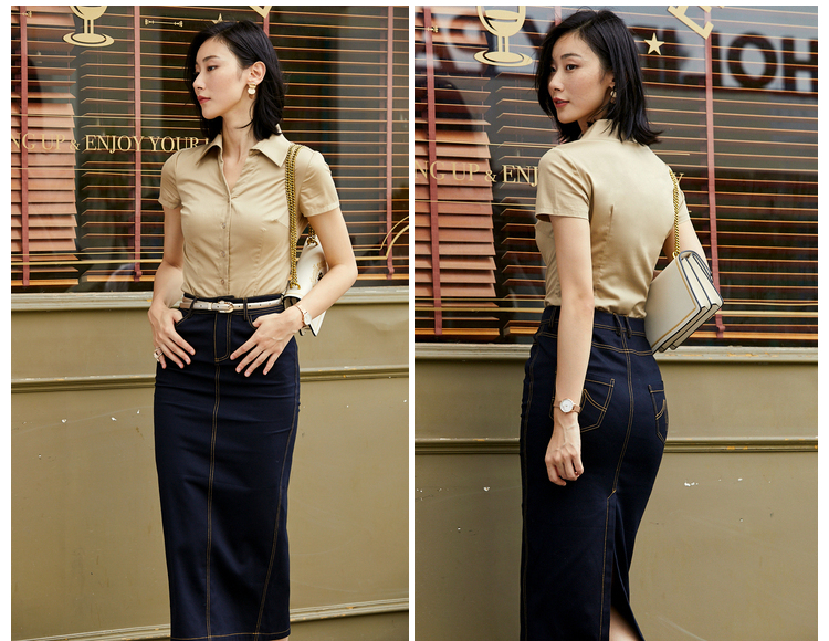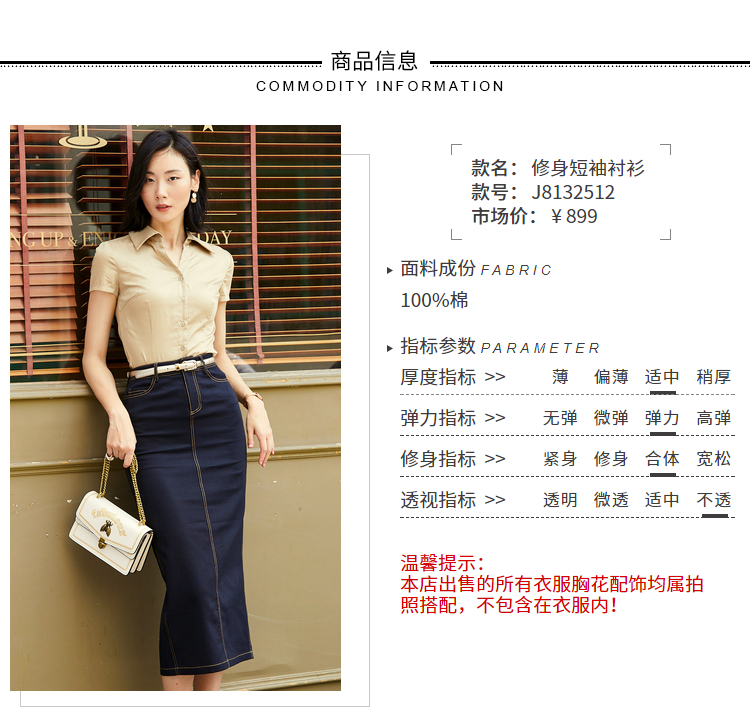 J8132512B颈袖添香衬衣女士新款时尚OL修身连体衬衫女短袖J8132512B(四季可穿)