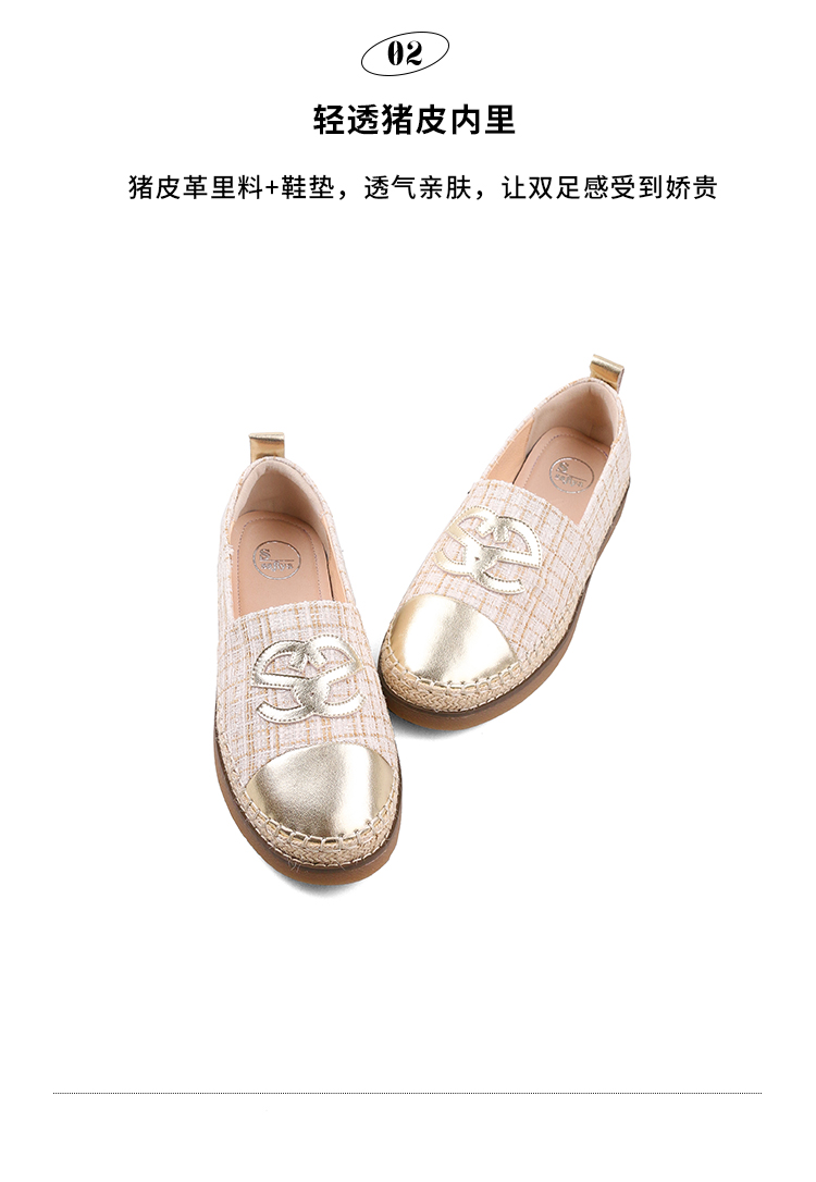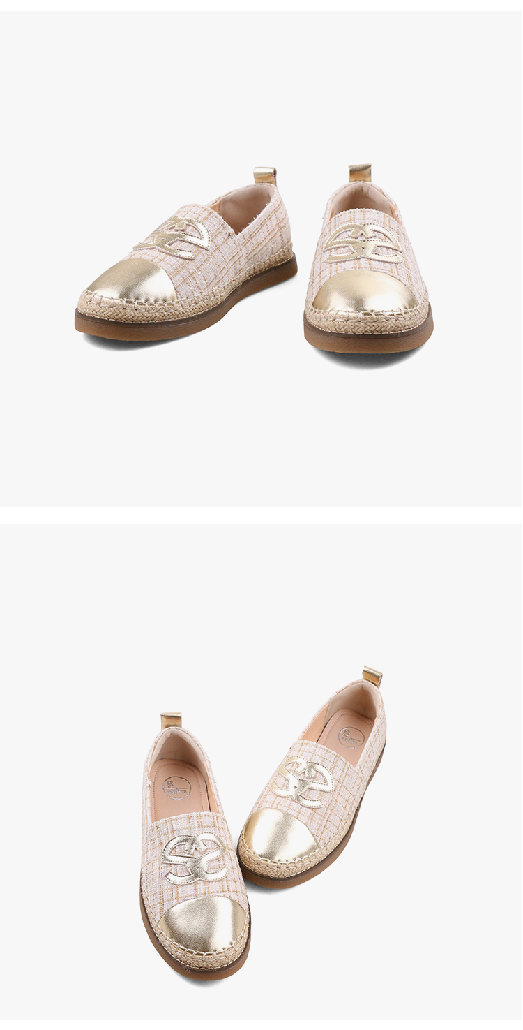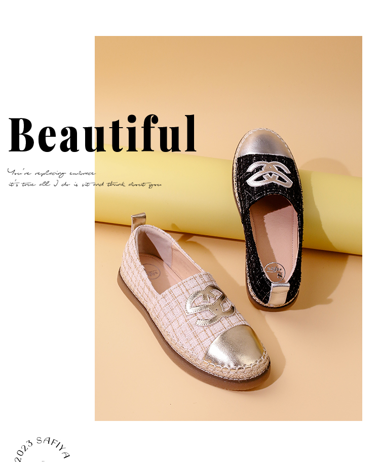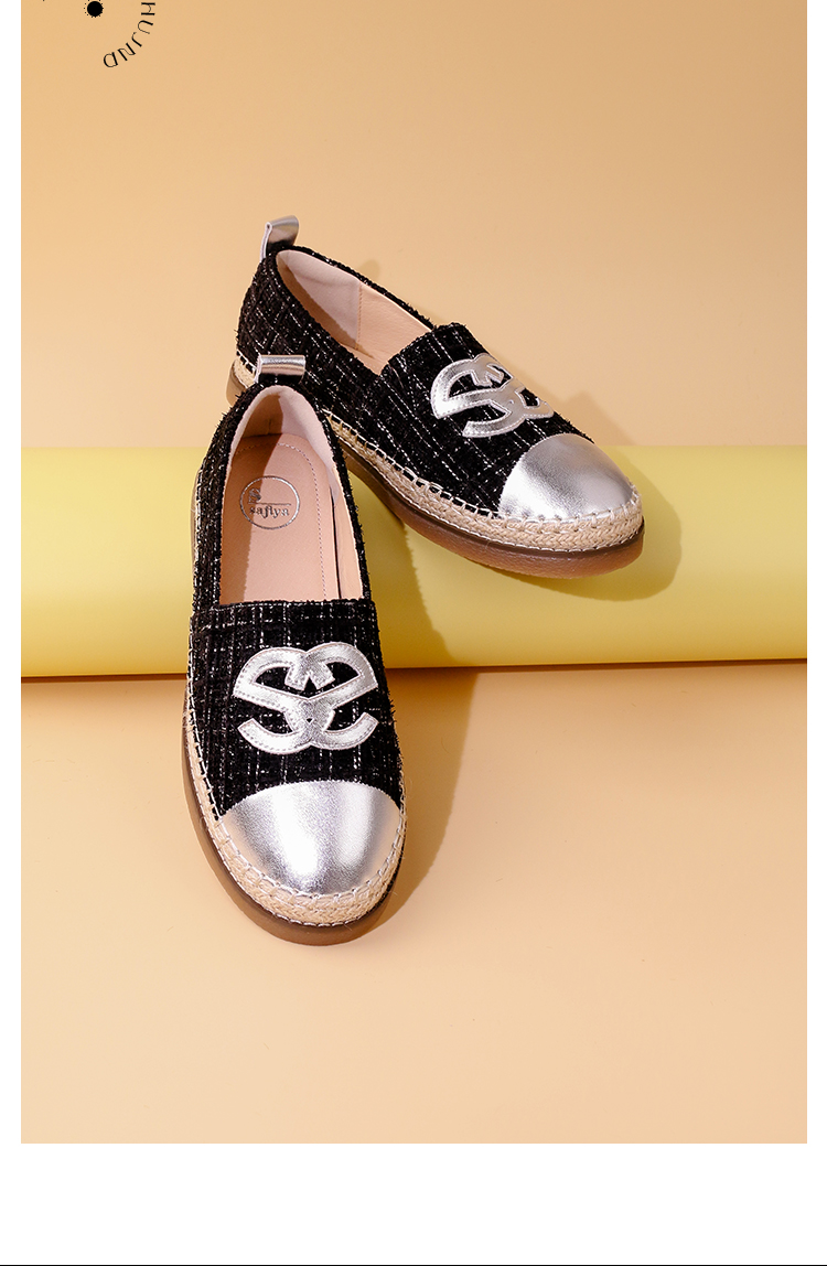 Safiya/索菲娅2023年秋季新品小香风金属色拼色休闲百搭草编软底渔夫鞋SF33112456