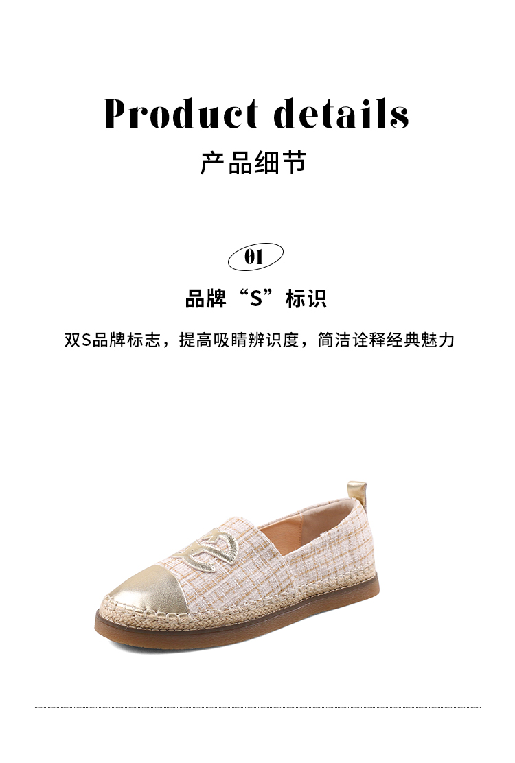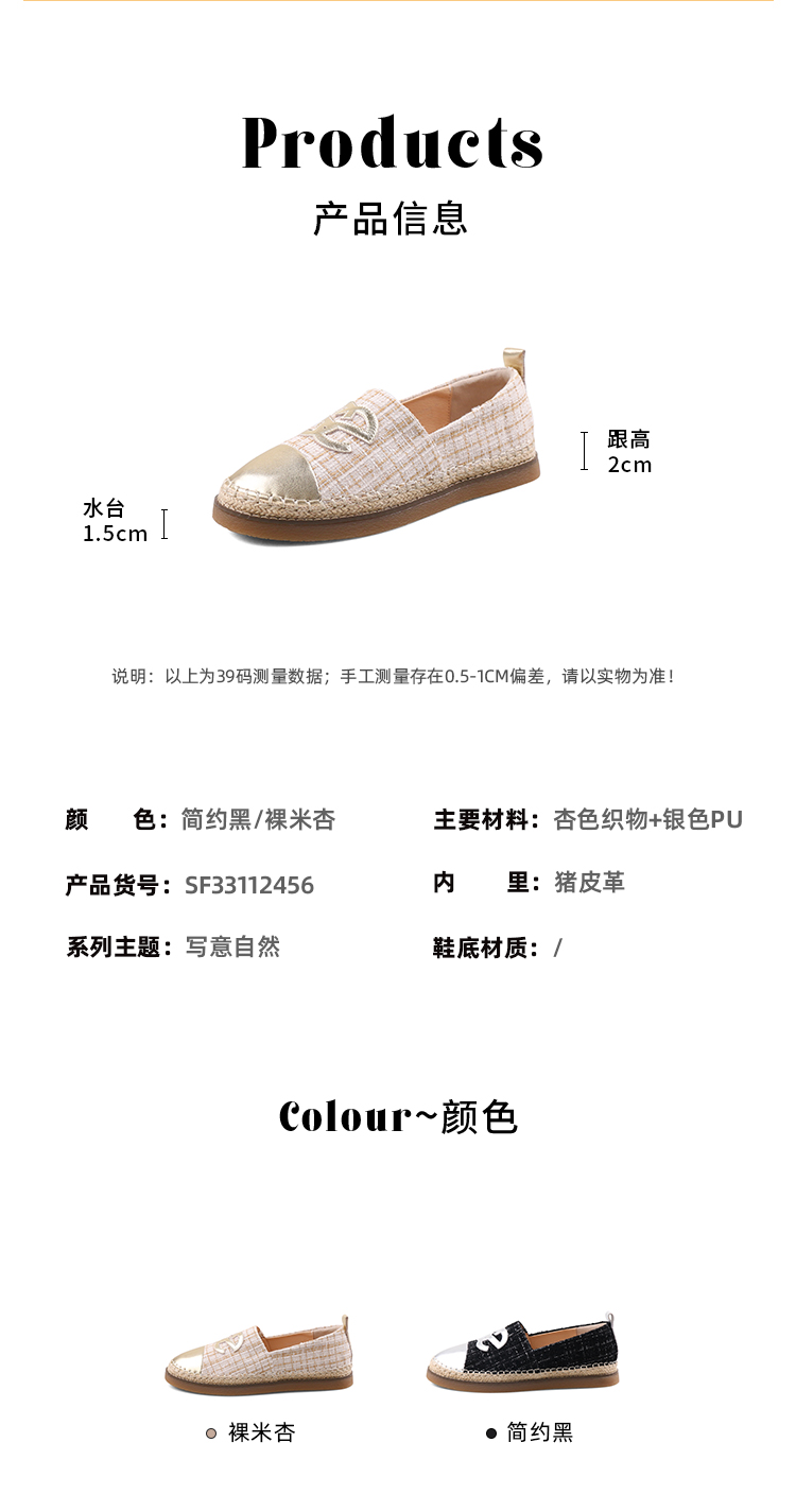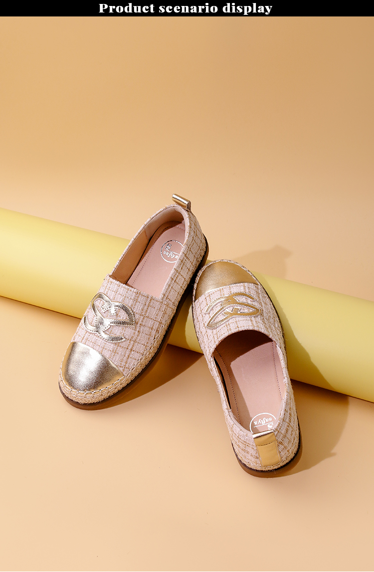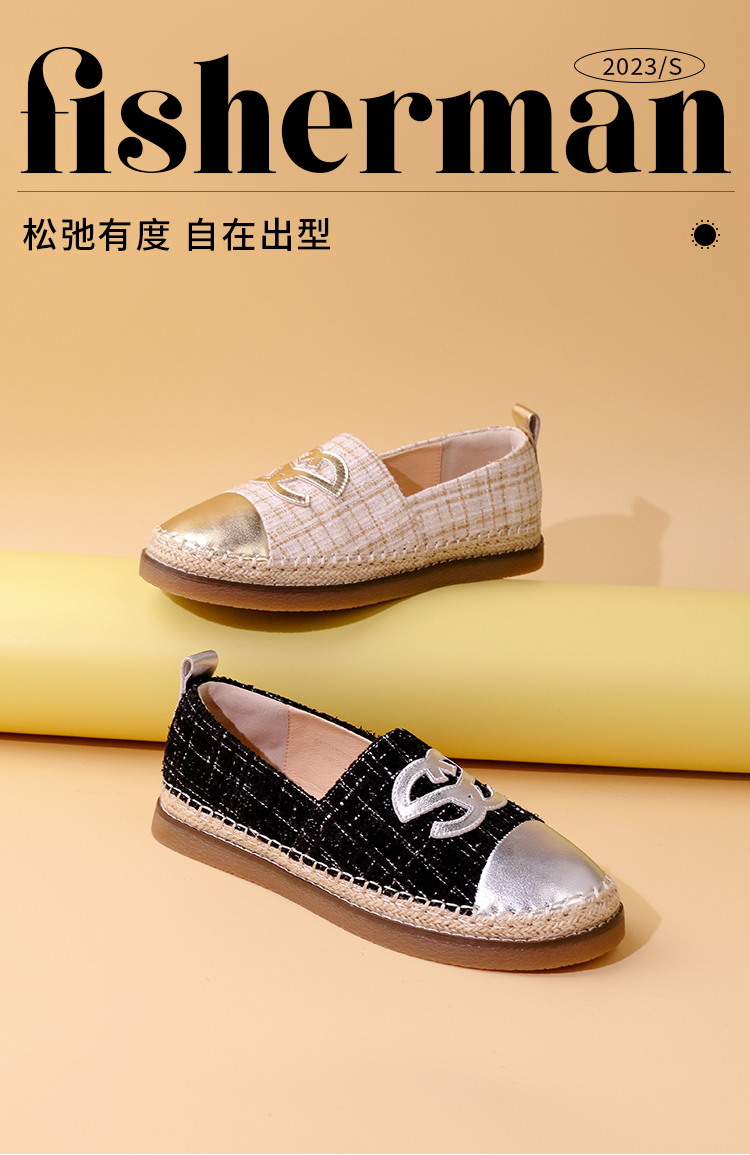 Safiya/索菲娅2023年秋季新品小香风金属色拼色休闲百搭草编软底渔夫鞋SF33112456