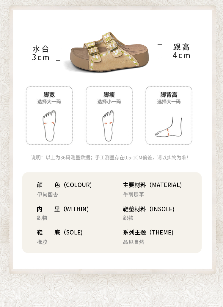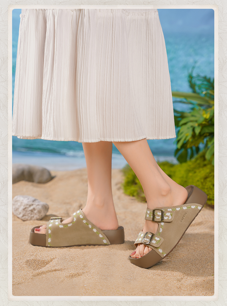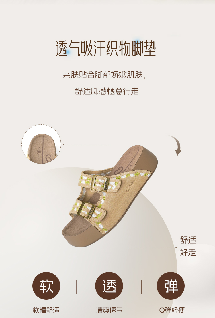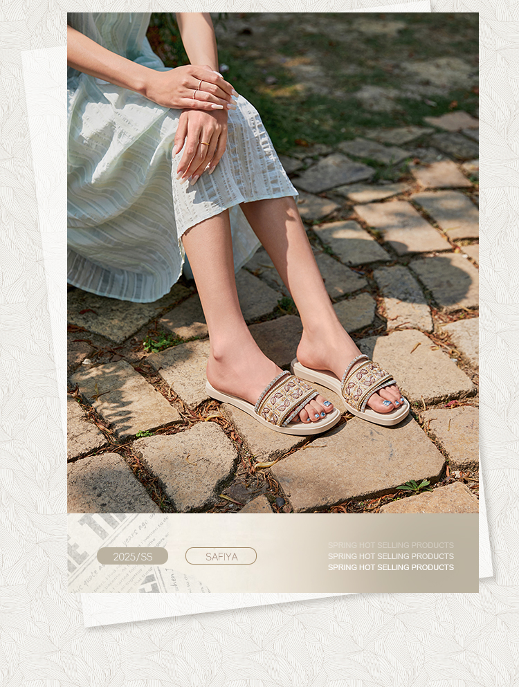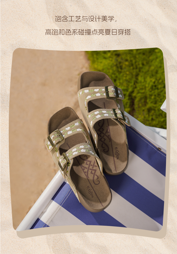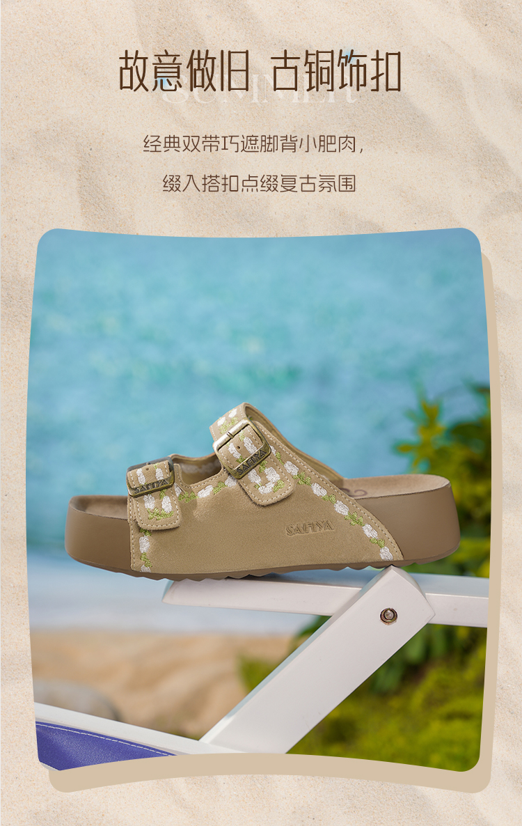 预售7天|Safiya/索菲娅2025小众方头花边刺绣外穿厚底休闲勃肯凉拖鞋SFD2110407
