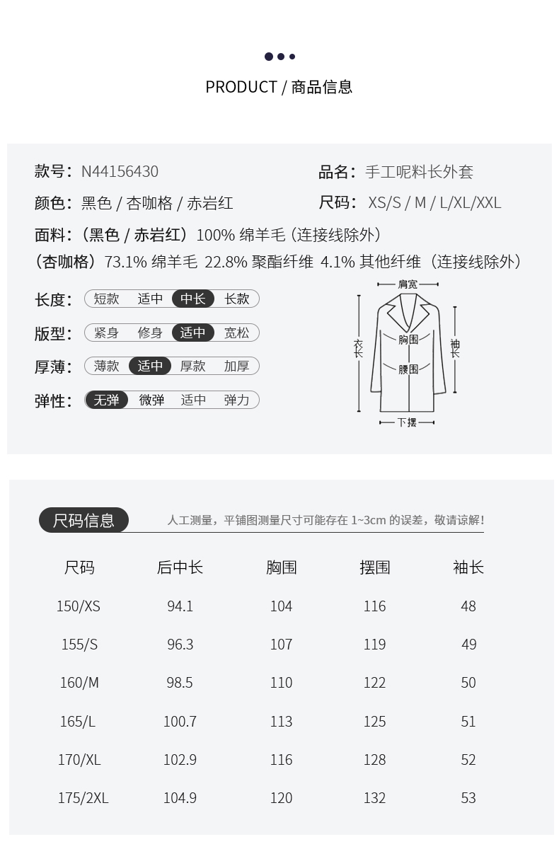 oldcolour2021冬季新款时尚气质修身百搭中长款手工大衣N44156430