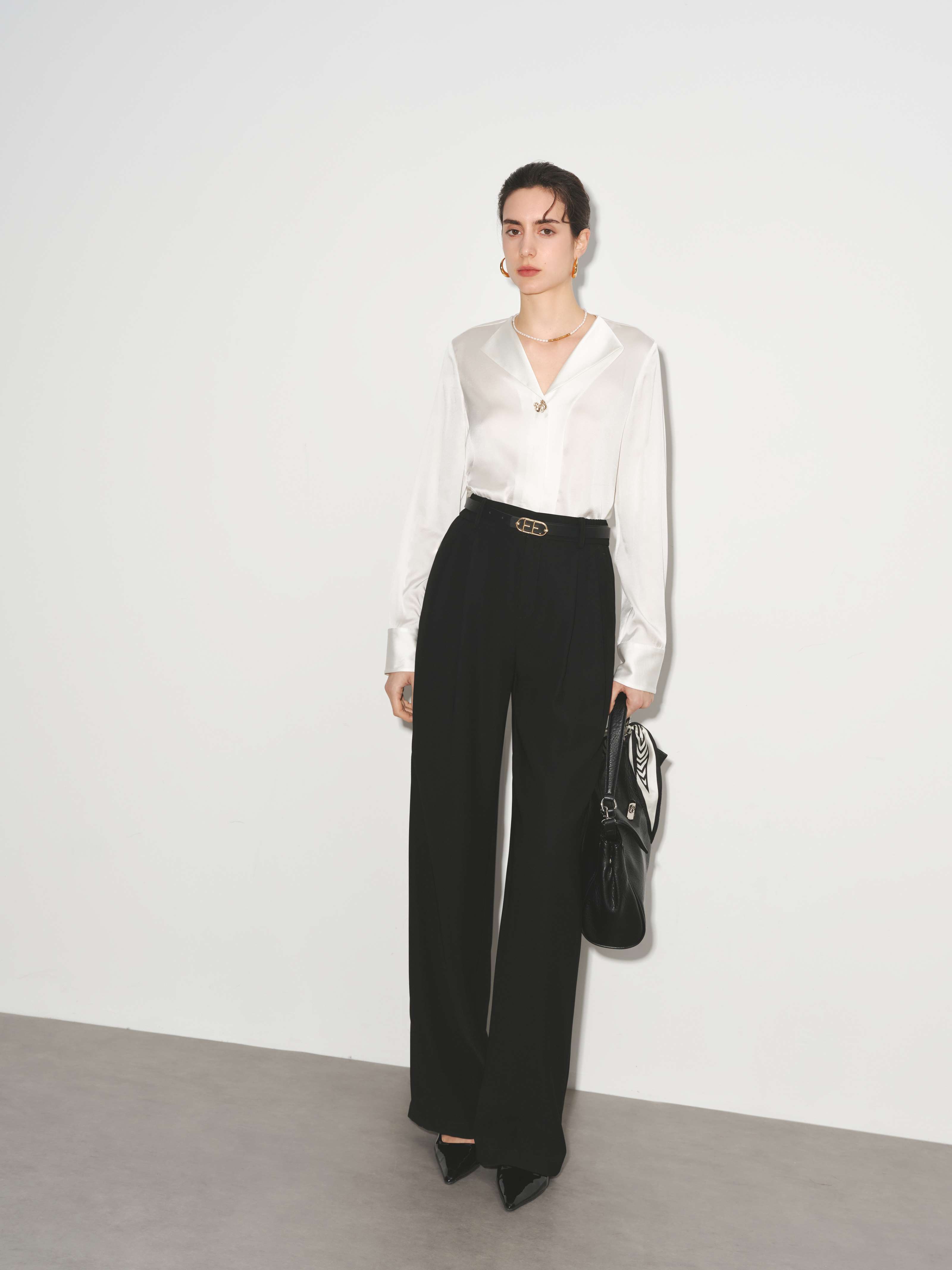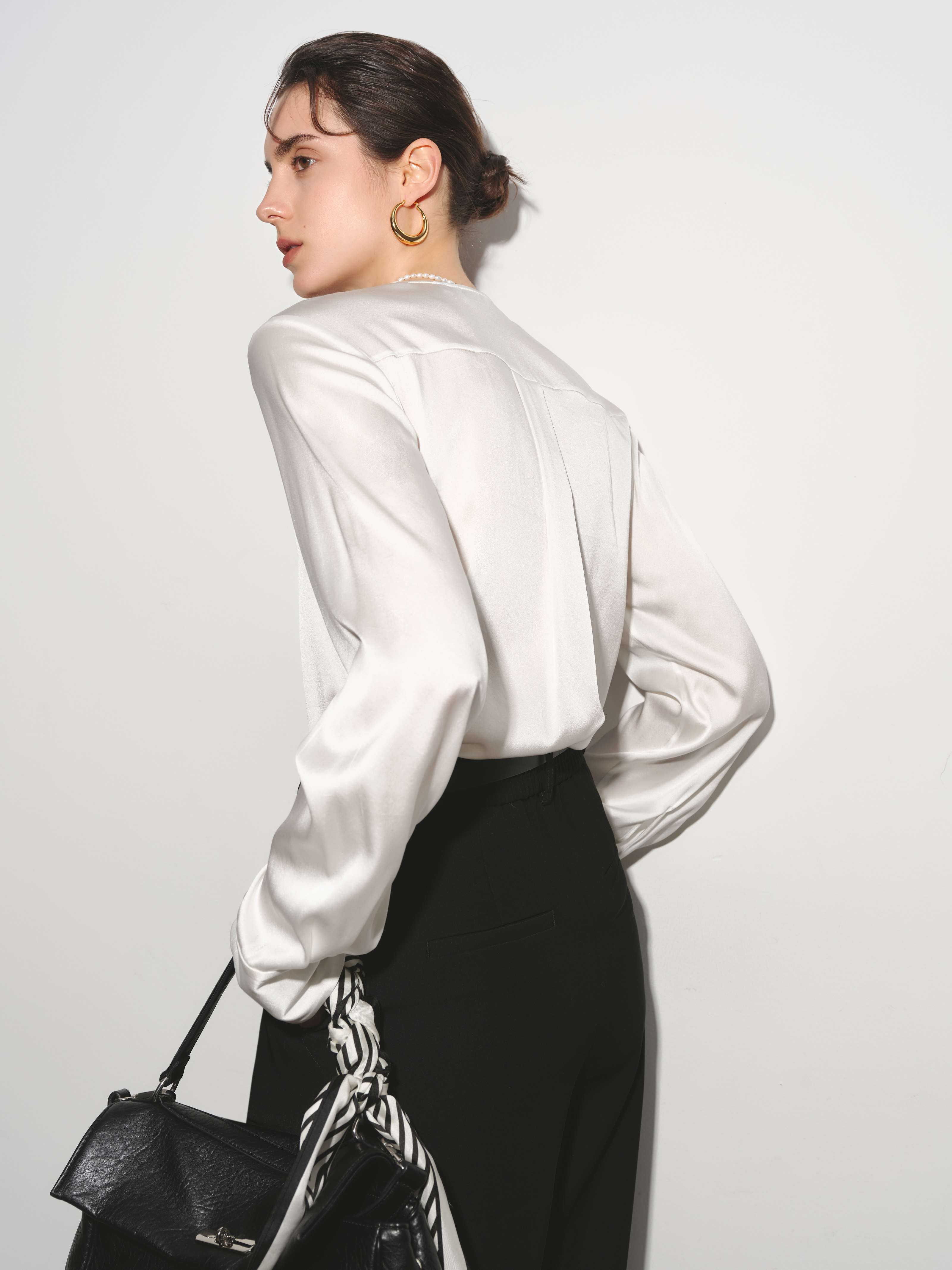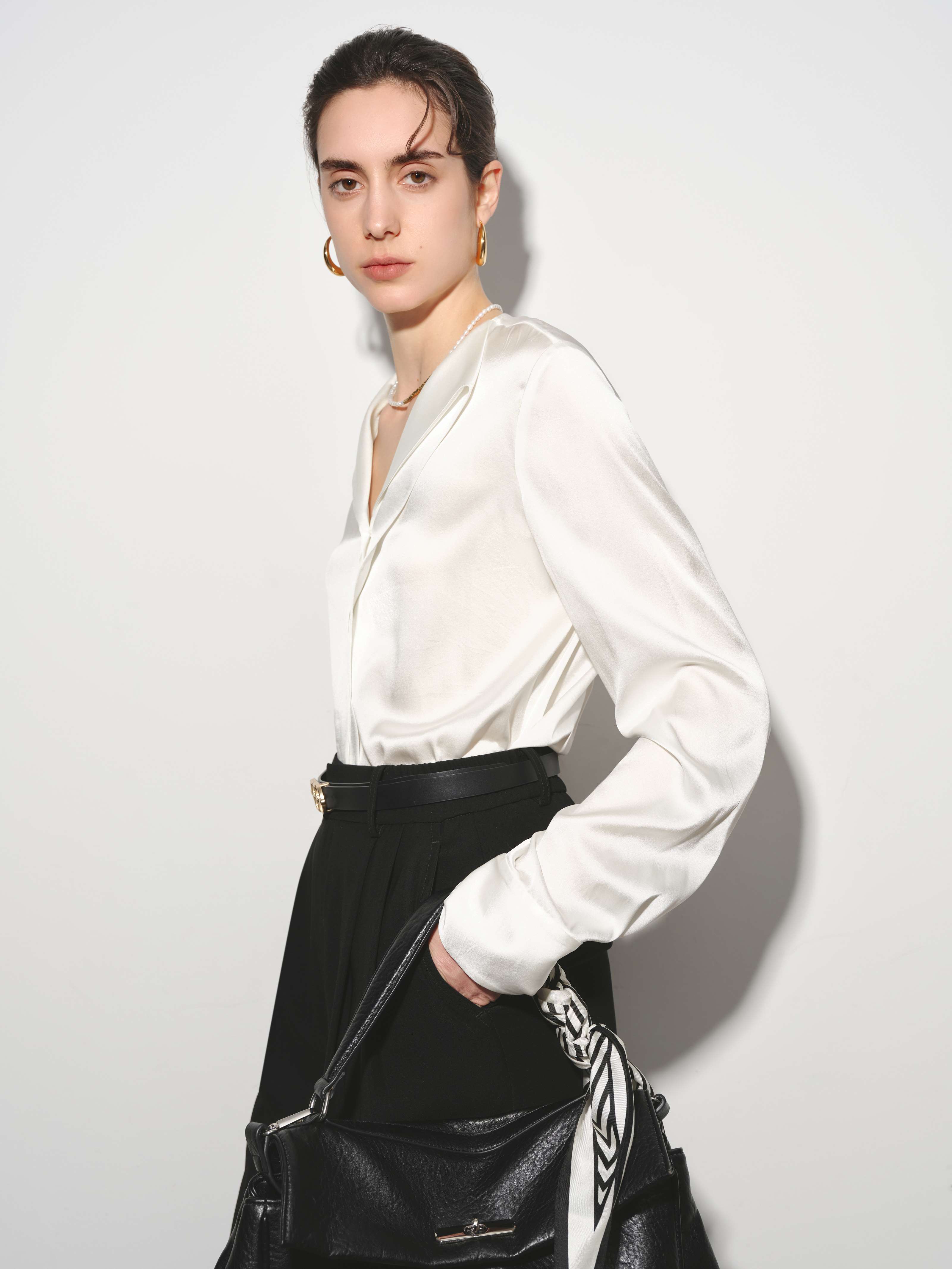 【积分换购不退货】【特惠不退货】诗凡黎法式衬衫2024秋新款木耳边领衬衣女3F9122181