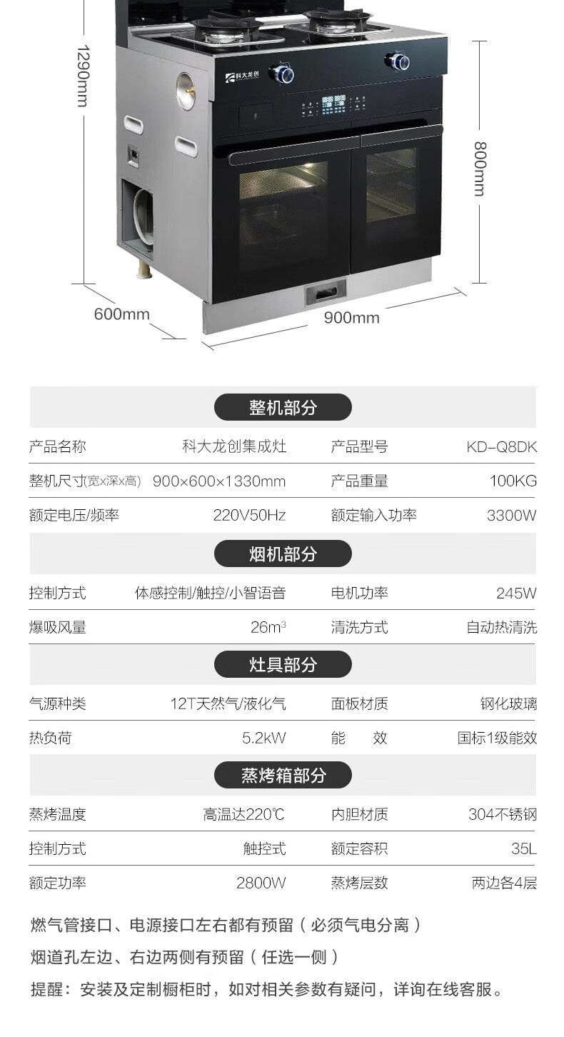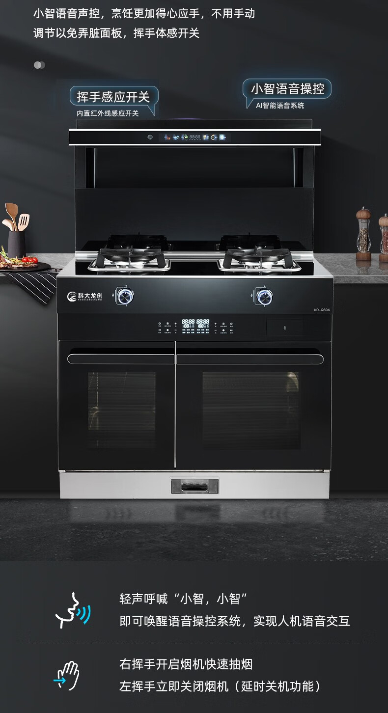 科大龙创 智能集成灶 KD-Q8DK 聚拢劲吸 一键自动热清洗 不包安装 48小时发货