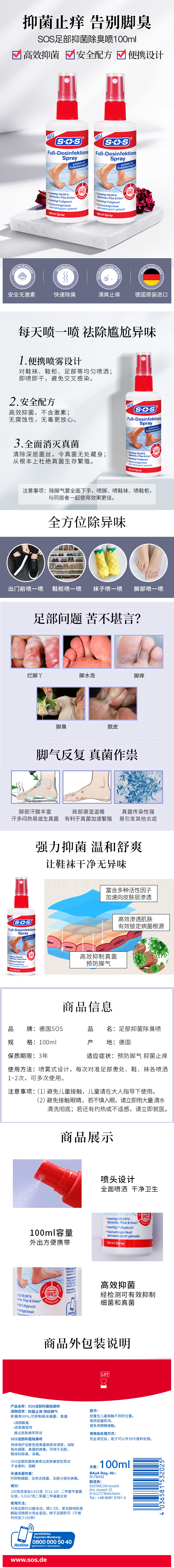 【分销市场】德国SOS足部抑菌除臭喷雾 脚丫急救水 宠物厕所异味喷一喷消异味