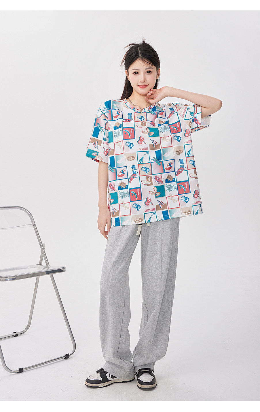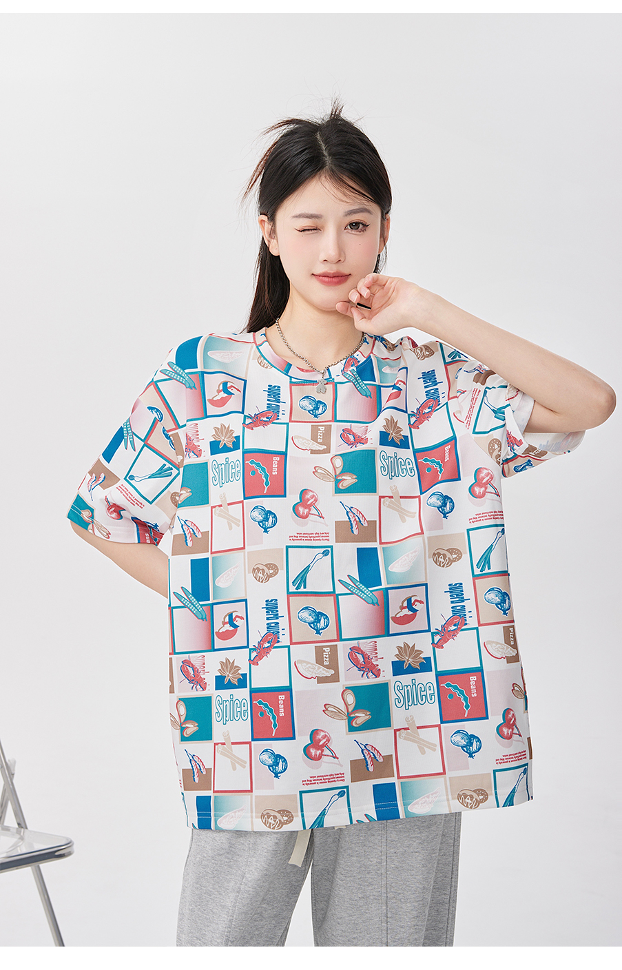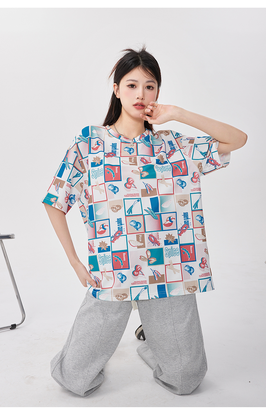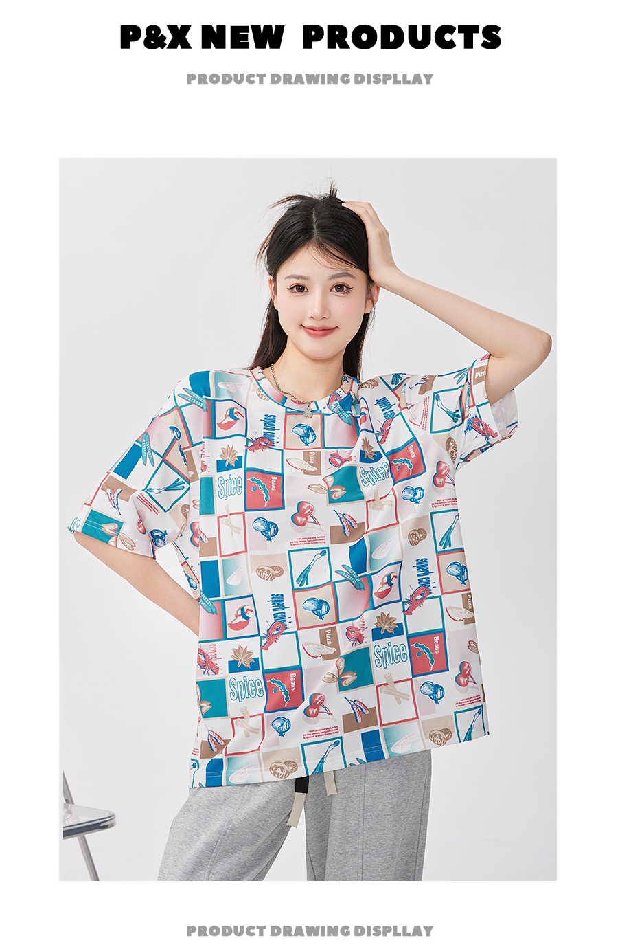 P&X设计师女装 针织短款T恤休闲宽松 823202854 花色