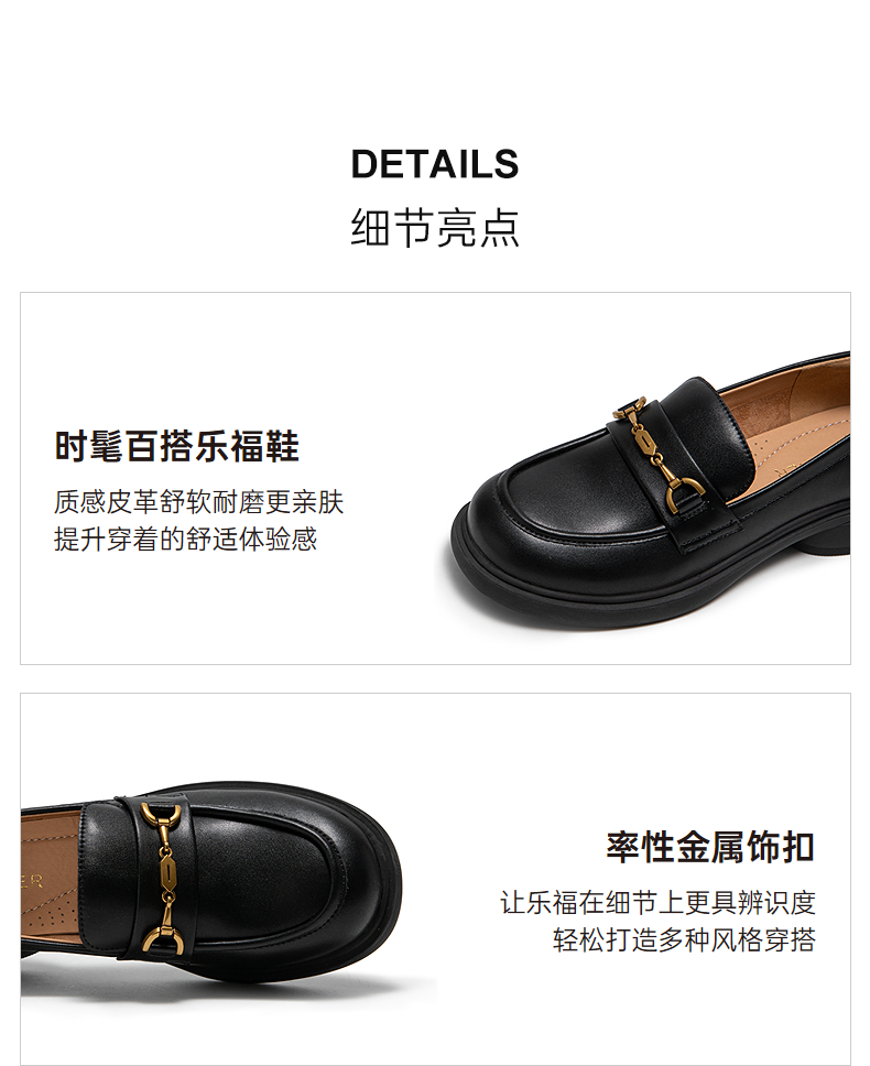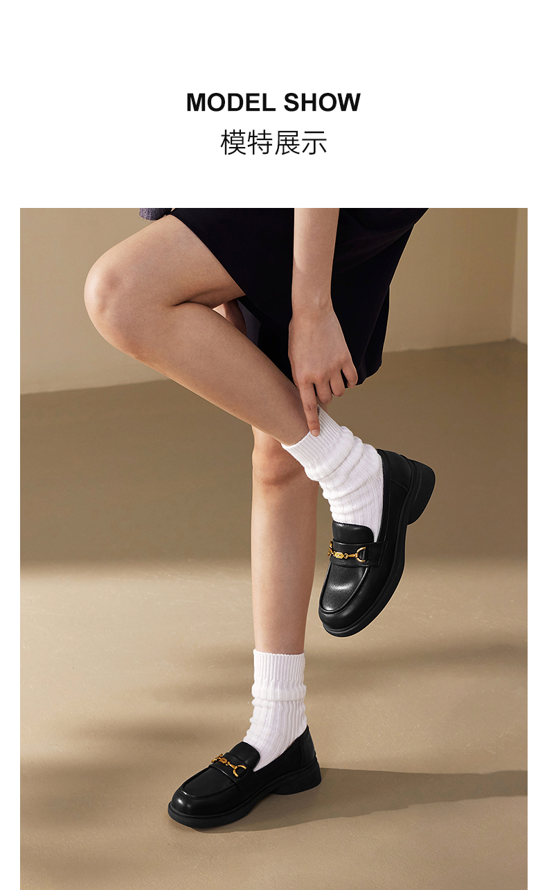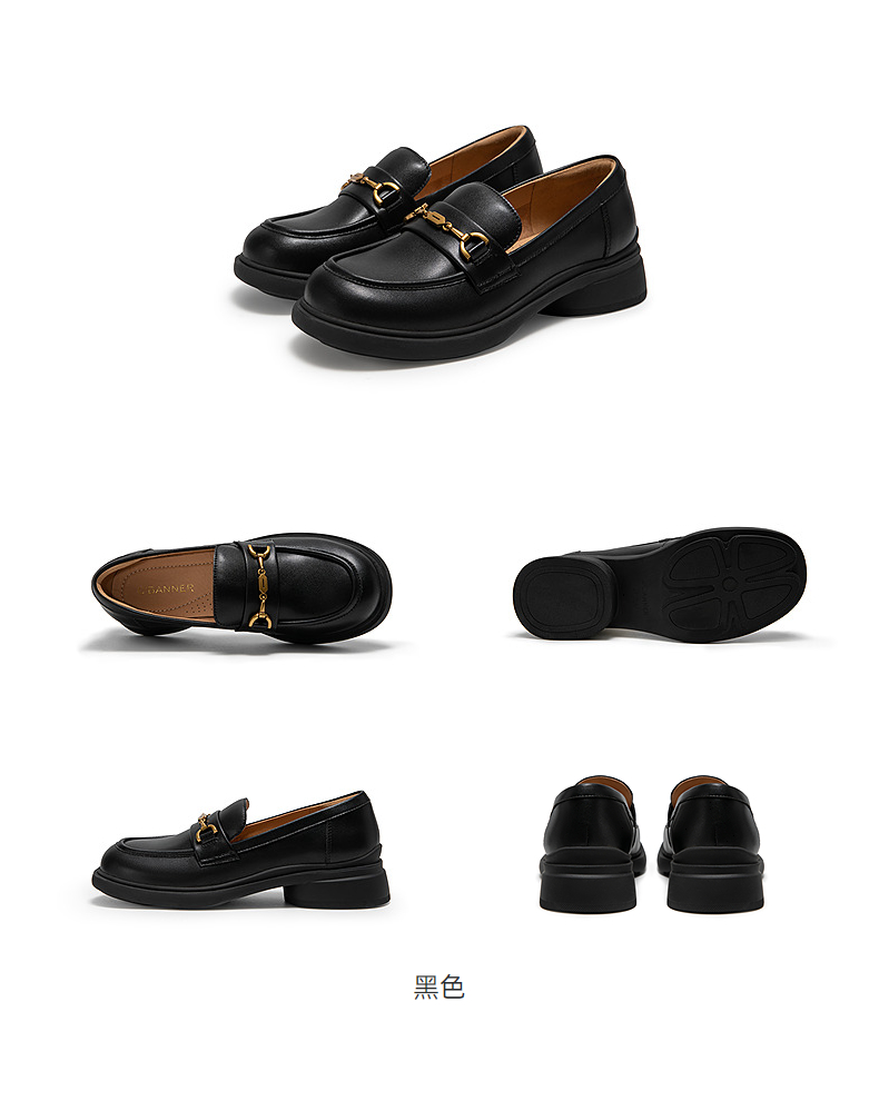 千百度经典通勤乐福鞋女款厚底黑色一脚蹬JK小皮鞋A25163720