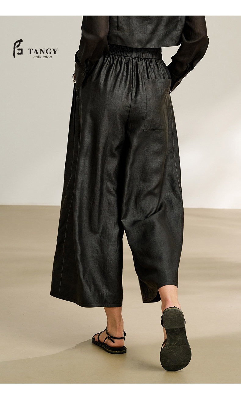 TANGY Collection/2025天意精品春季新品中国风女士莨绸阔腿长裤