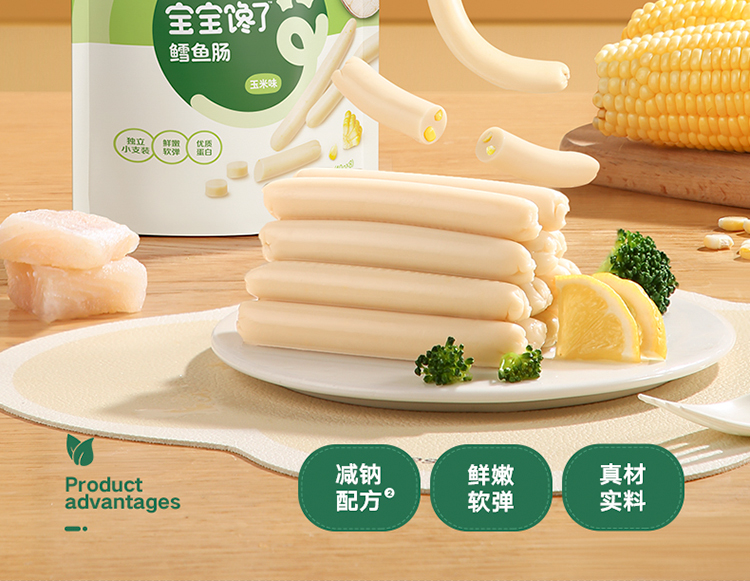 【宝宝馋了】袋装鳕鱼肠(原味/玉米味) 深海鳕鱼肉 送12月+婴幼儿食谱
