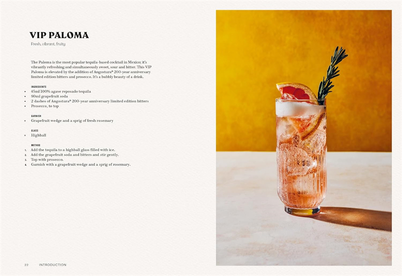 在探索这些经典饮品的同时,深入了解安哥斯特拉苦味酒的丰富历史,了解它起初是如何作为药物制作的,十九世纪的水手们是如何用苦味酒发明 Pink Gin 鸡尾酒的,以及为什么标签对于瓶子来说太大了。这本书照片精美,设计精美,包含大量永恒的食谱和对经典饮品的扭曲解读,是任何鸡尾酒爱好者的理想之选。