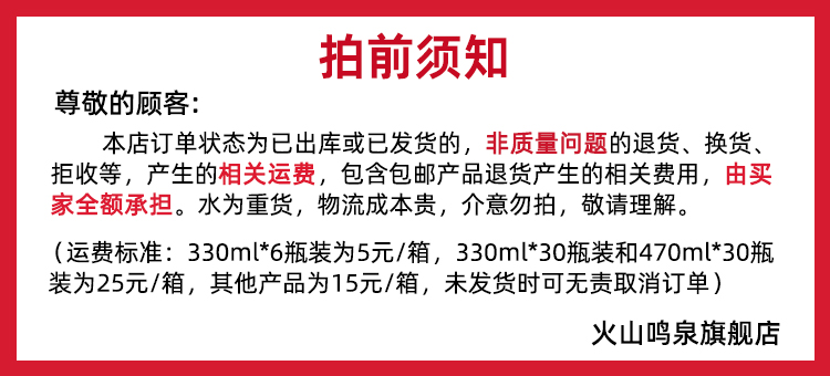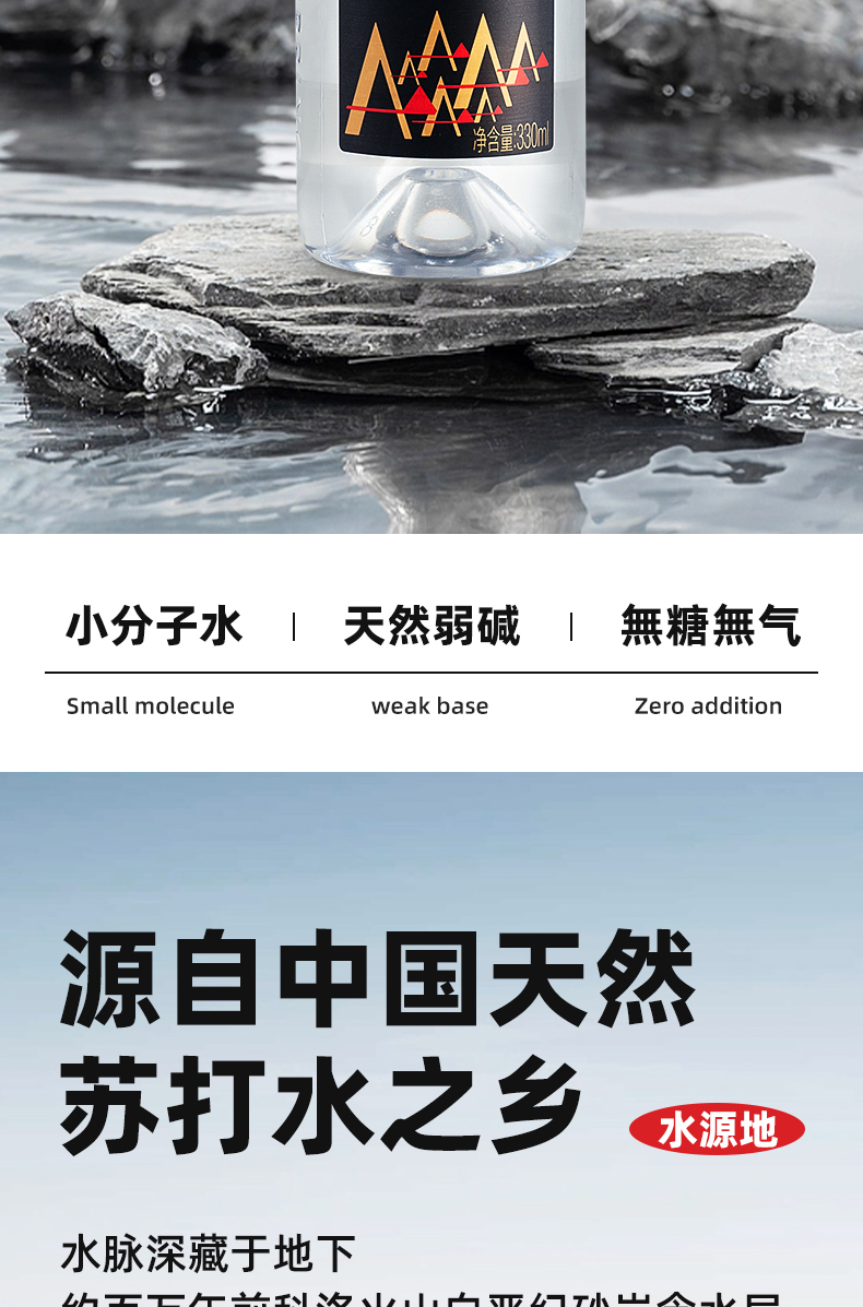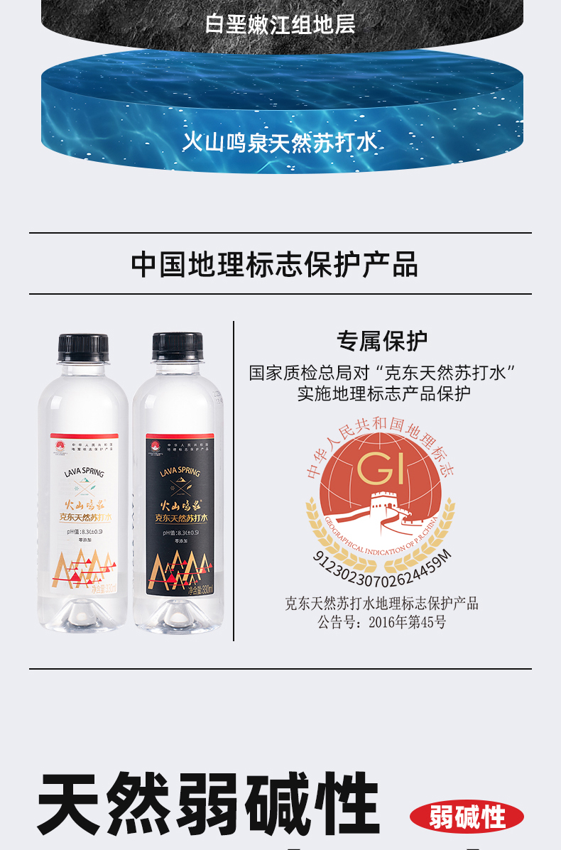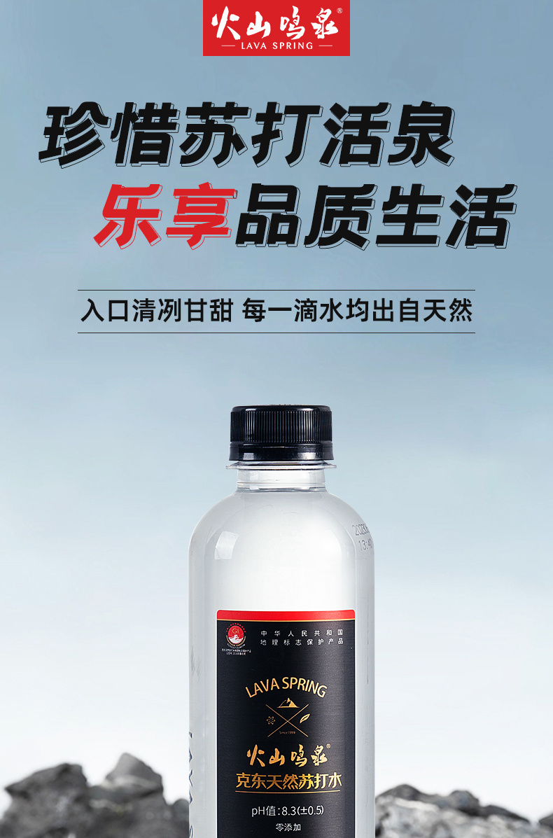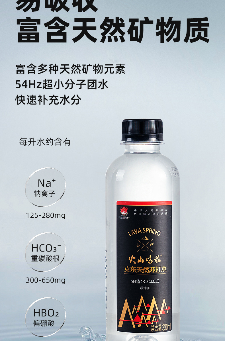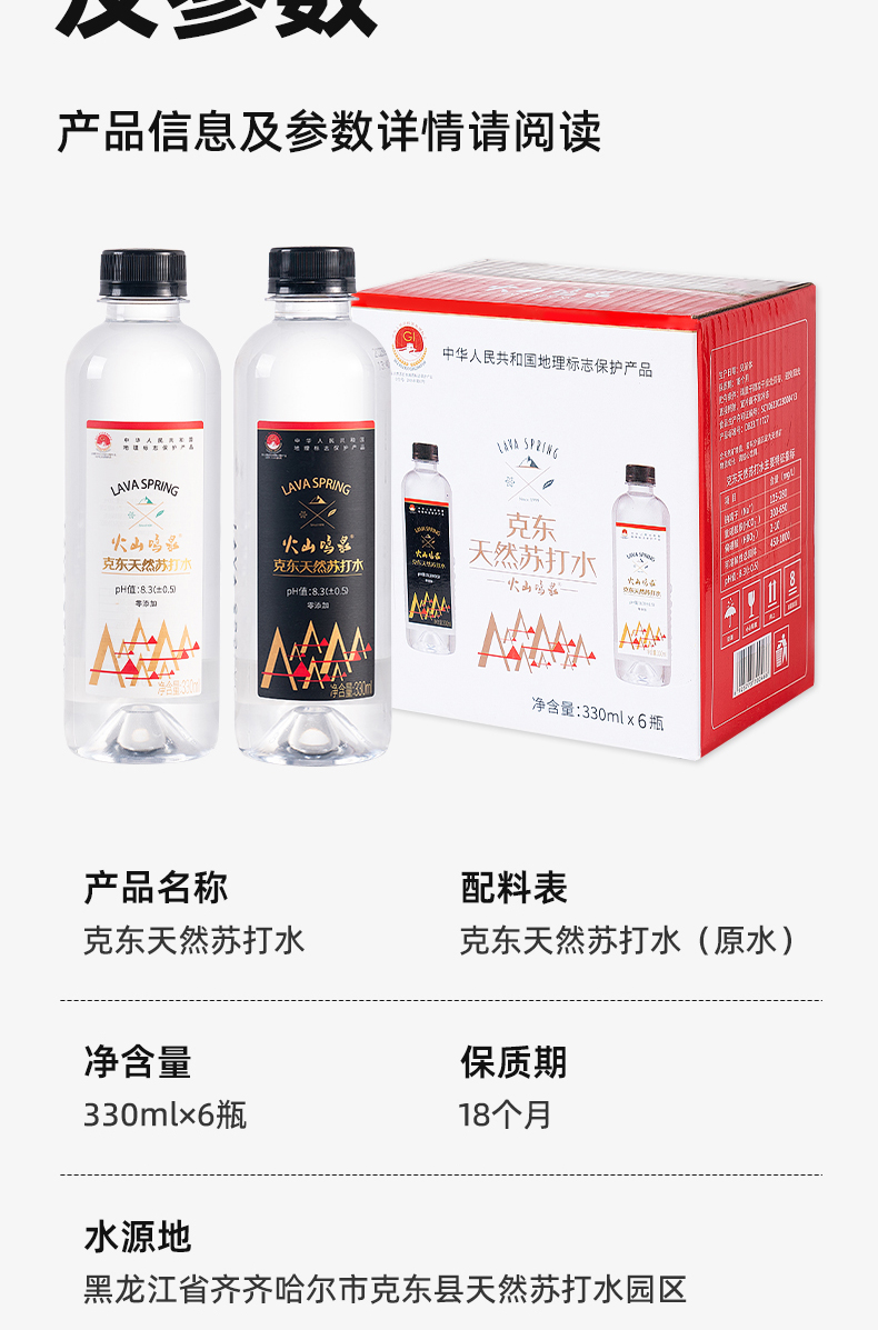 火山鸣泉克东天然苏打水330ml*6瓶/箱