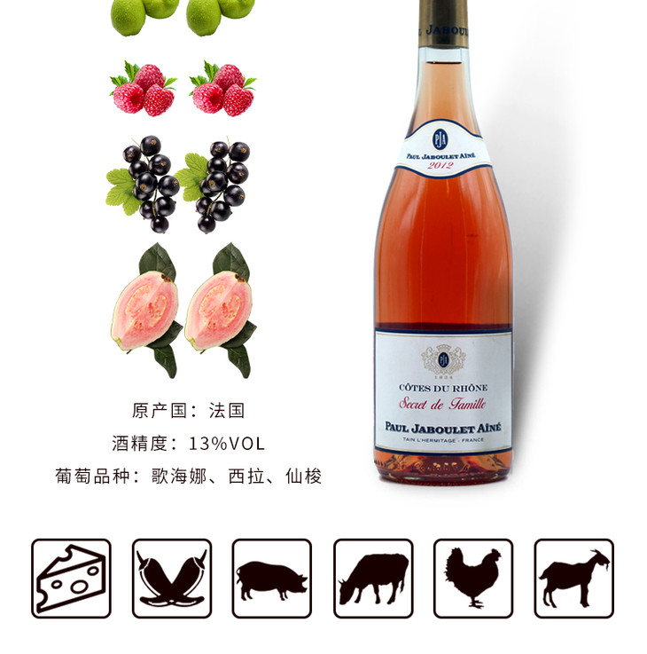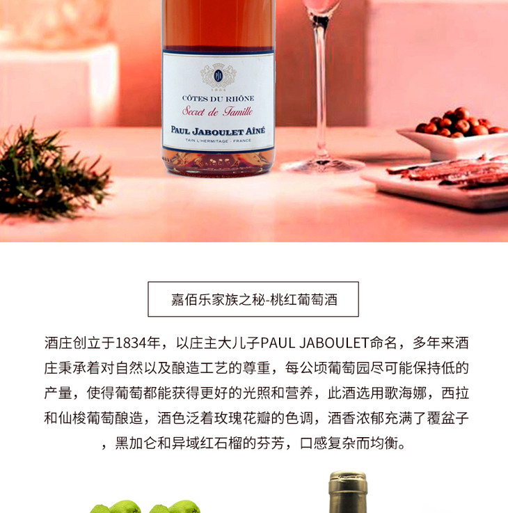 【双支特惠装】嘉佰乐家族之秘桃红葡萄酒 Paul Jaboulet Cotes du Rhone Rose 750ml*2