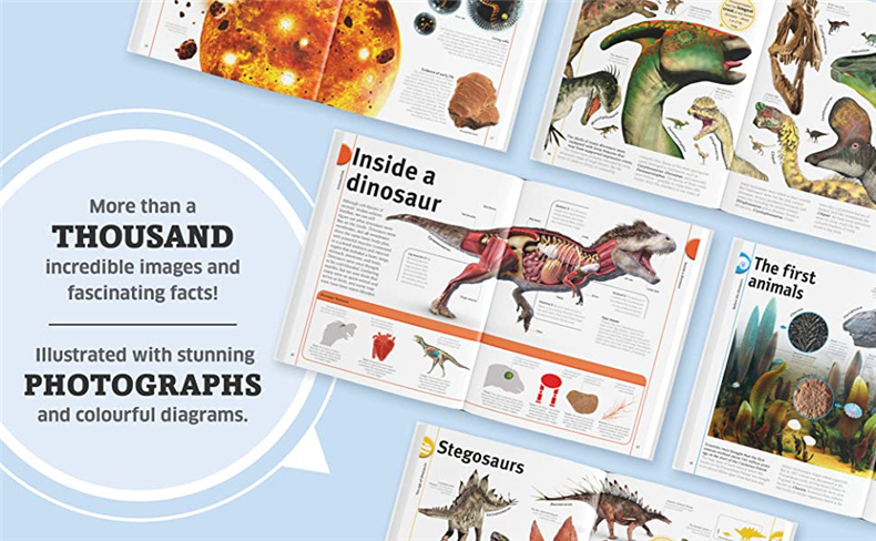 超过1000张非凡的图片和迷人的事实,9-12岁的孩子会喜欢翻阅《图片中我们的世界:恐龙》。这本书通过生动的插图和逼真的数字重建将各种形式的史前生物展现在人们面前,展示了它们可怕的牙齿、尾巴、腿和鳞片,使它们能够进食、移动和抵御捕食者。