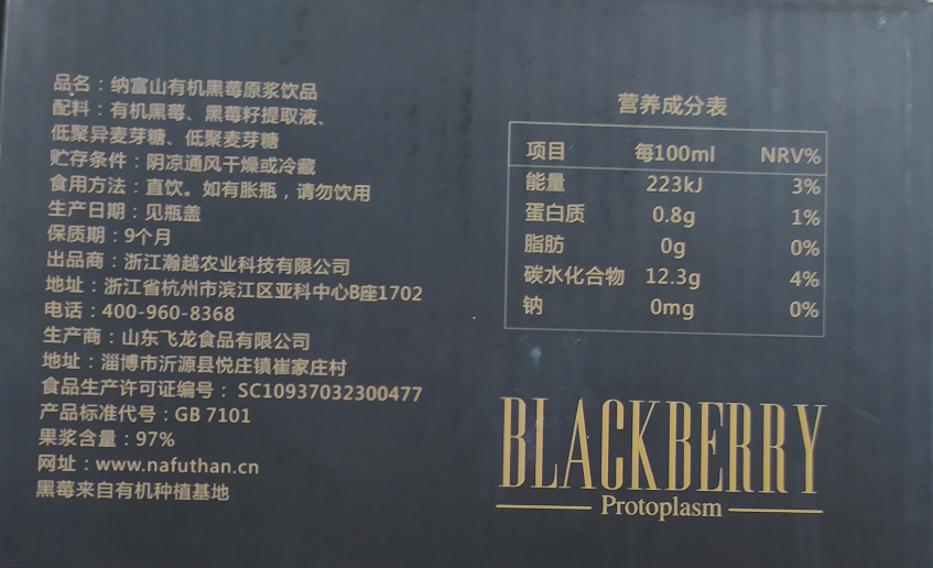 【1盒-15支】纳富山有机黑莓原浆饮品50ml【品牌直发】 黑莓汁