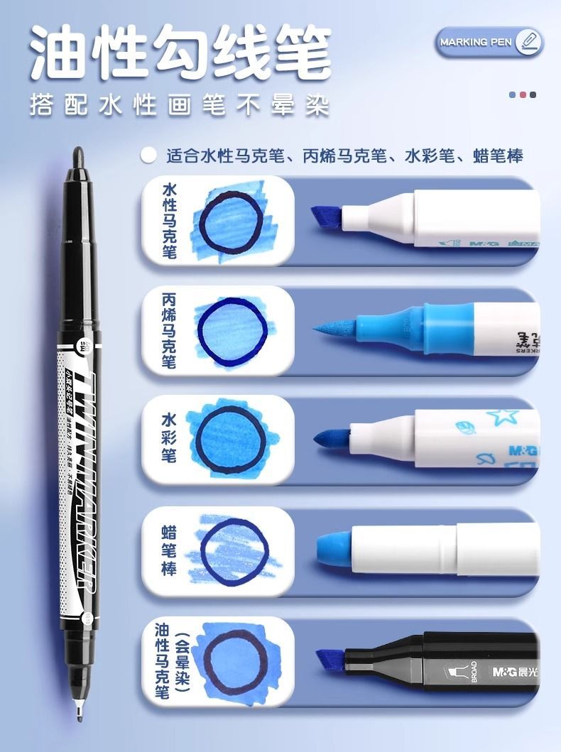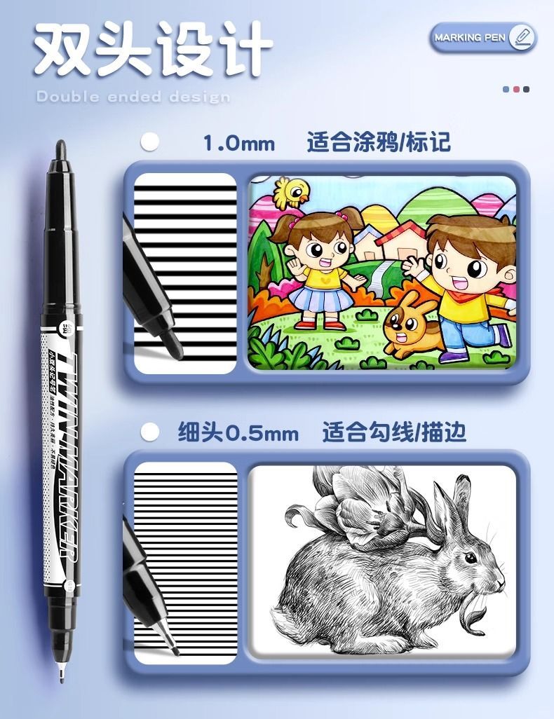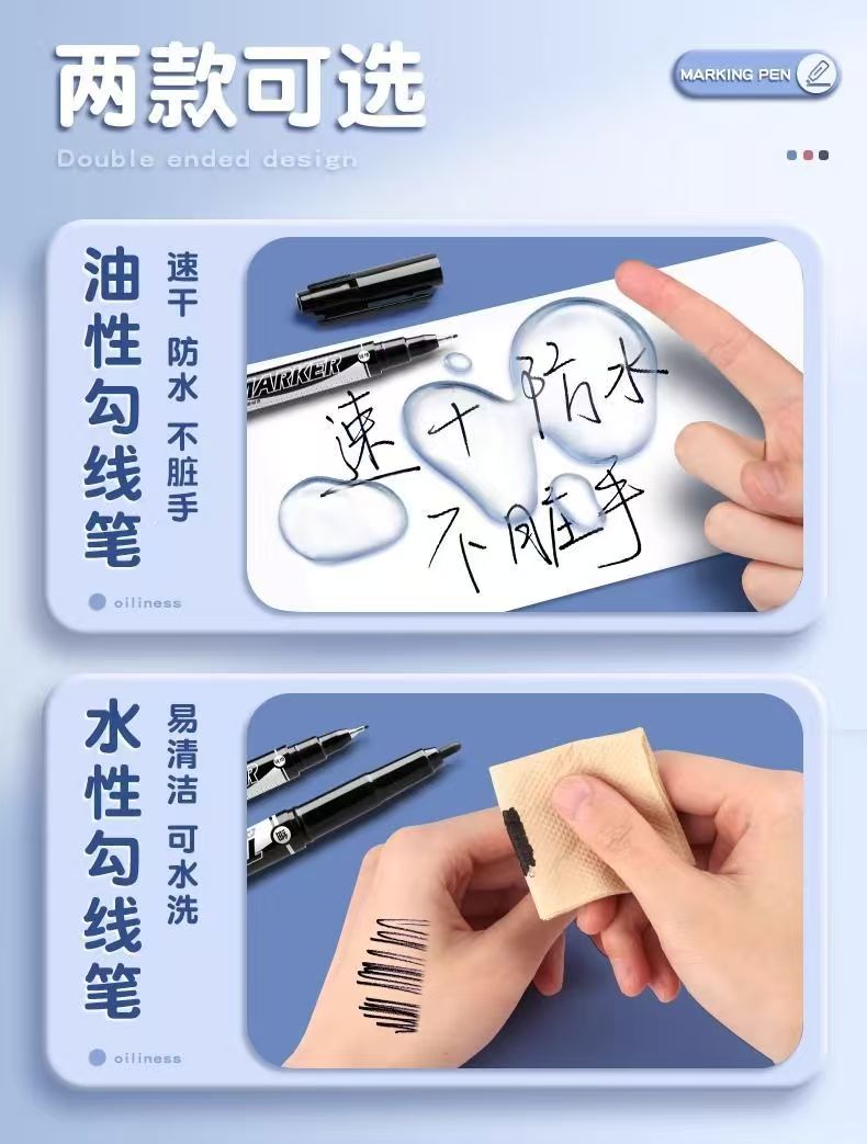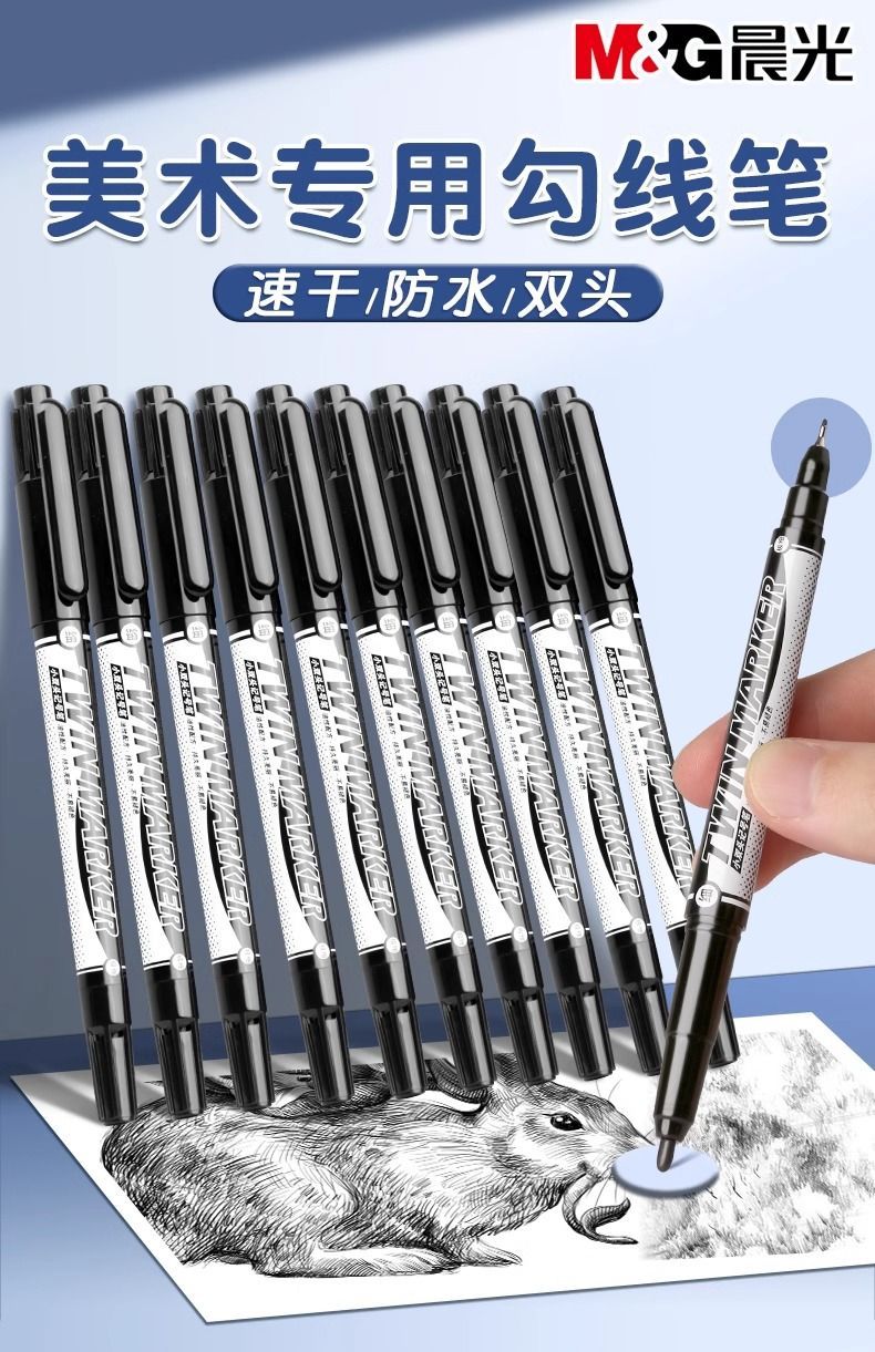 晨光双头记号笔勾线笔美术专用防水防擦油性笔划重点细头笔