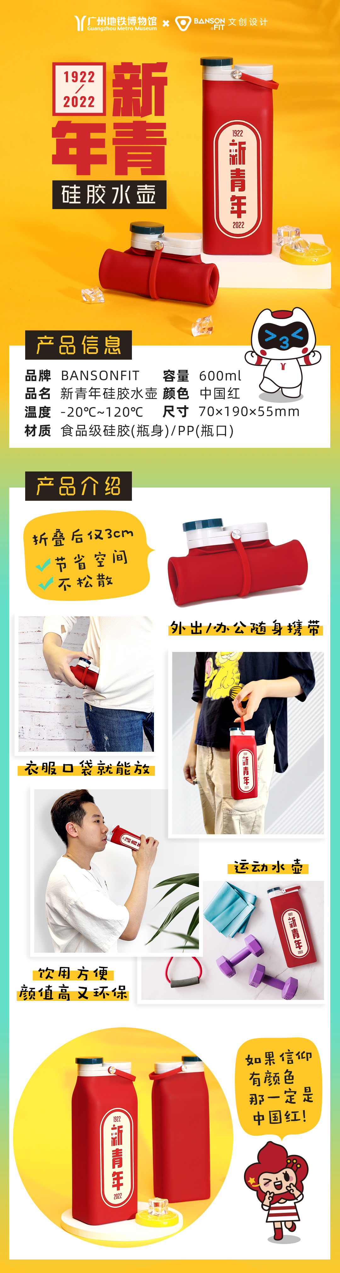新青年文创系列-新青年硅胶水壶/有为青年杜邦斜挎包(5月7日起按下单顺序发货)