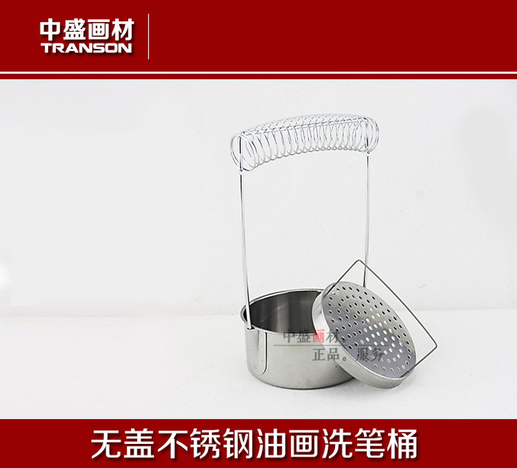 中盛画材_可拎弹簧提手金属油画洗笔桶 可夹笔直径10cm油画洗笔筒