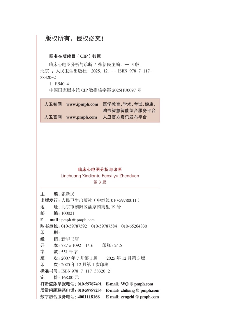 临床心电图分析与诊断 第3三版 张新民 书中配以大量高质量的心电图 全书配以大量音频供读者学习使用9787117383202人民卫生出版社